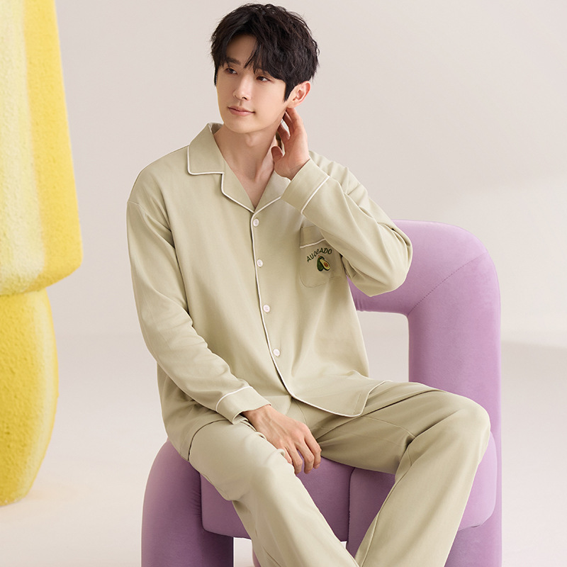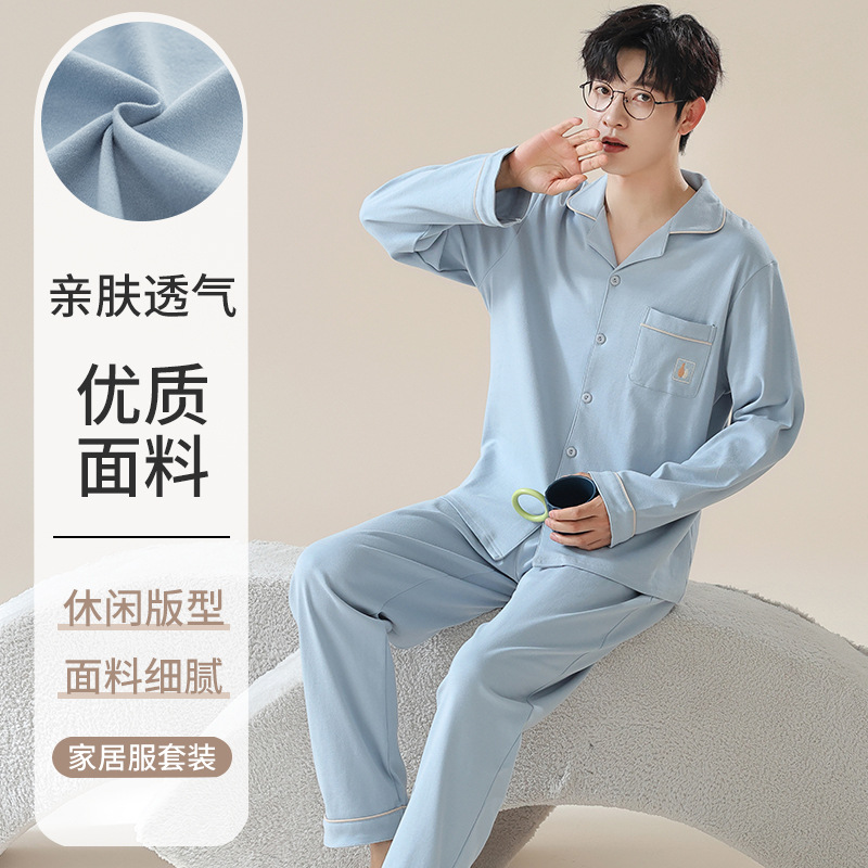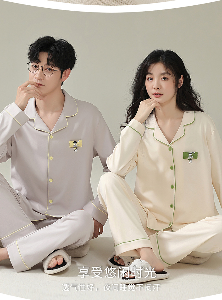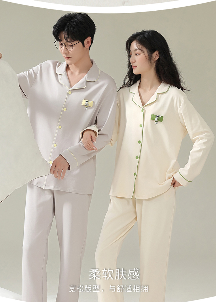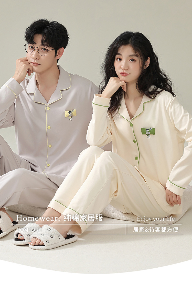 여성용 Yuhuoshu 같은 스타일 잠옷, 봄, 가을 긴팔 가디건, 모조 면, 새로운 캐주얼 대형 남성 홈웨어 여름스토어 가기