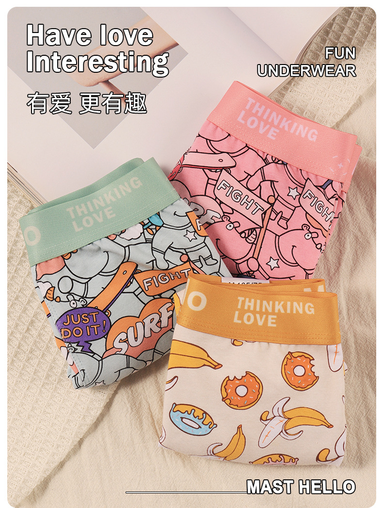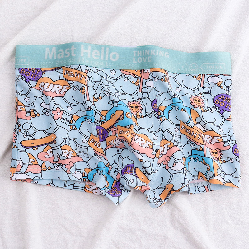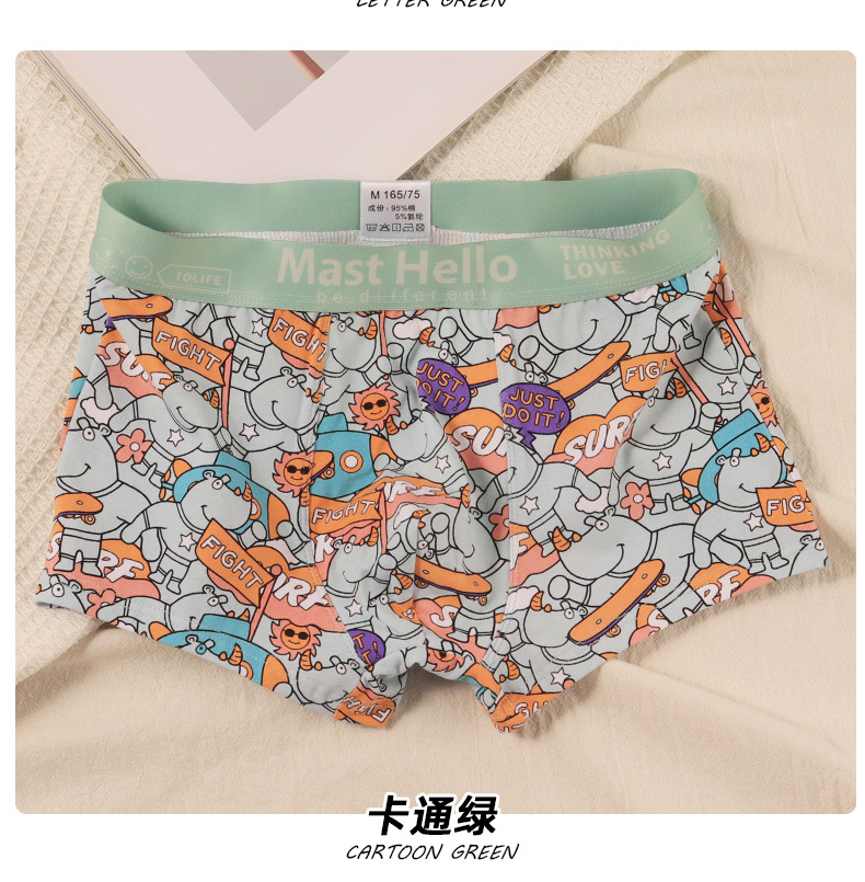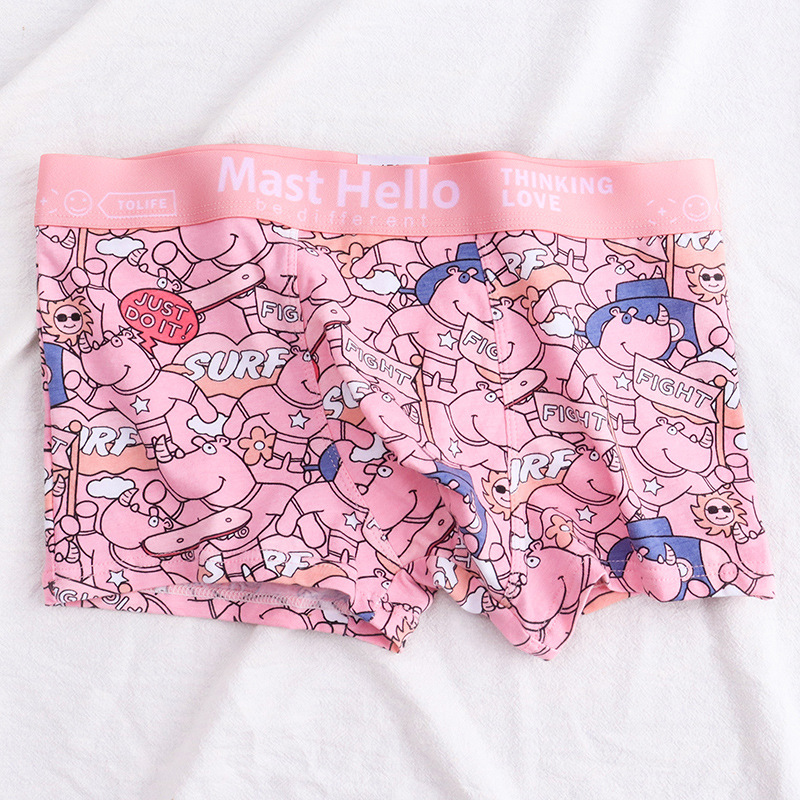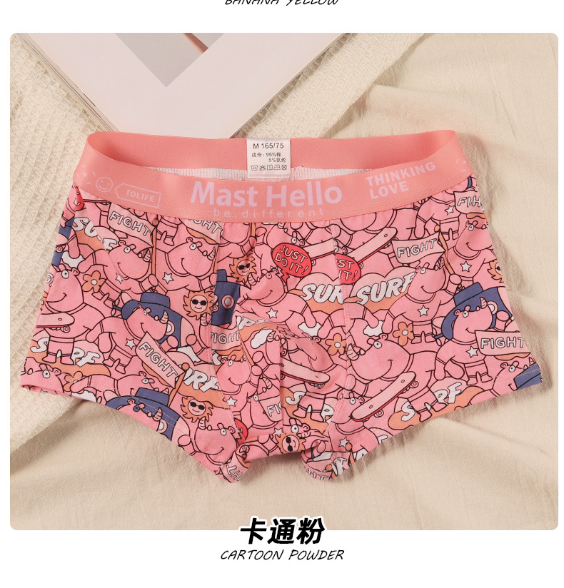 트렌디 브랜드 남자의 속옷 소년 순면 복서 사계절 남자의 핑크 귀여운 유행 만화 복서 반바지스토어 가기