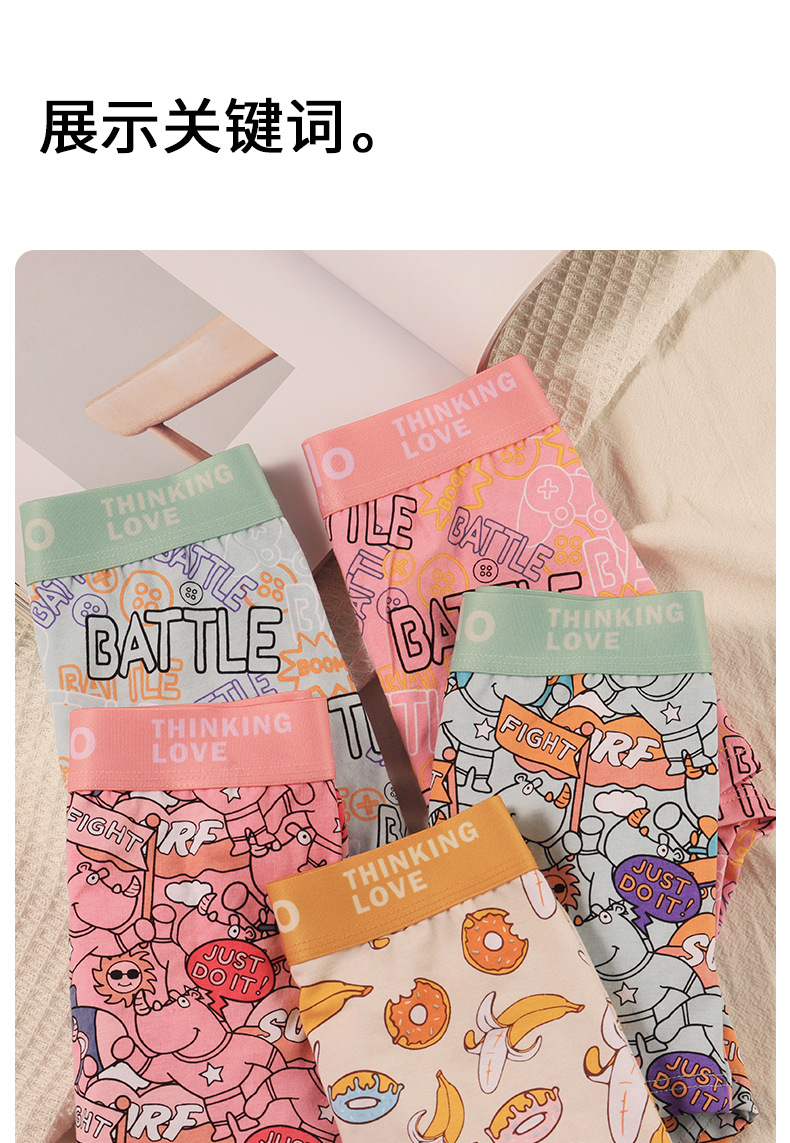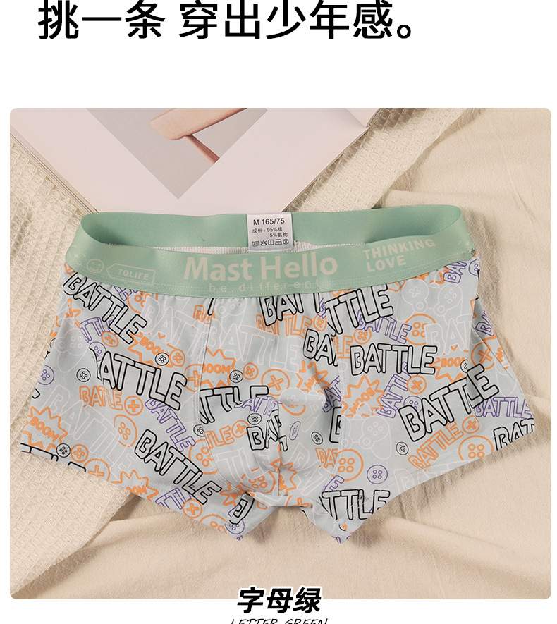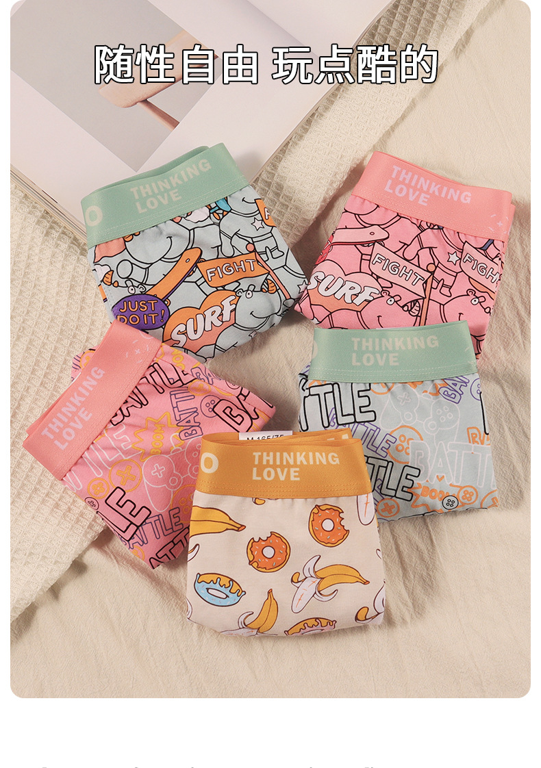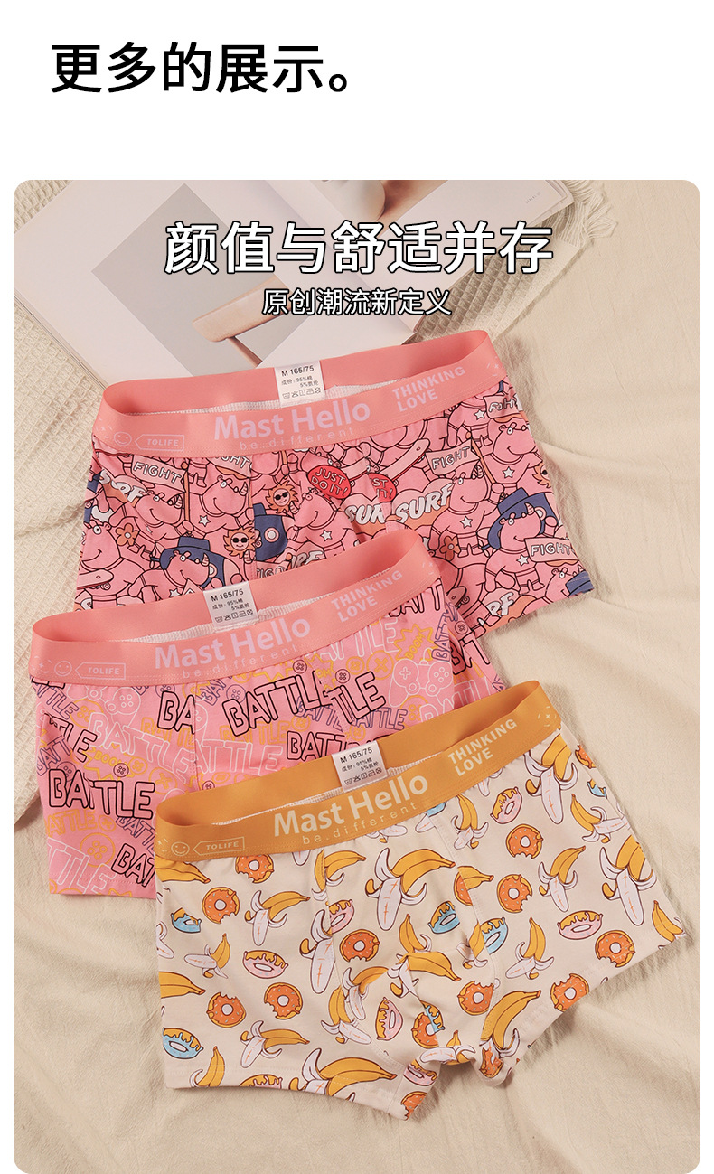 트렌디 브랜드 남자의 속옷 소년 순면 복서 사계절 남자의 핑크 귀여운 유행 만화 복서 반바지스토어 가기