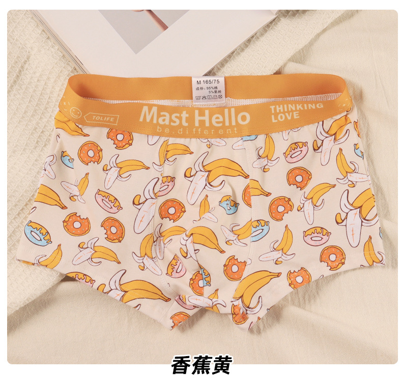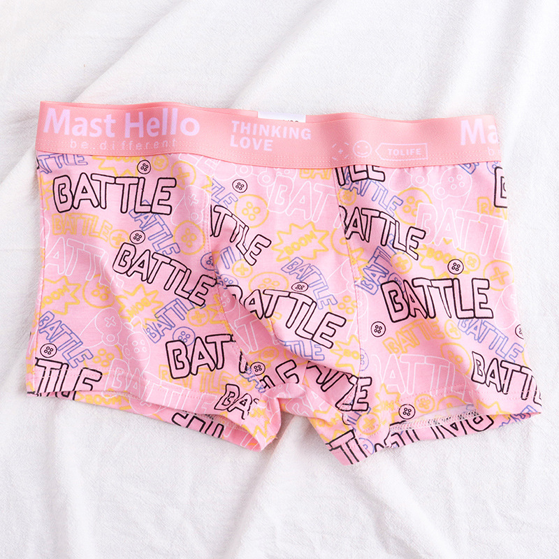 트렌디 브랜드 남자의 속옷 소년 순면 복서 사계절 남자의 핑크 귀여운 유행 만화 복서 반바지