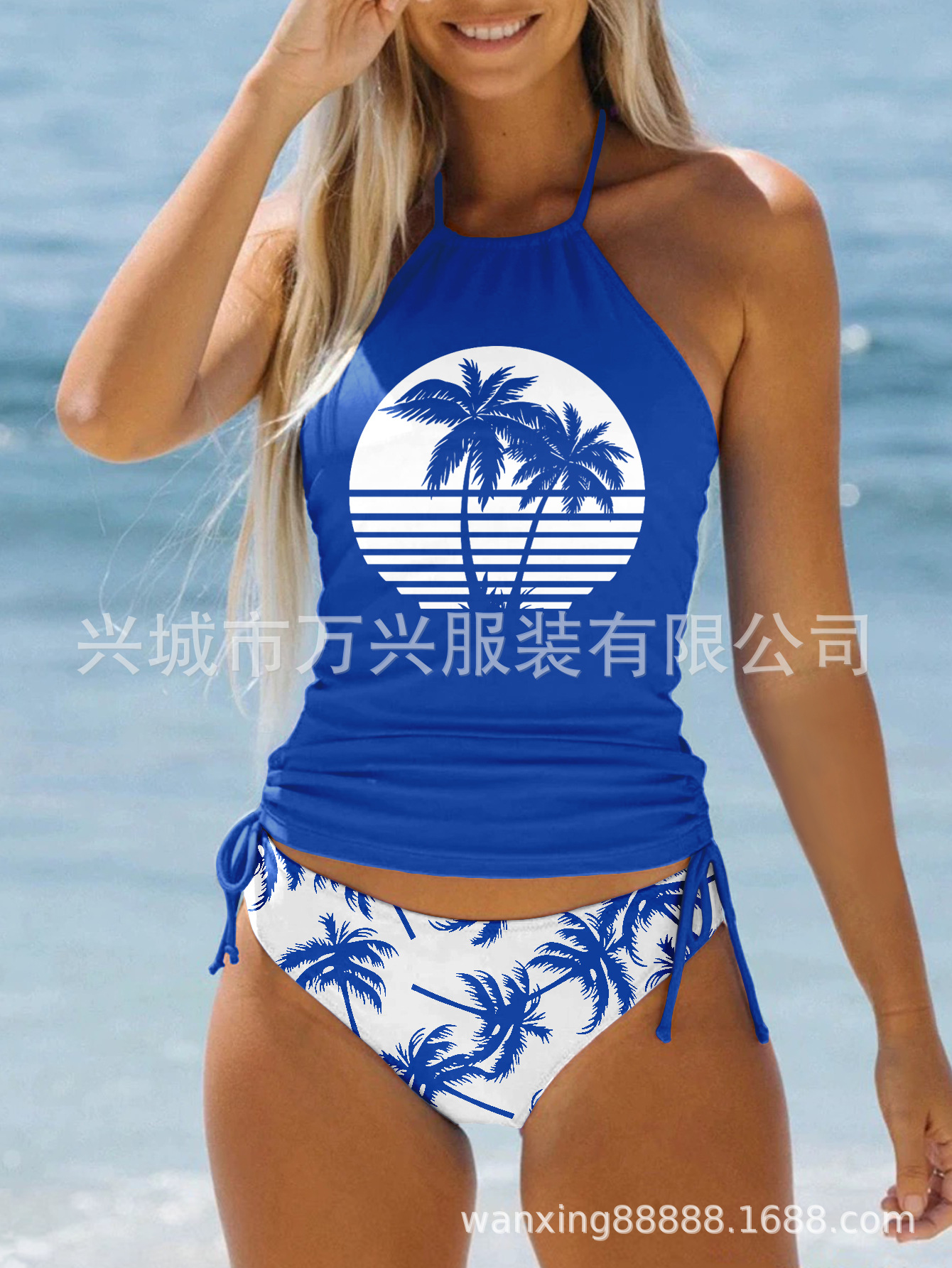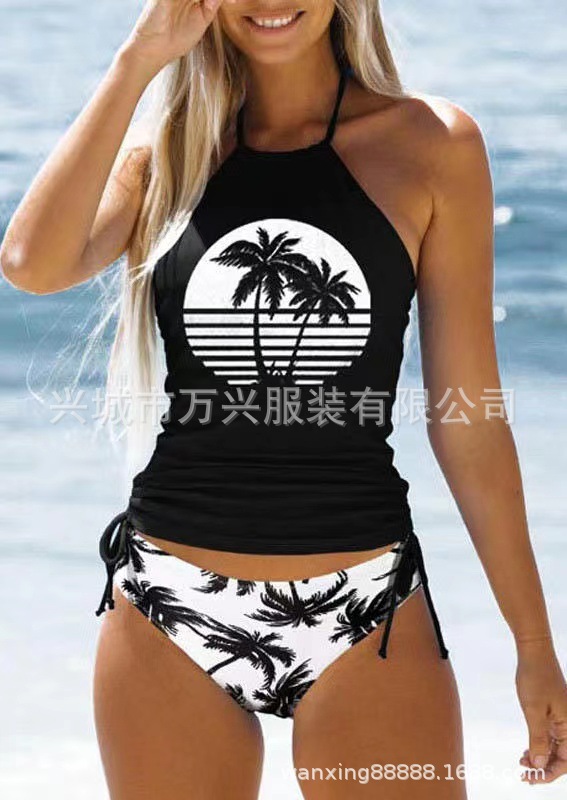 아마존 AliExpress 유럽과 미국의 인기 코코넛 나무 분할 수영복 여성 해변 섹시한 보수적 배꼽 커버 특별 가격 수영복스토어 가기