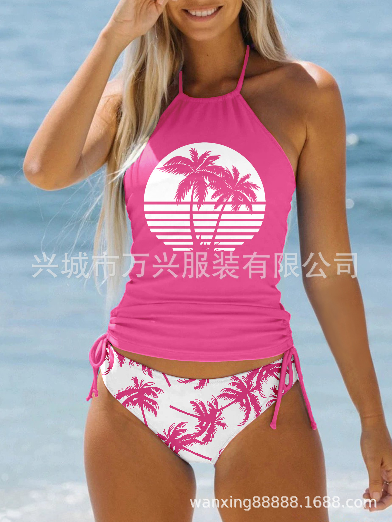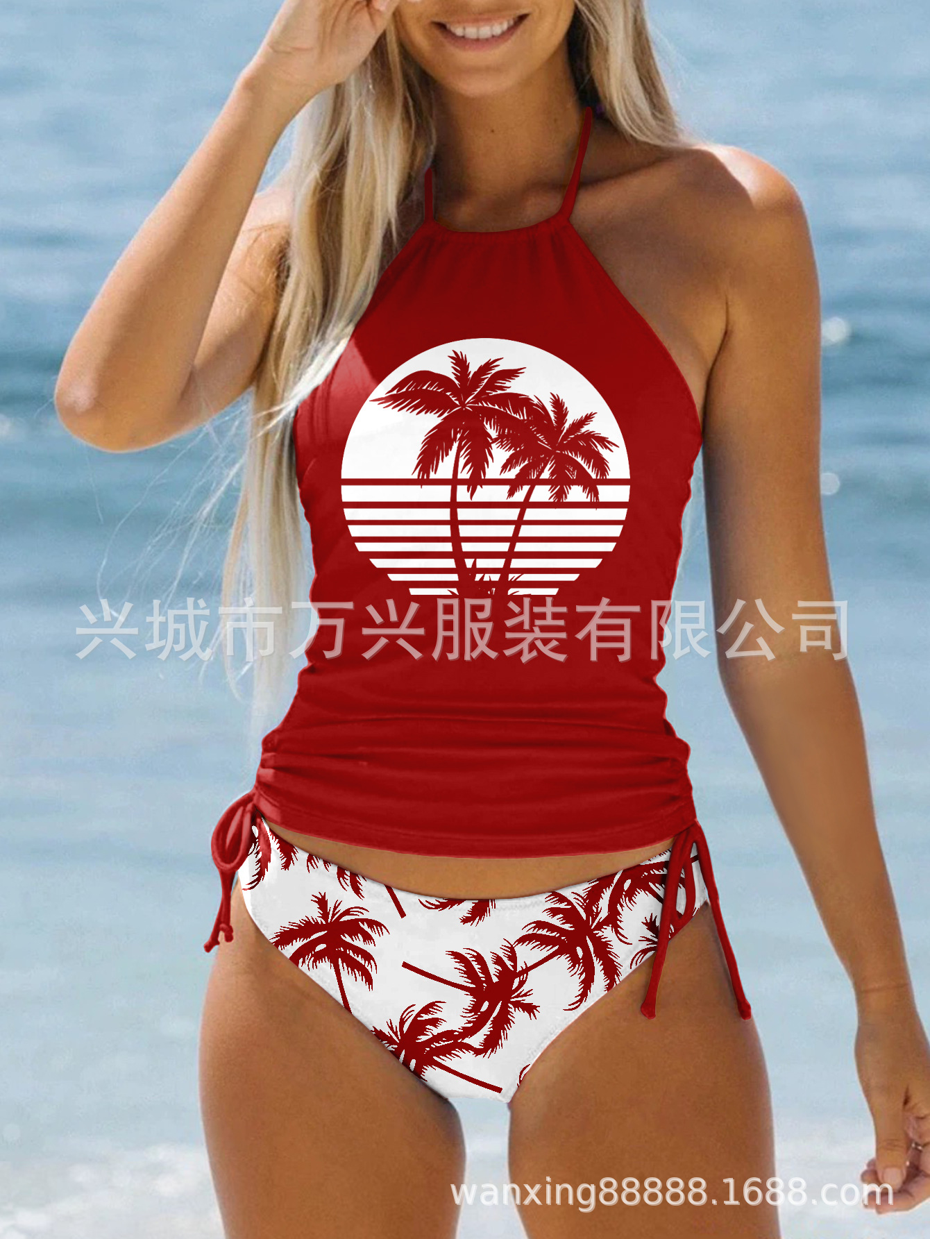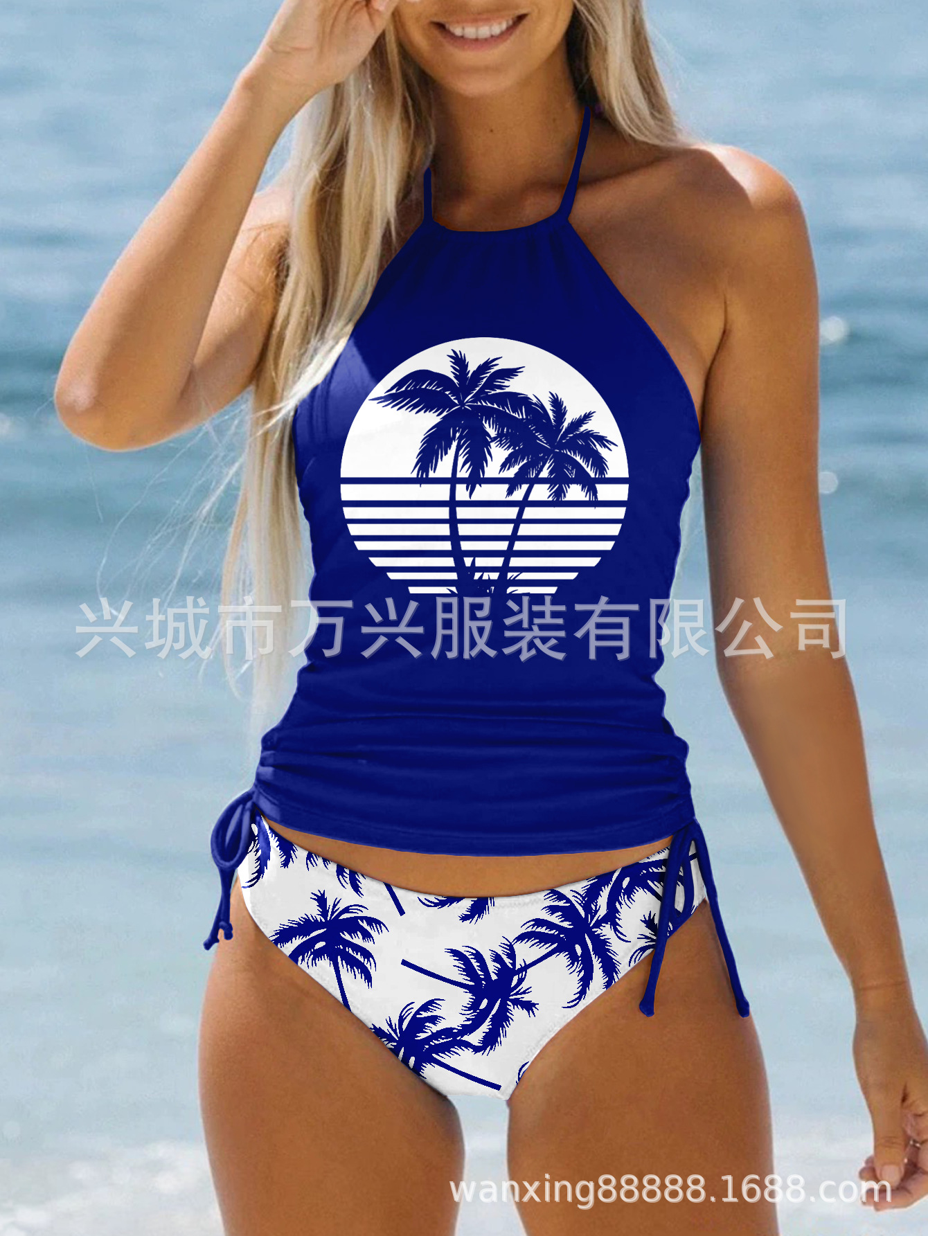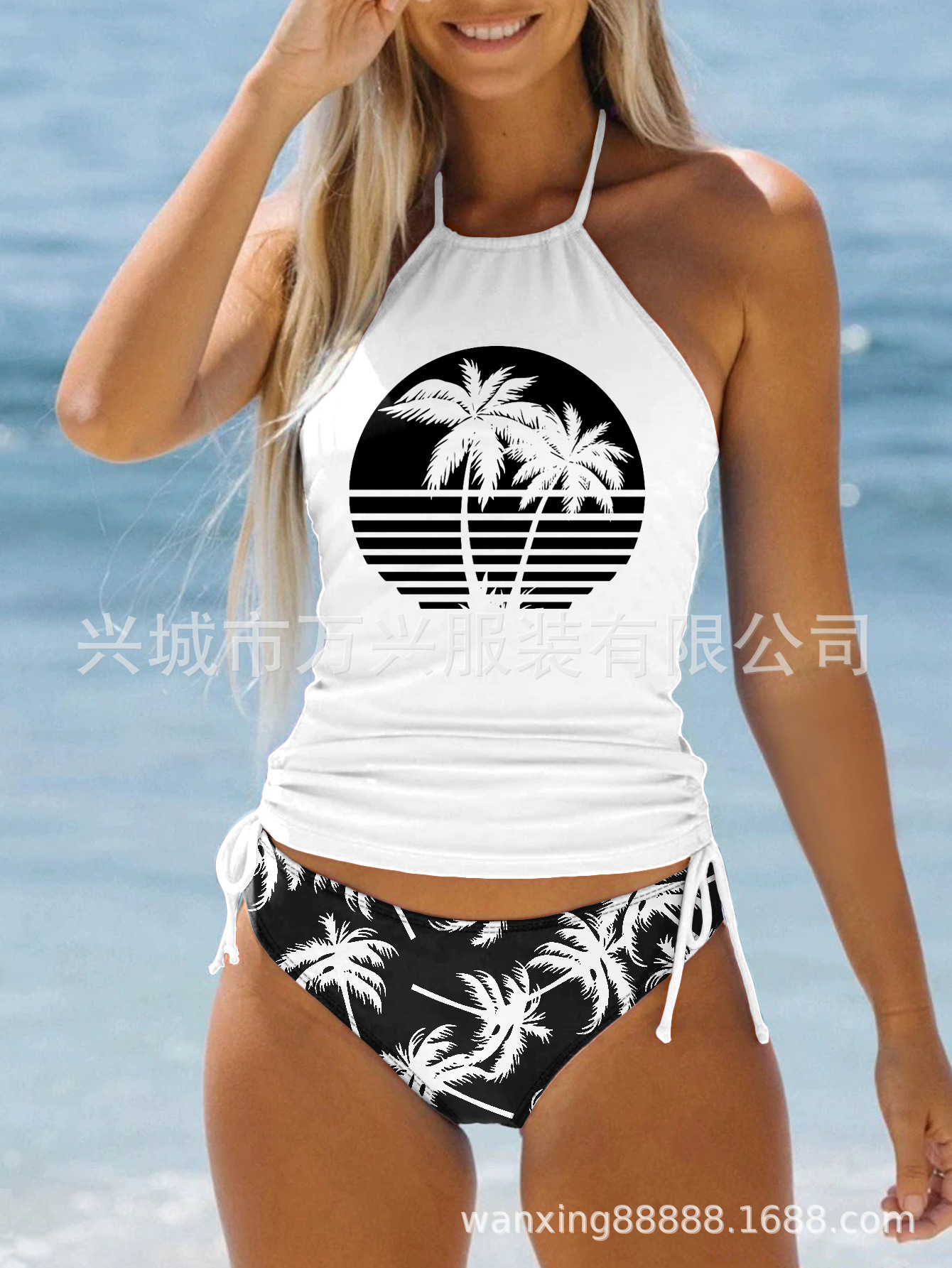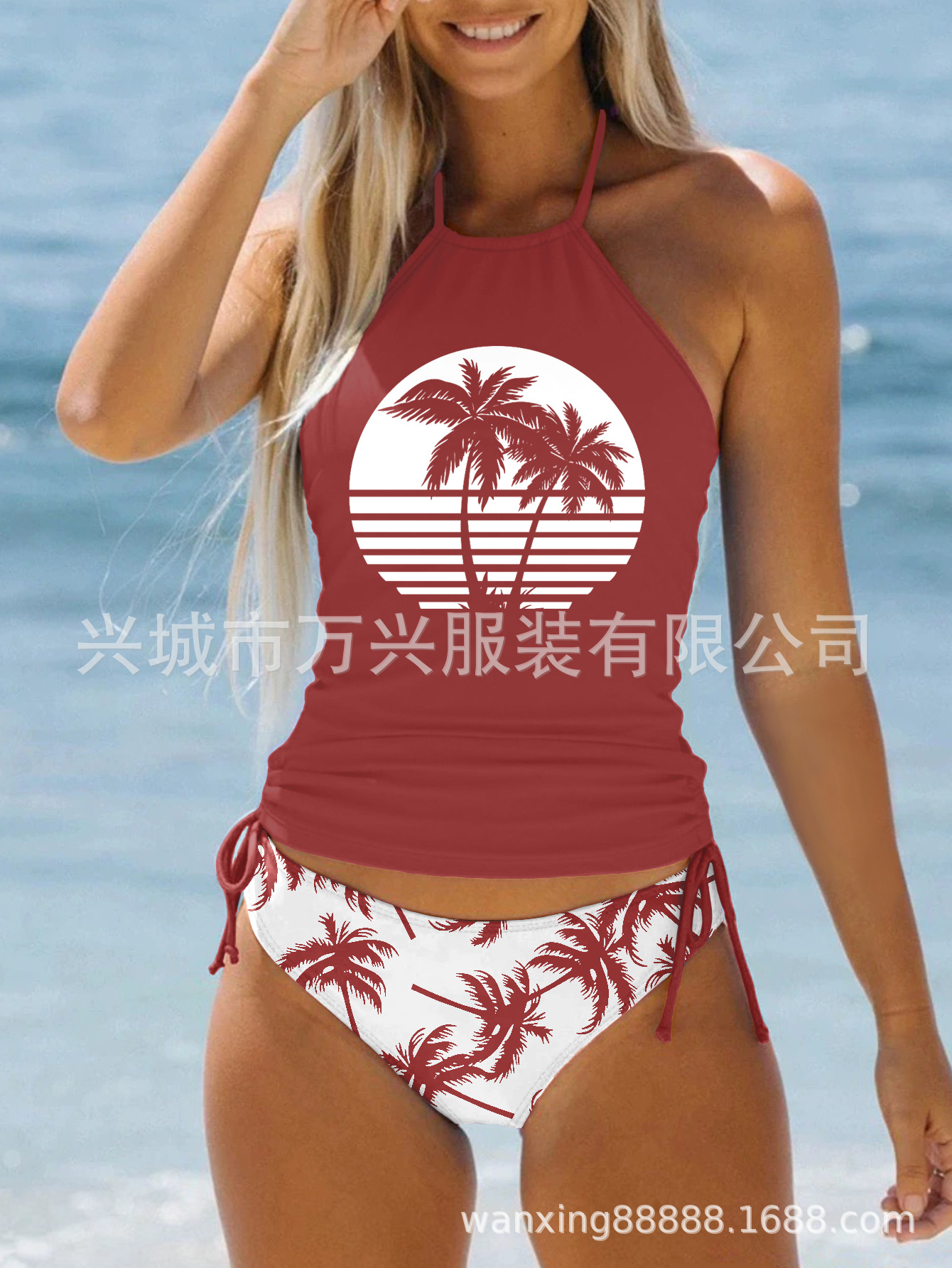 아마존 AliExpress 유럽과 미국의 인기 코코넛 나무 분할 수영복 여성 해변 섹시한 보수적 배꼽 커버 특별 가격 수영복