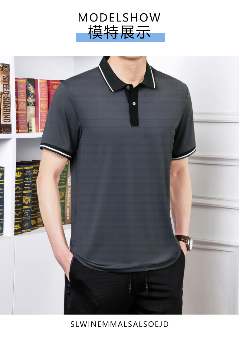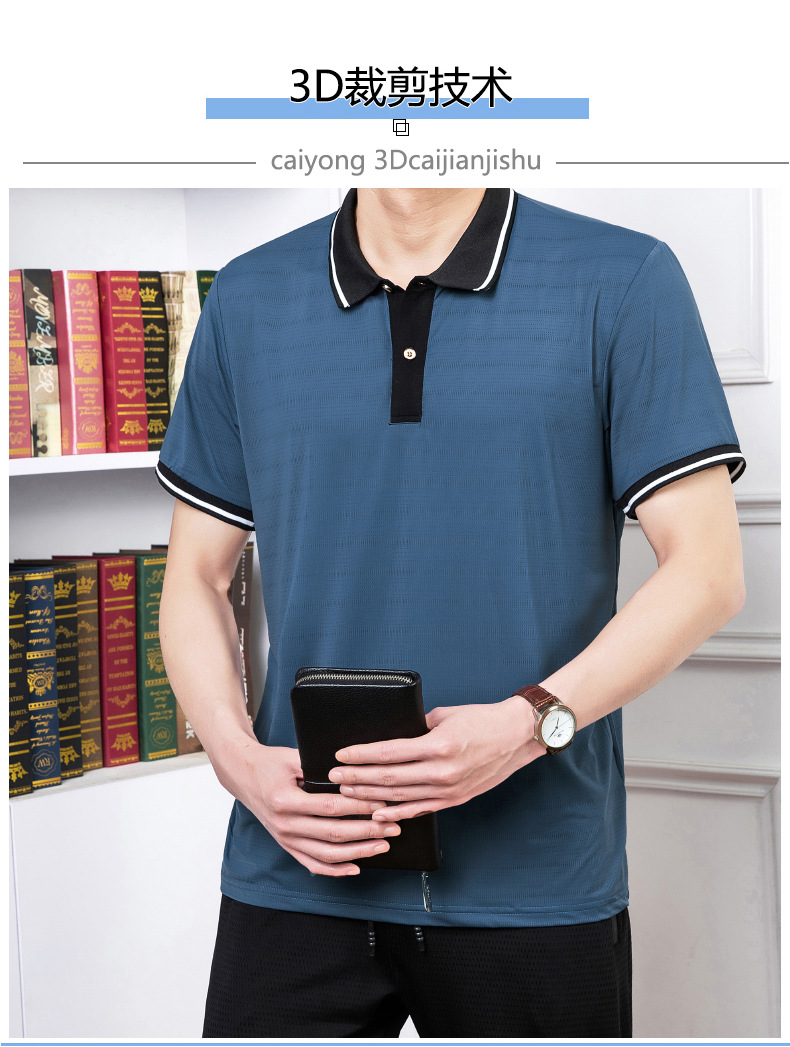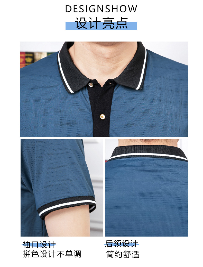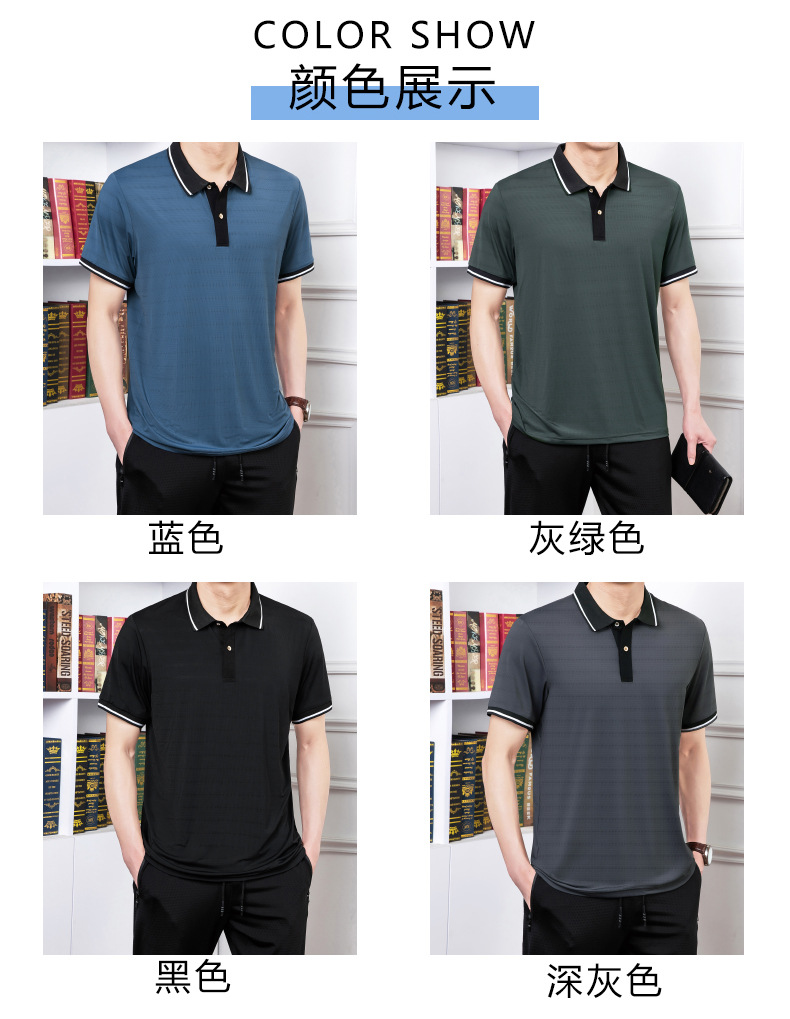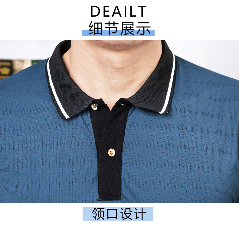 2023 여름 속건 옷깃 메쉬 아이스 실크 에어컨 반팔 폴로 셔츠 남성용 티셔츠 얇은 통기성 캐주얼스토어 가기