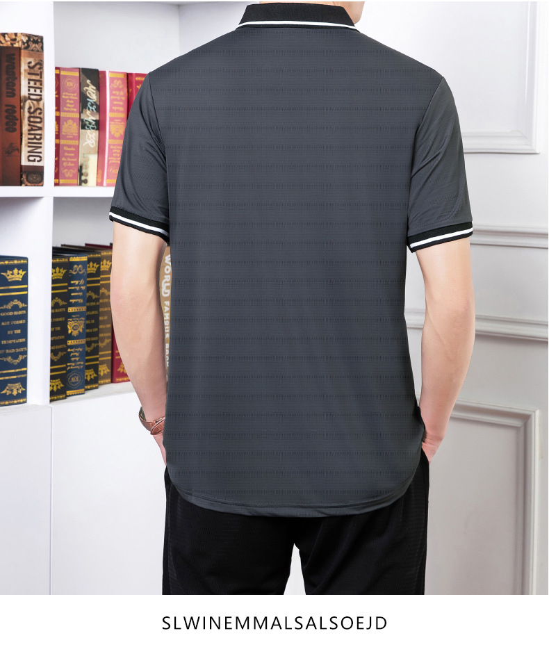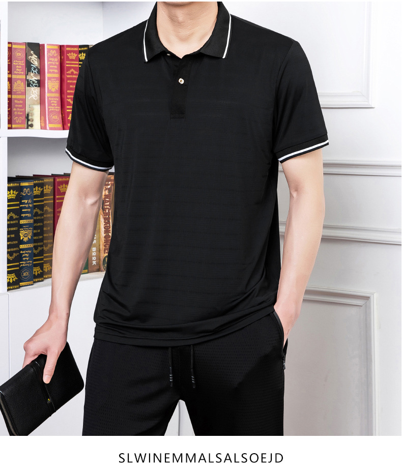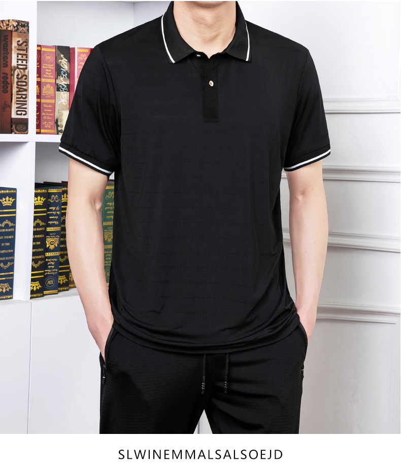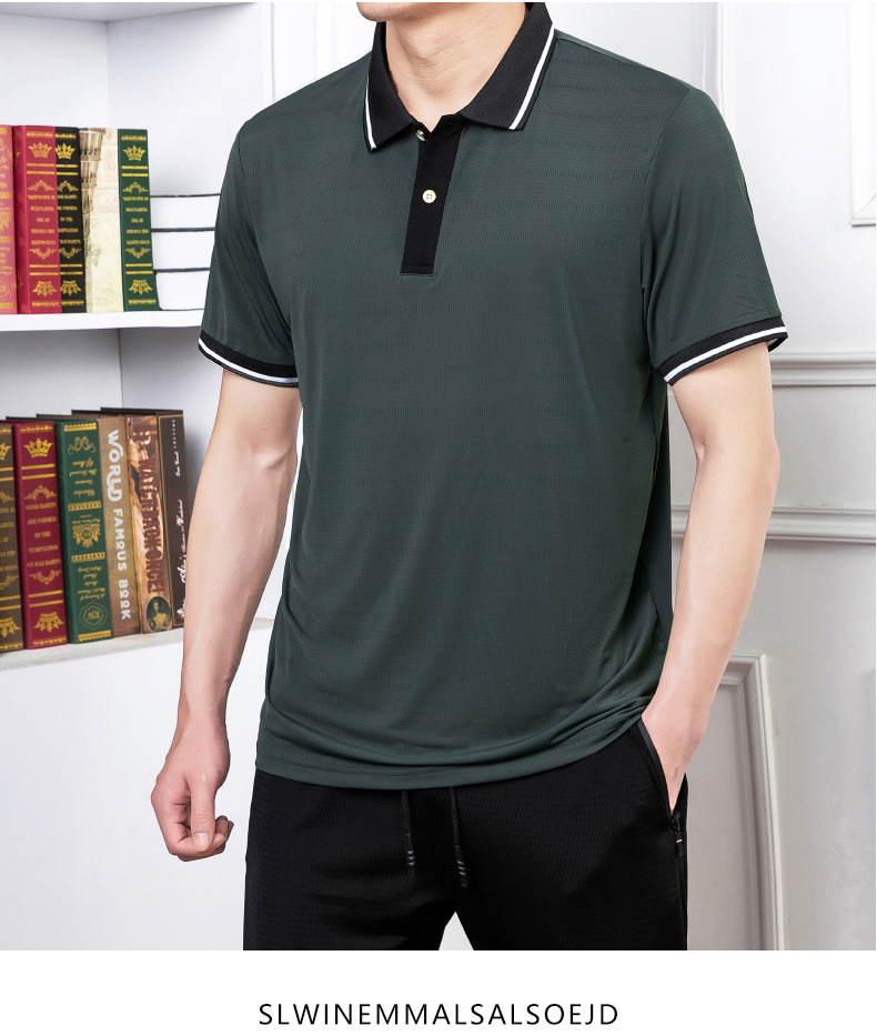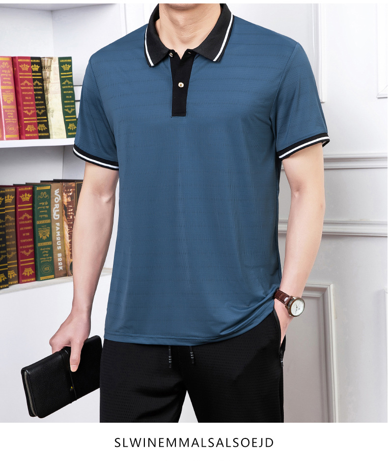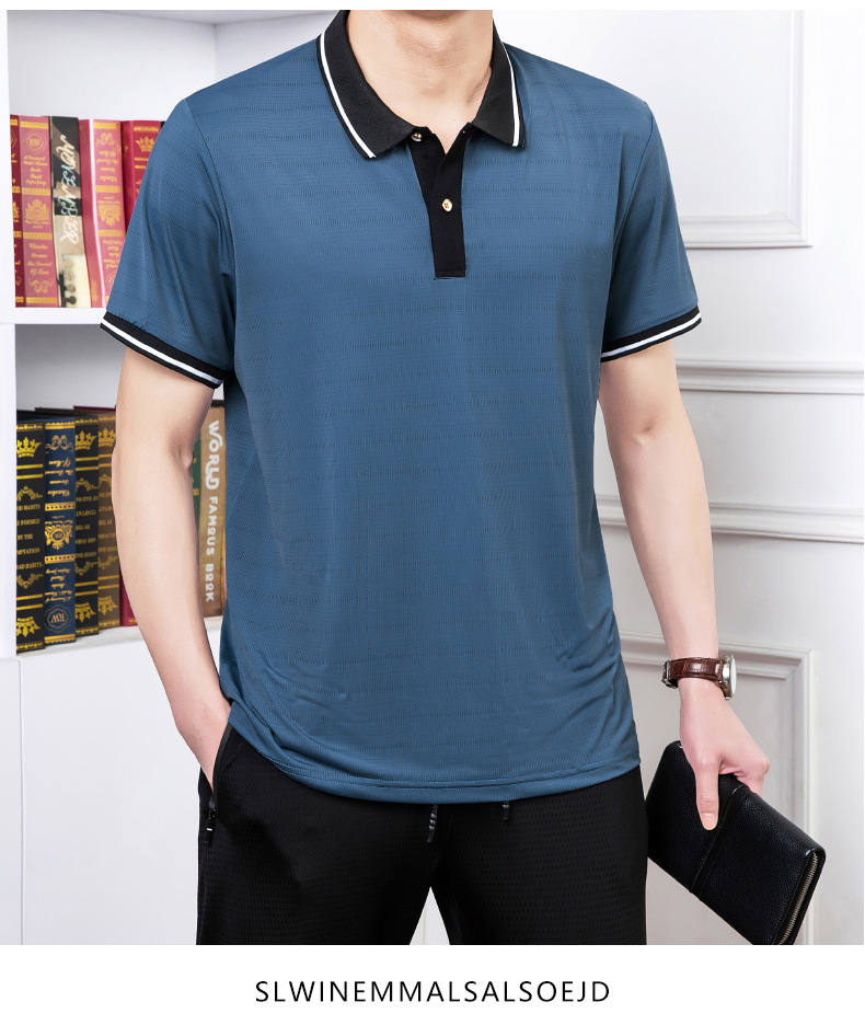 2023 여름 속건 옷깃 메쉬 아이스 실크 에어컨 반팔 폴로 셔츠 남성용 티셔츠 얇은 통기성 캐주얼스토어 가기