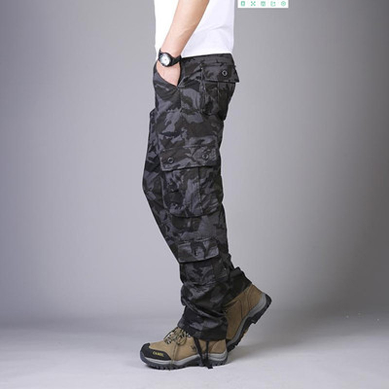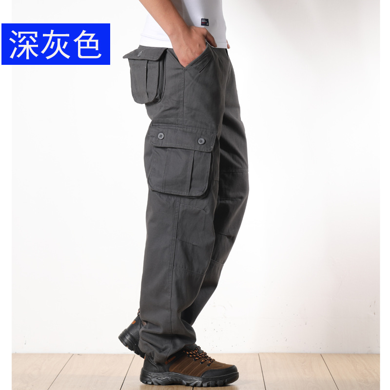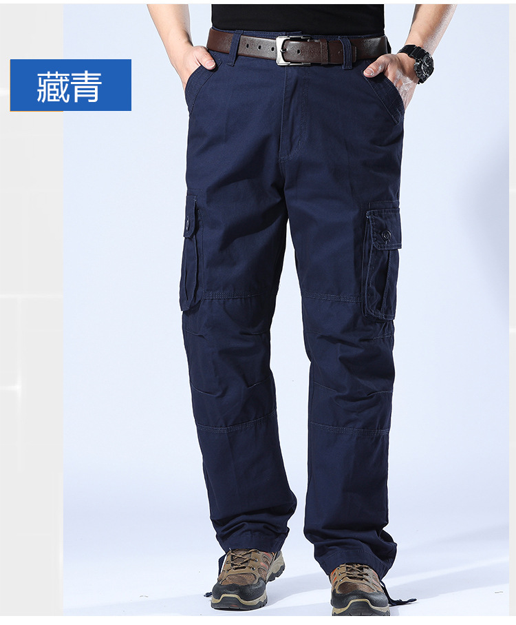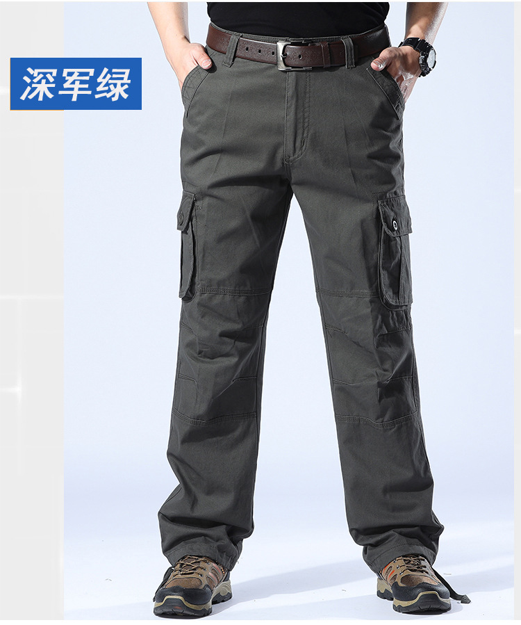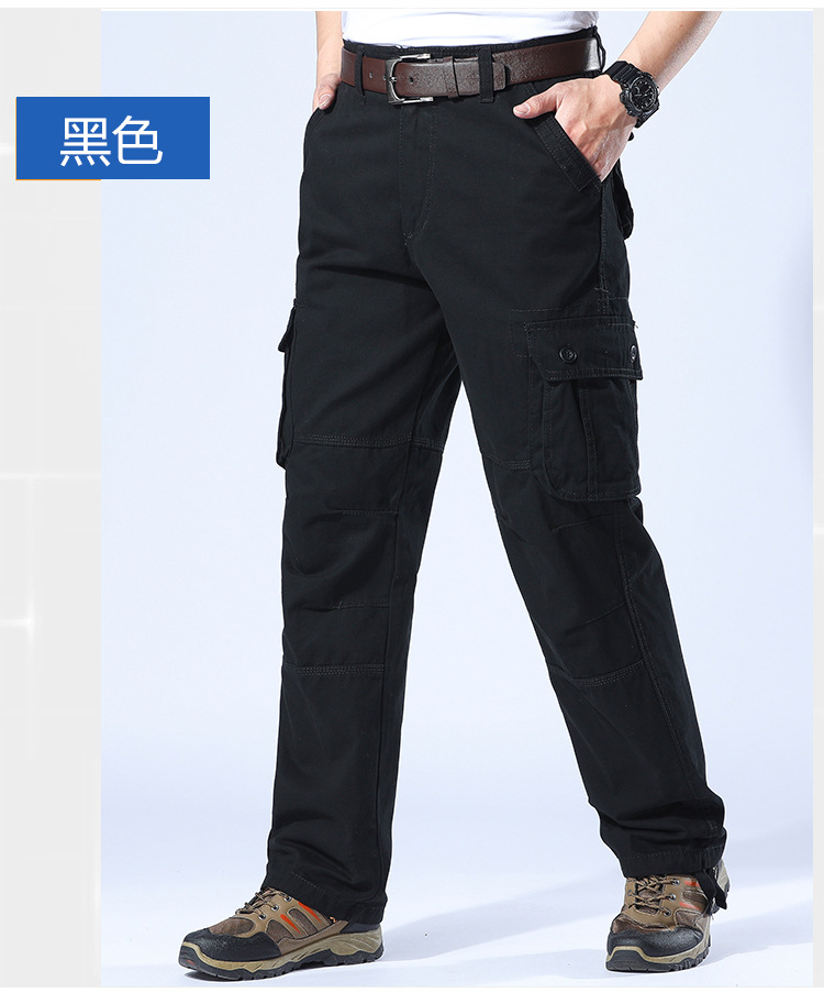봄과 가을 두꺼운 야외 캐주얼 바위 바지 남자의 등산 멀티 포켓 플러스 사이즈 스트레이트 느슨한 전술 면 바지스토어 가기