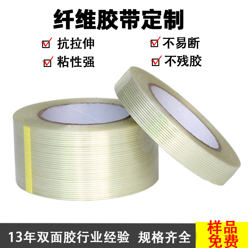 투명 섬유 테이프 스트라이프 그리드 단면 기판 고점도 인장 고정 유리 섬유 방폭 테이프 제조업체