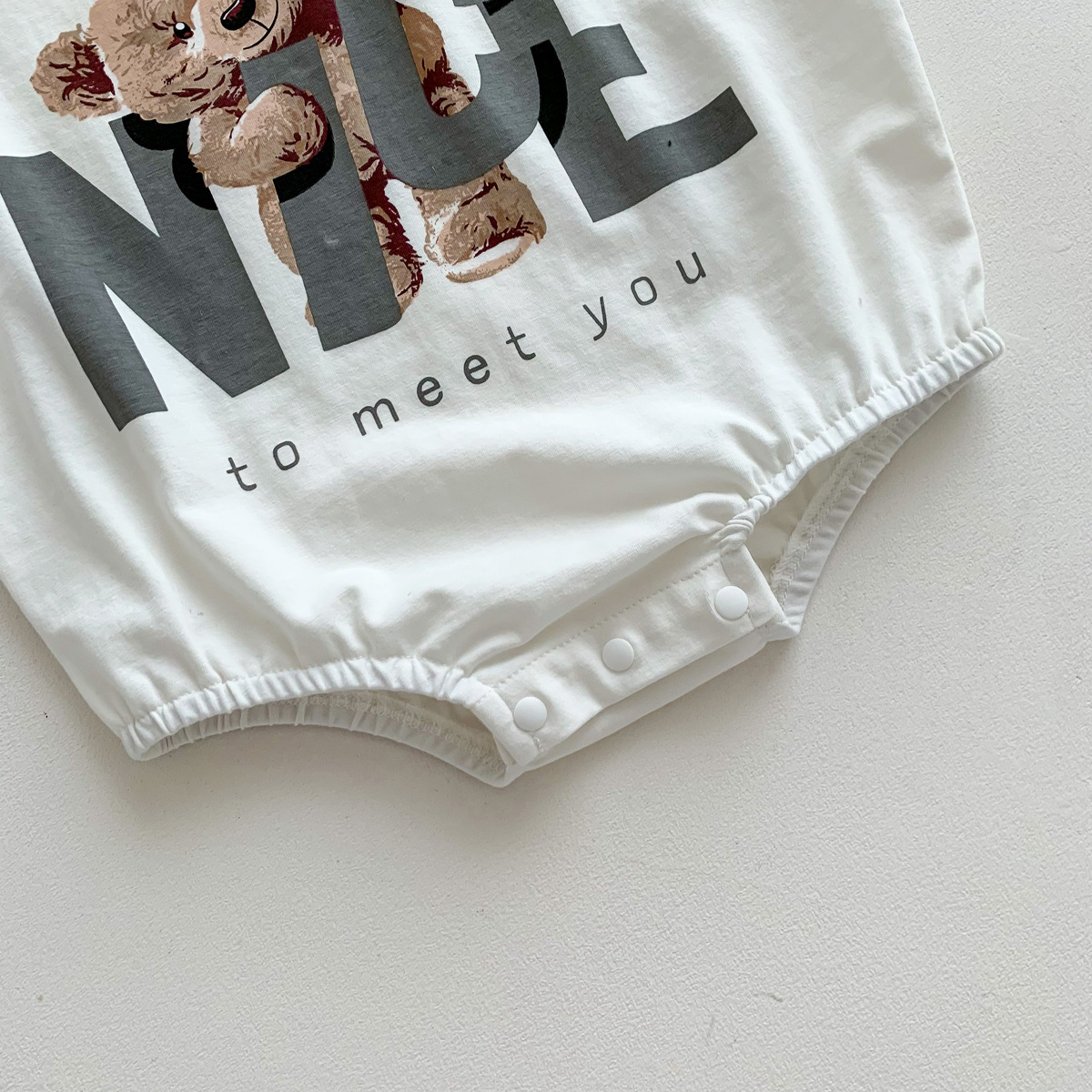 트렌디한 얇은 여름 스타일 한국판 루즈핏 남아용 삼각형 바디수트 아기 갈색 곰돌이 부드럽고 편안한 면 소재 롬퍼