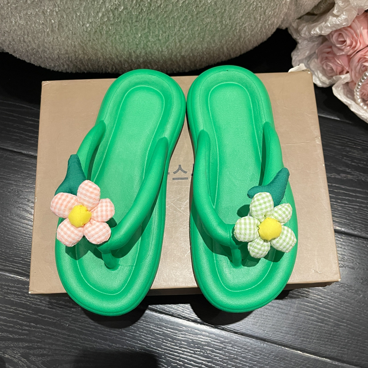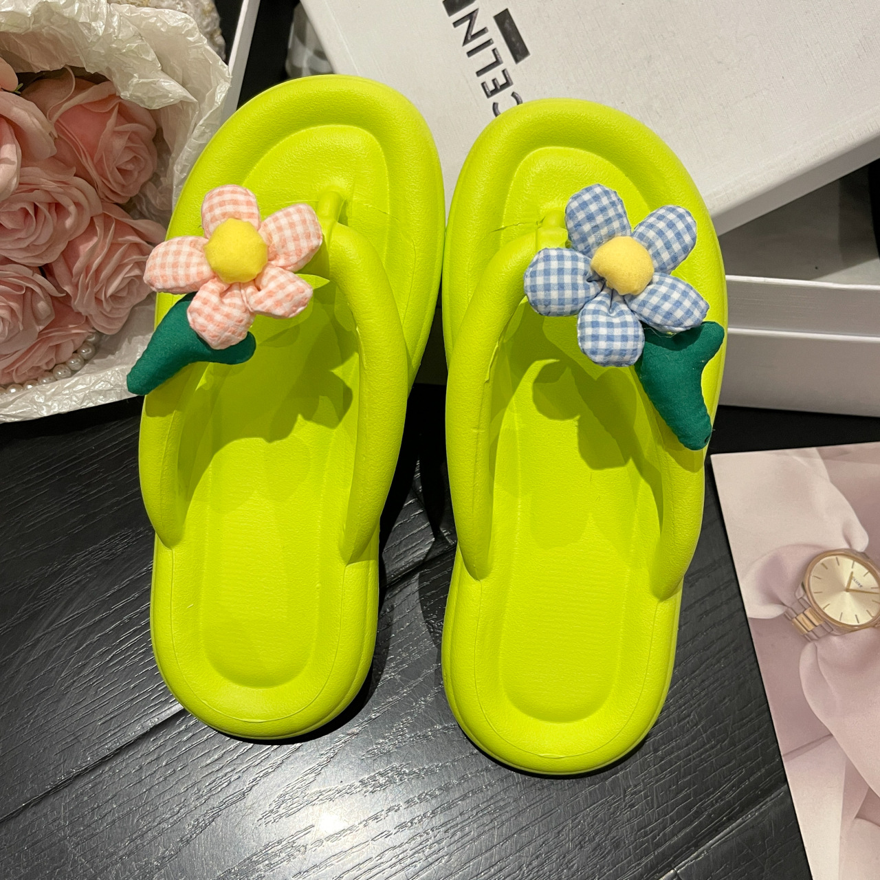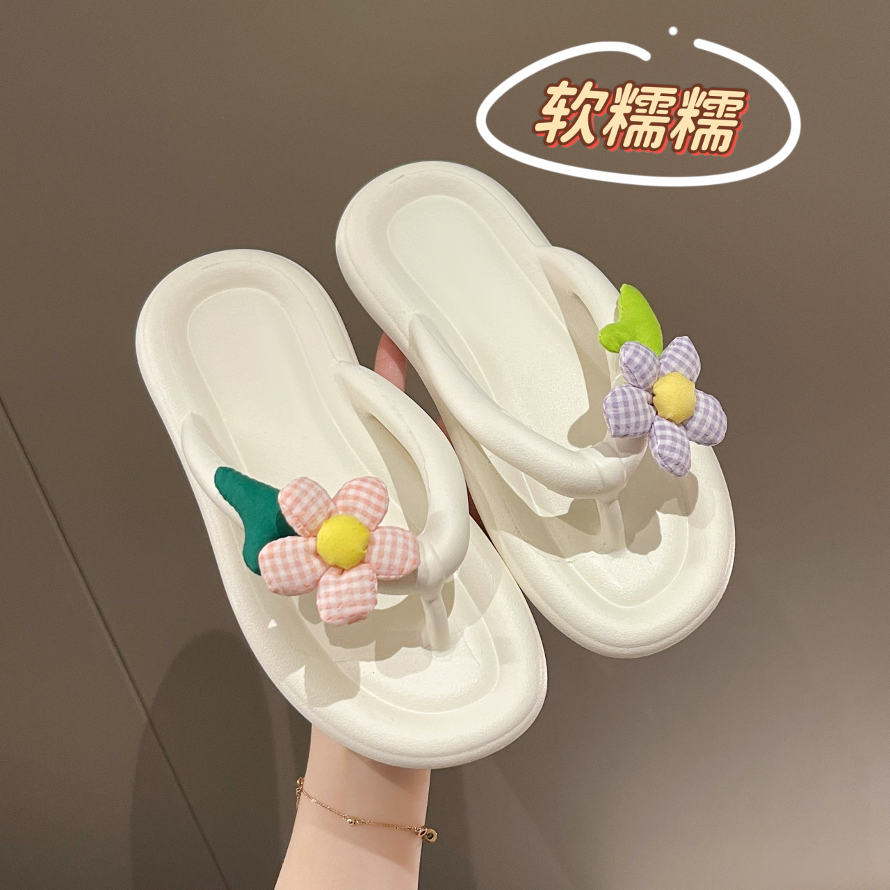 귀여운 소녀의 슬리퍼 여성용 겉옷 부드러운 바닥 배설물 플립 플롭 욕실 목욕 2023 여름 새로운 꽃 샌들스토어 가기