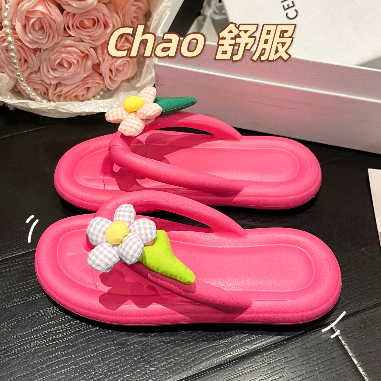 귀여운 소녀의 슬리퍼 여성용 겉옷 부드러운 바닥 배설물 플립 플롭 욕실 목욕 2023 여름 새로운 꽃 샌들