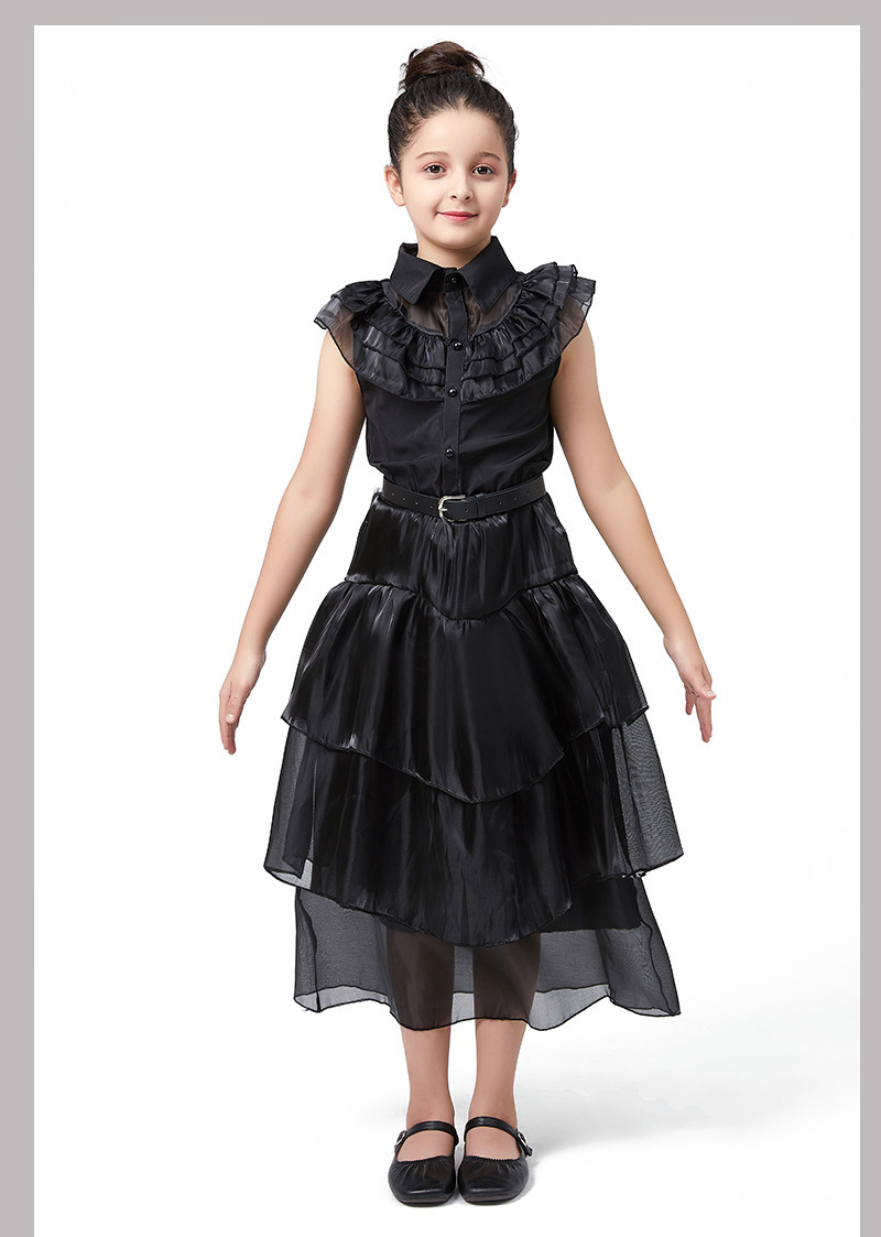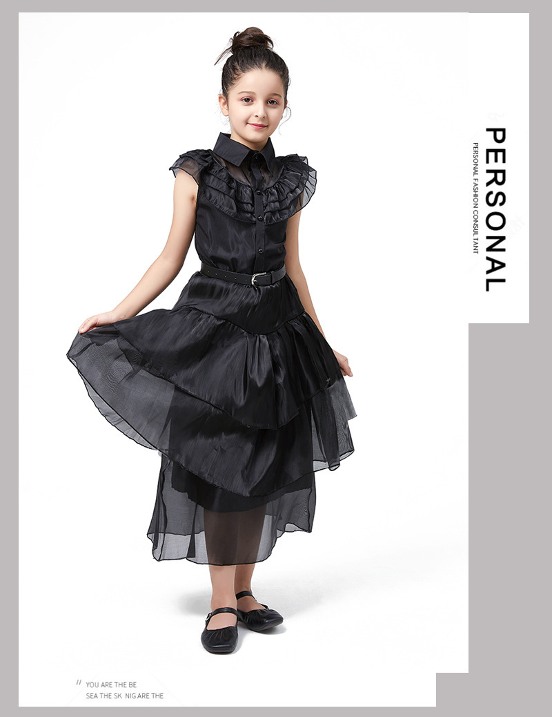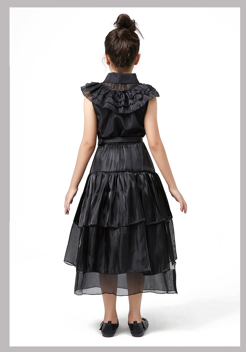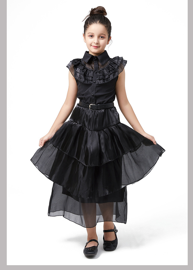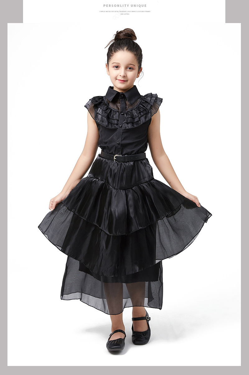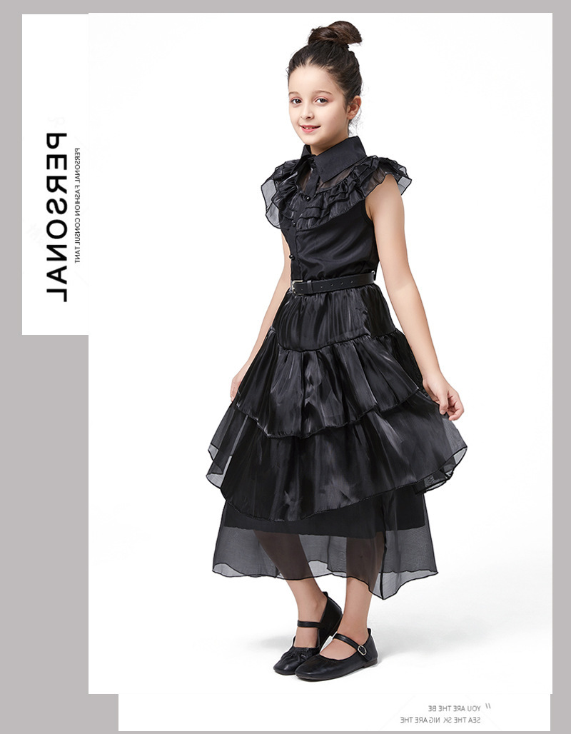 아담스 가족 코스프레 옷 수요일 공연 옷 수요일 같은 스타일 블랙 원피스