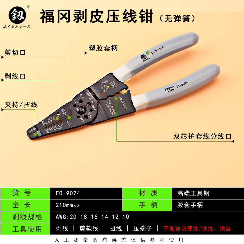 후쿠오카 다기능 와이어 스트리핑 플라이어 FO-9074 스트리핑 플라이어 전기공 스트리핑 와이어 절단 수동 하드웨어 도구스토어 가기