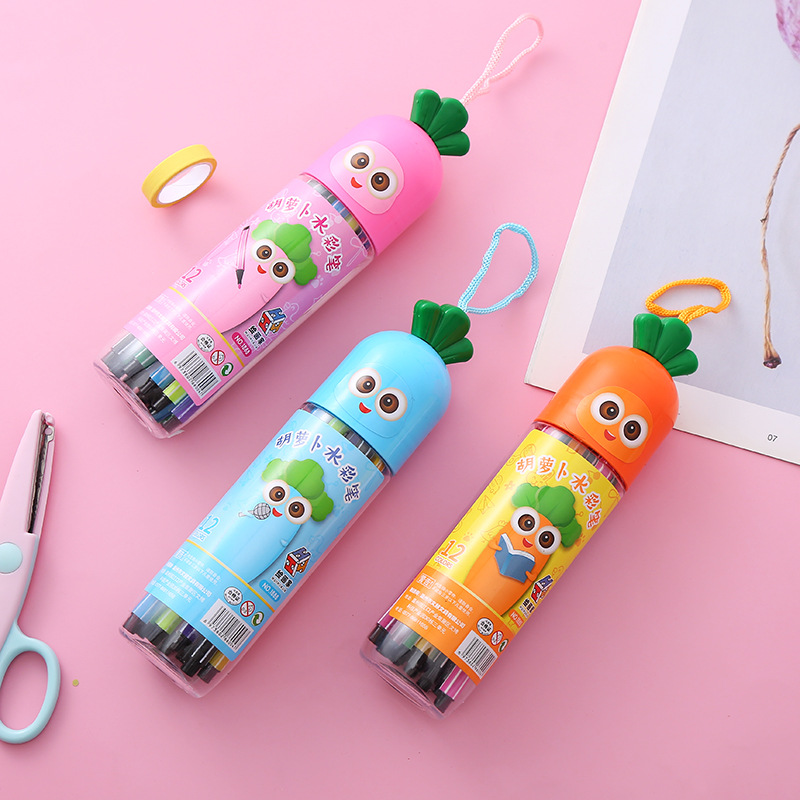 크리 에이 티브 만화 당근 어린이 그림 수채화 펜 세트 12 색 수채화 펜 수업 선물 상 선물스토어 가기