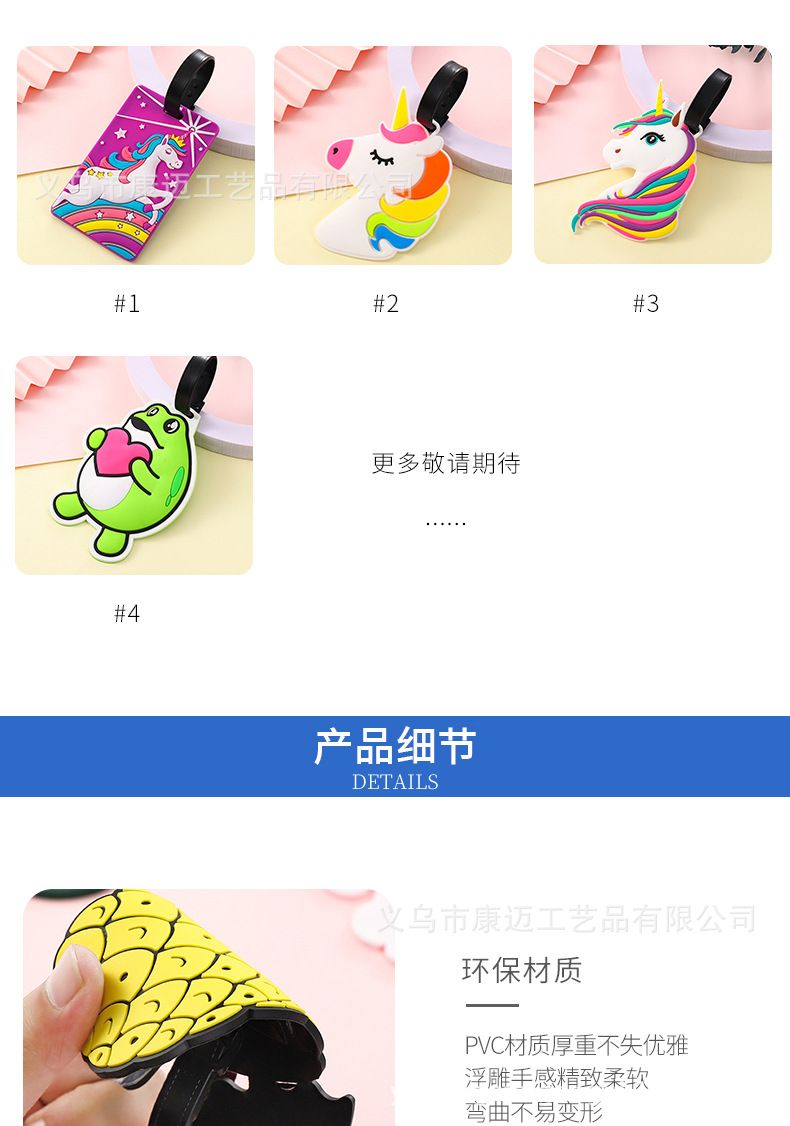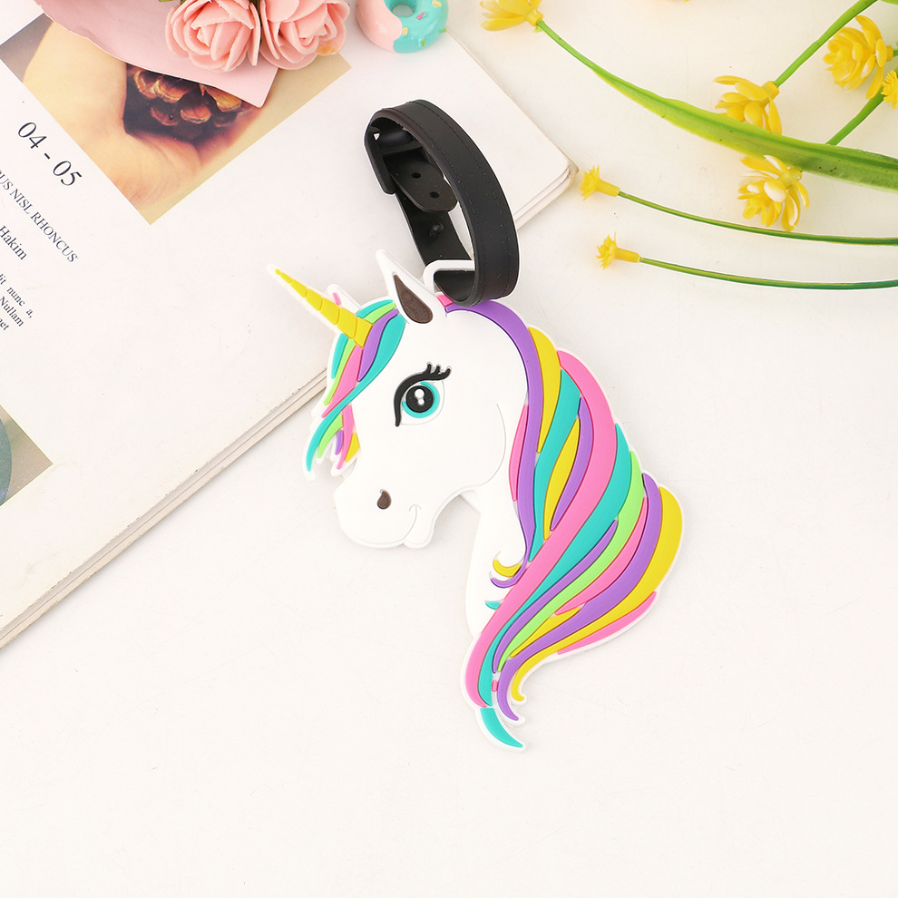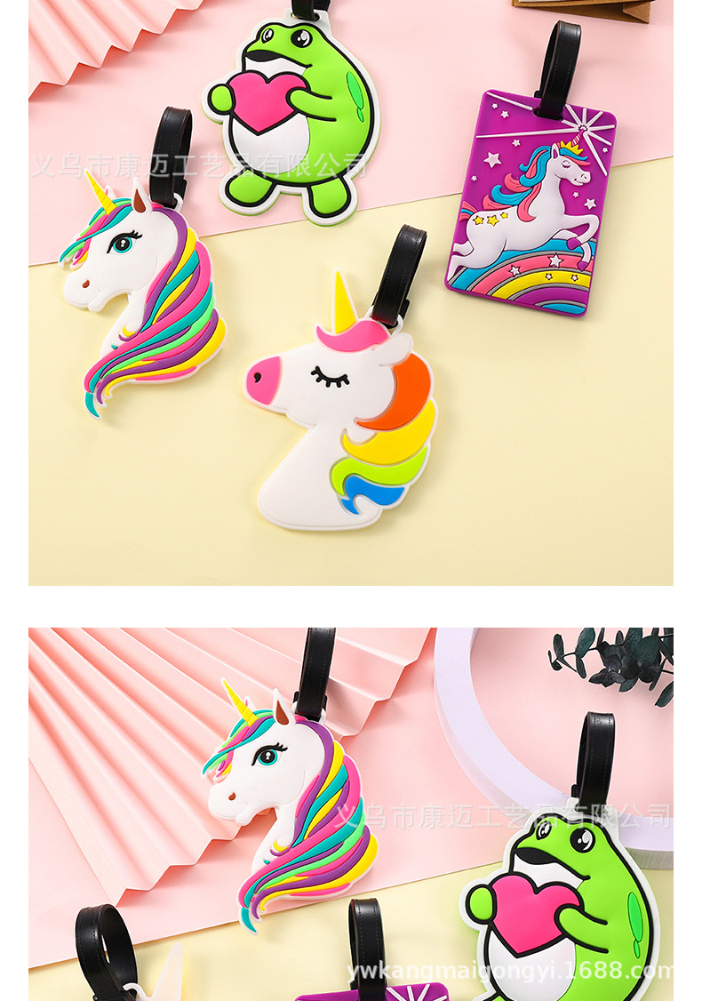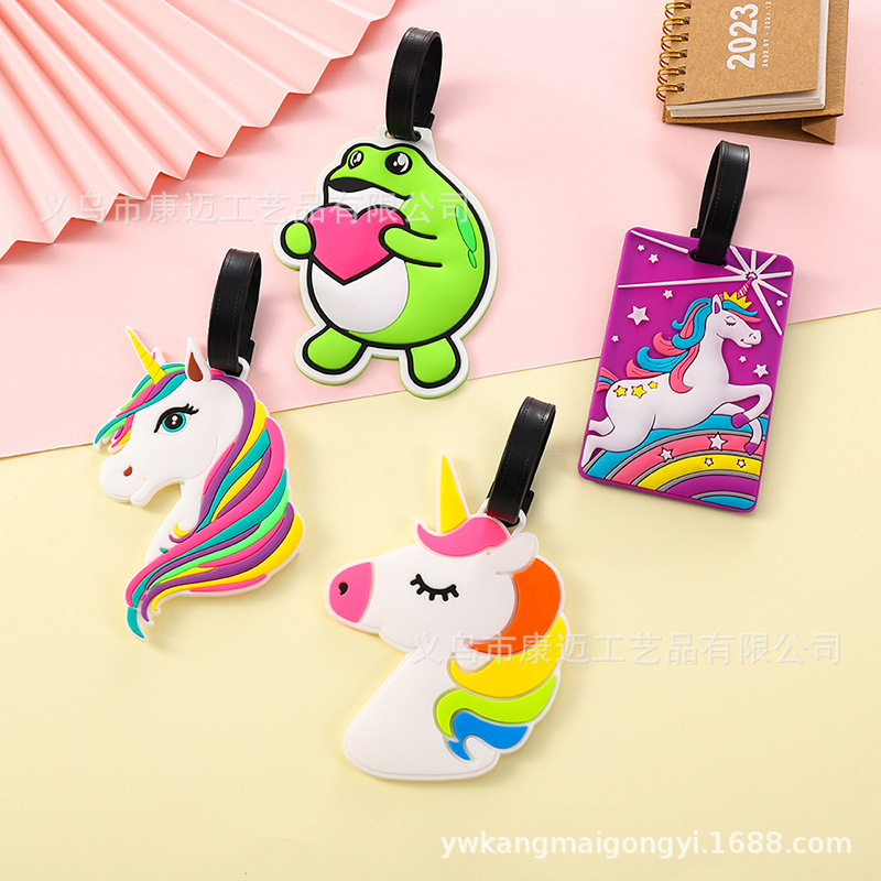 Pvc 부드러운 고무 수하물 태그 유니콘 개구리 인형 카드 세트 탑승권 만화 태그 실리콘 수하물 태그