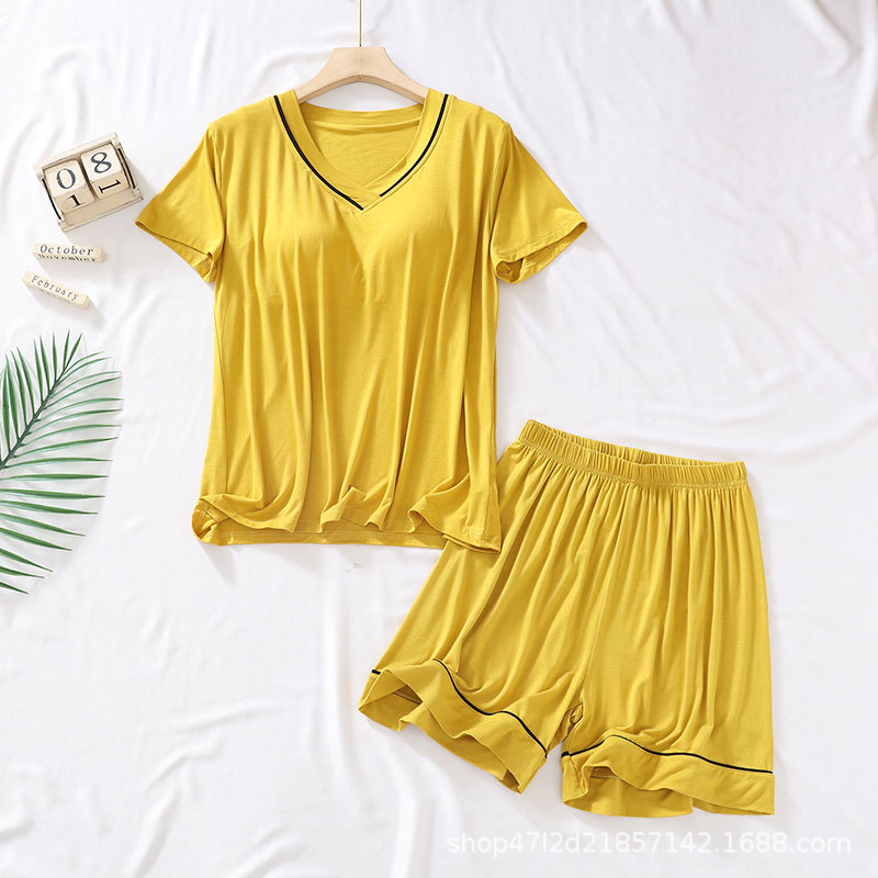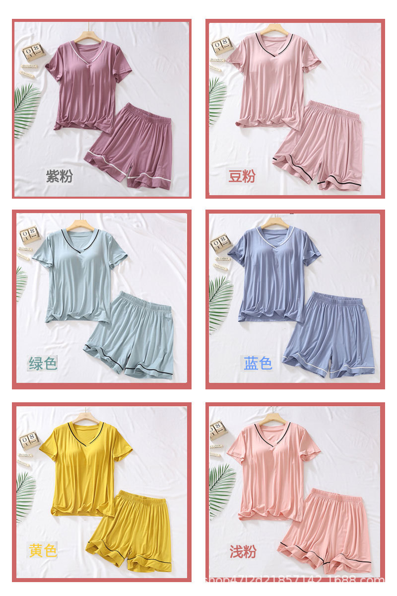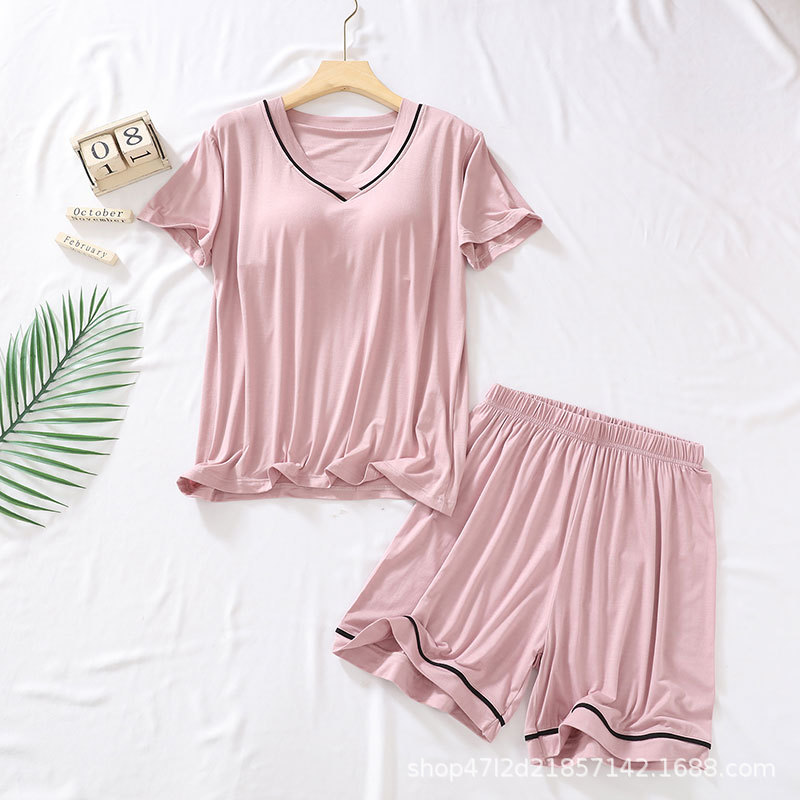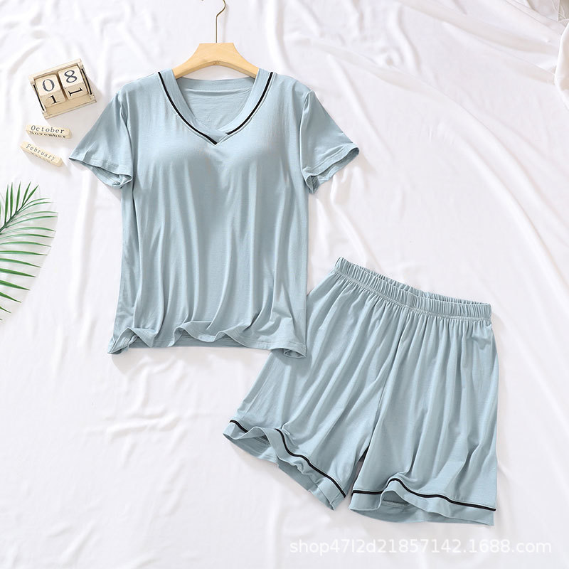 가슴 패드가있는 모달 잠옷 여성용 2023 새로운 여름 얇은 느슨한 반팔 반바지 투피스 가정복