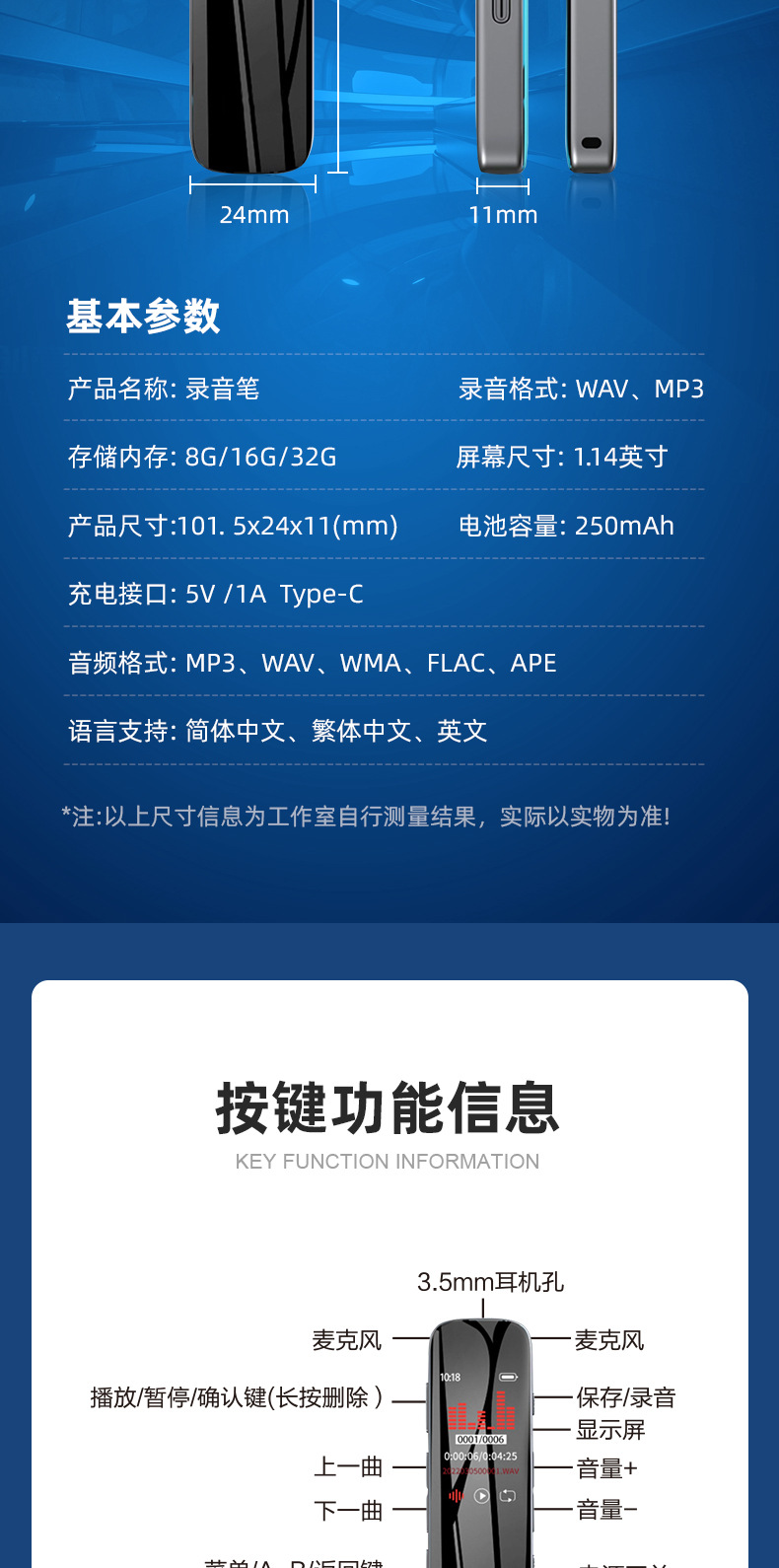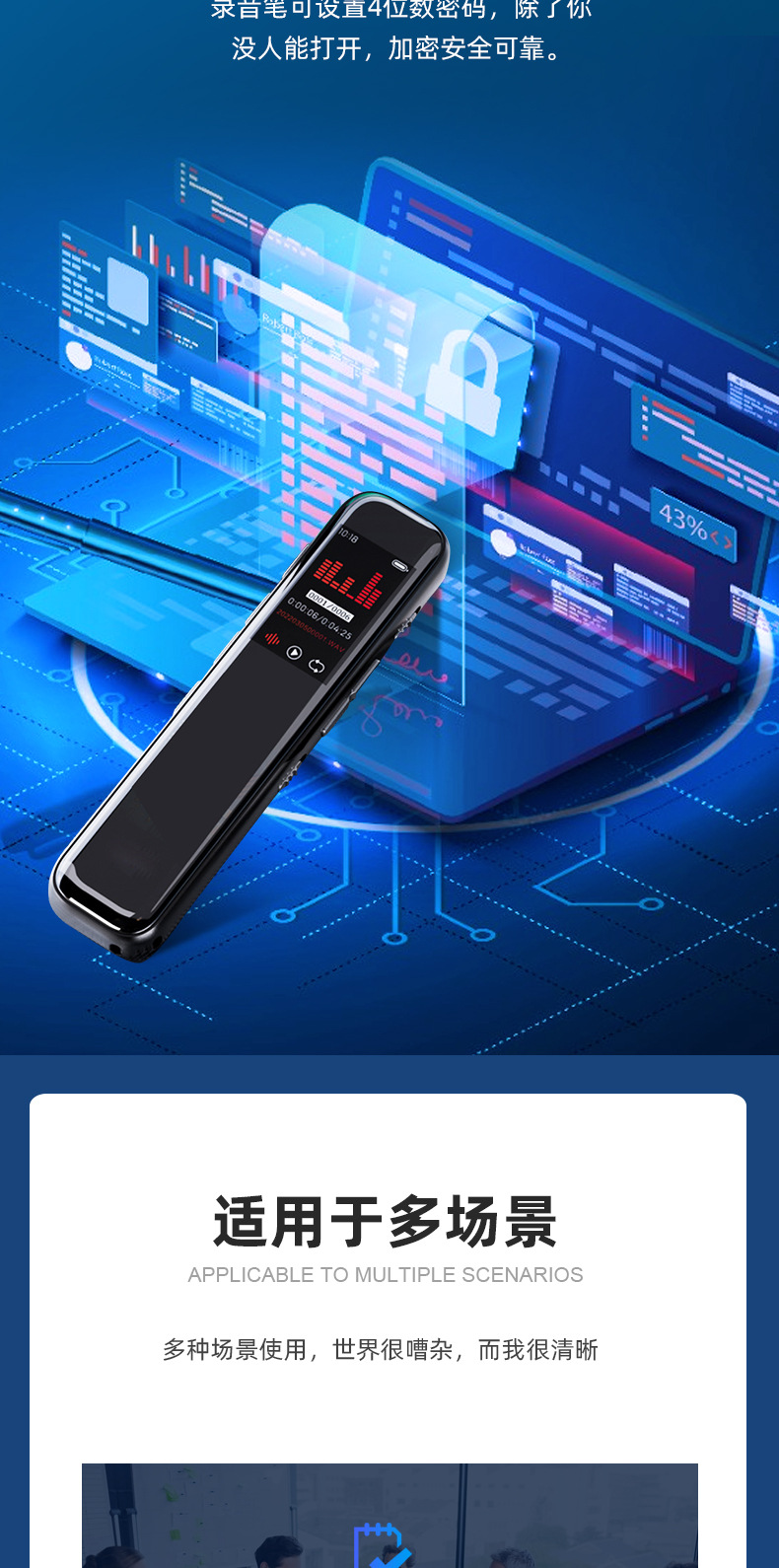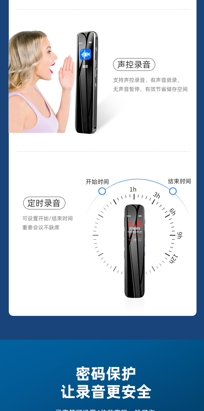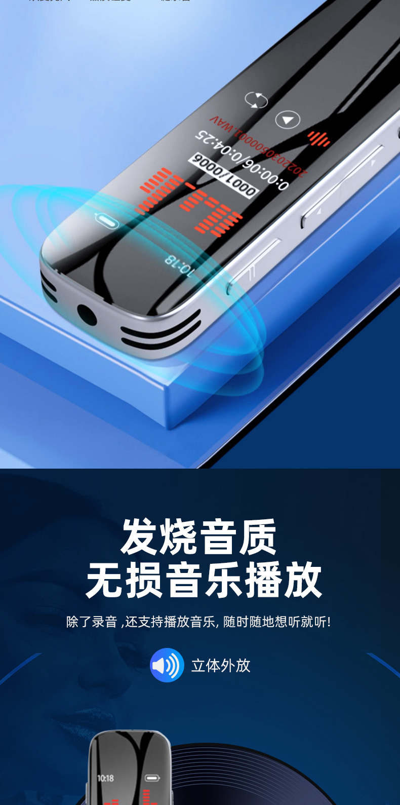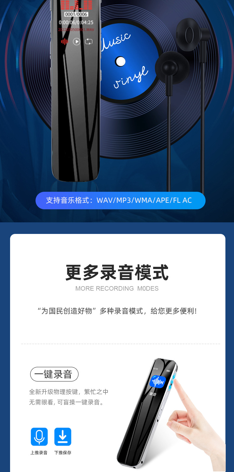 프로페셔널 레코딩 펜 HD 노이즈 저감 원버튼 레코딩 사업 회의 강습 레코더 휴대용 MP3 녹음 펜