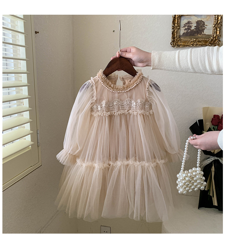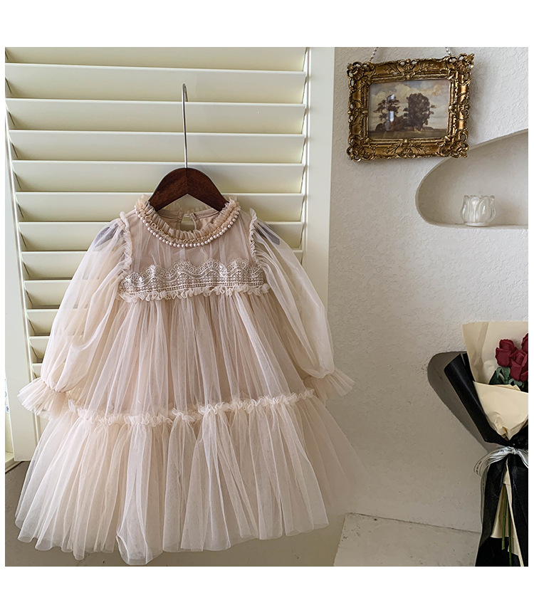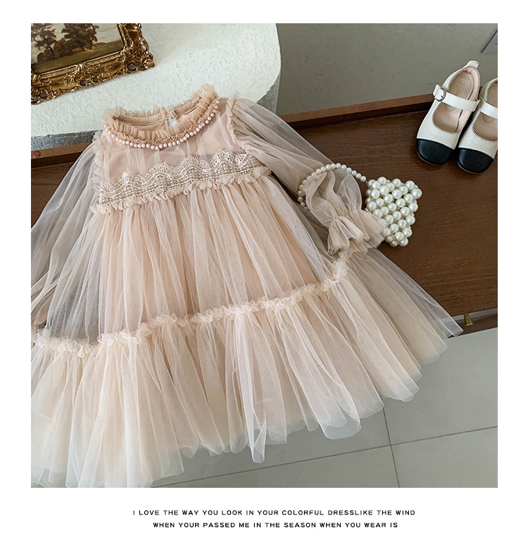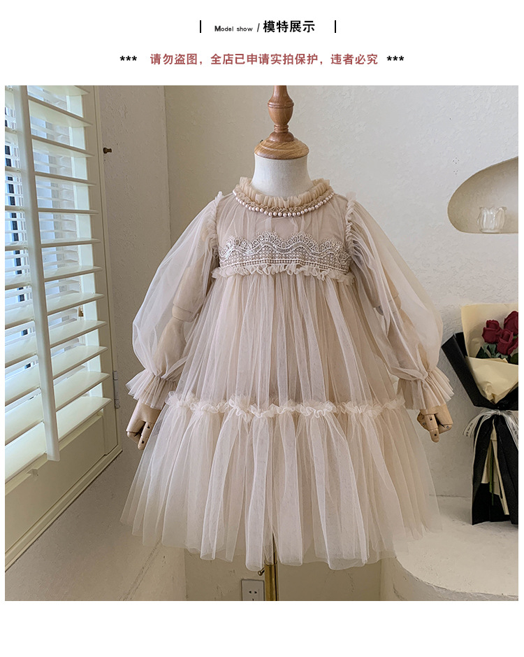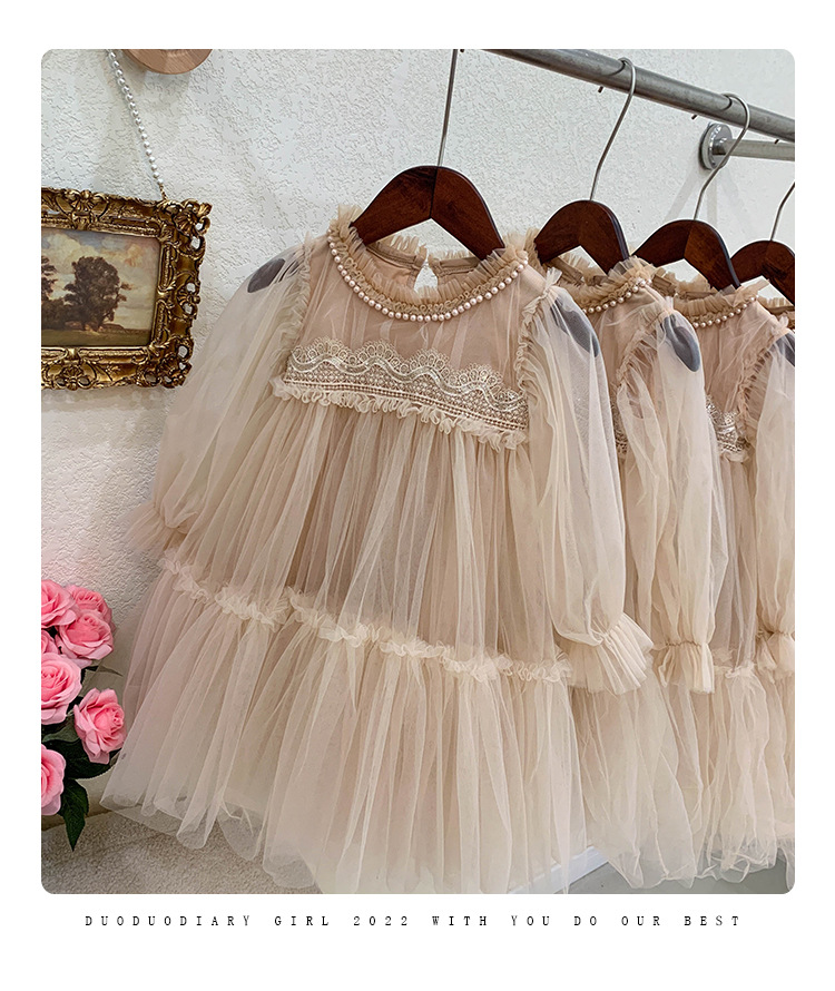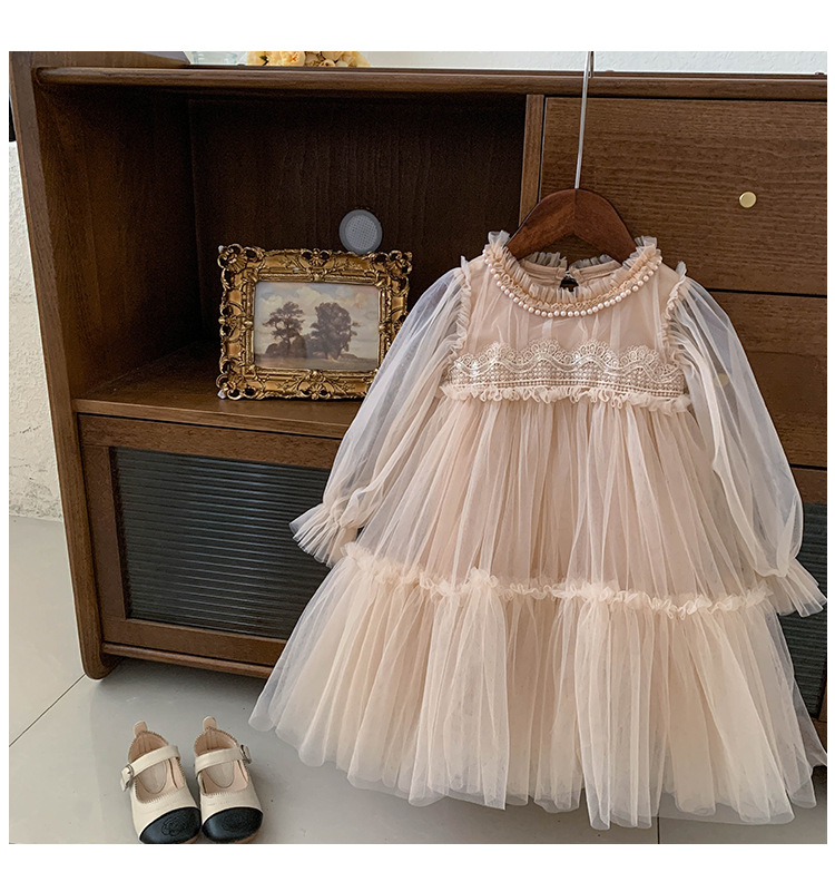 여아 드레스 봄, 가을 2025 새로운 스타일의 아동 여아 패션 레이스 스플라이싱 푹신한 거즈 공주 드레스스토어 가기