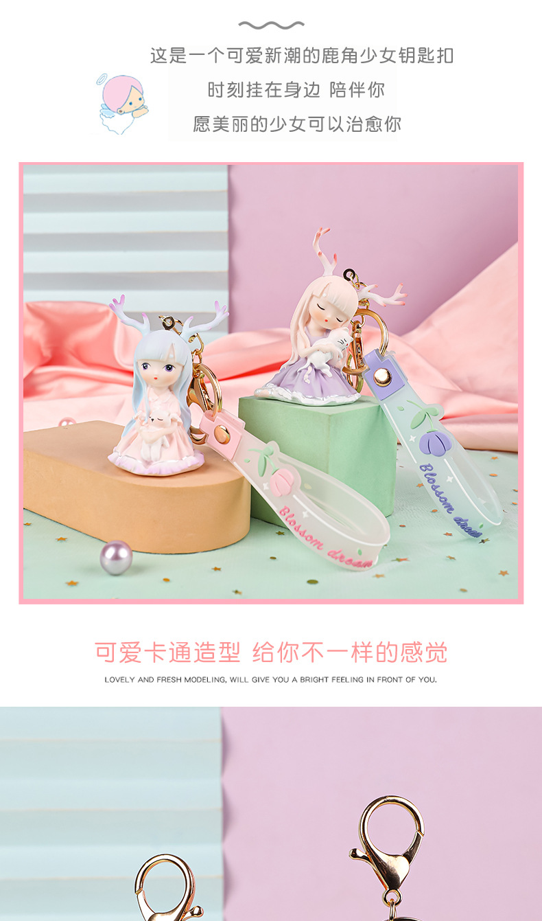 사슴 열쇠 고리 귀여운 소녀 유행 가방 휴대 전화 매달려 펜던트 장식 여자 선물