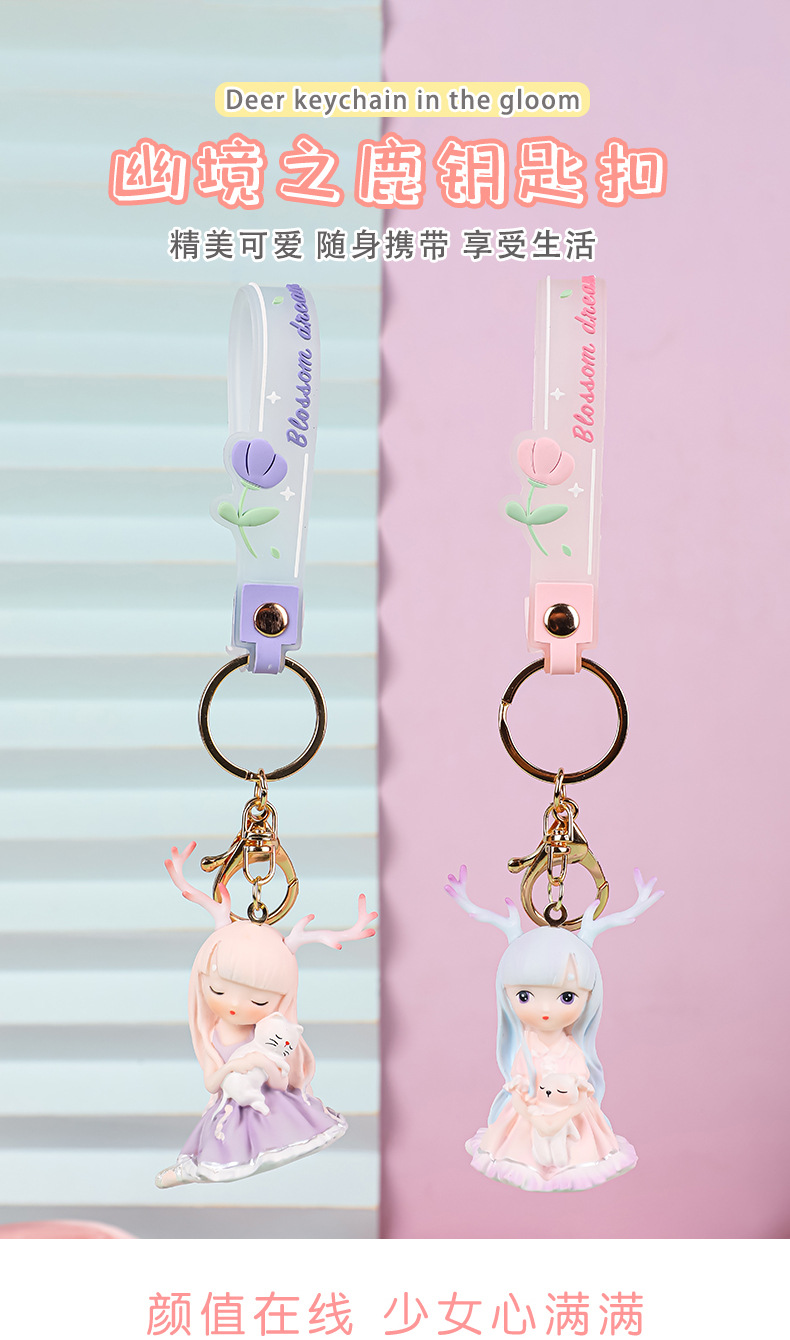 사슴 열쇠 고리 귀여운 소녀 유행 가방 휴대 전화 매달려 펜던트 장식 여자 선물스토어 가기