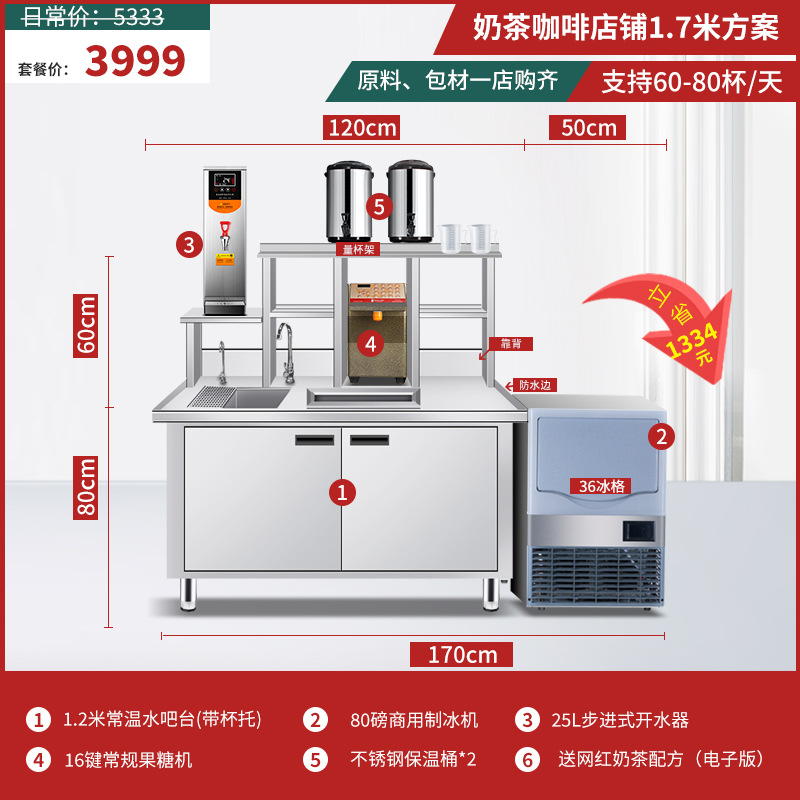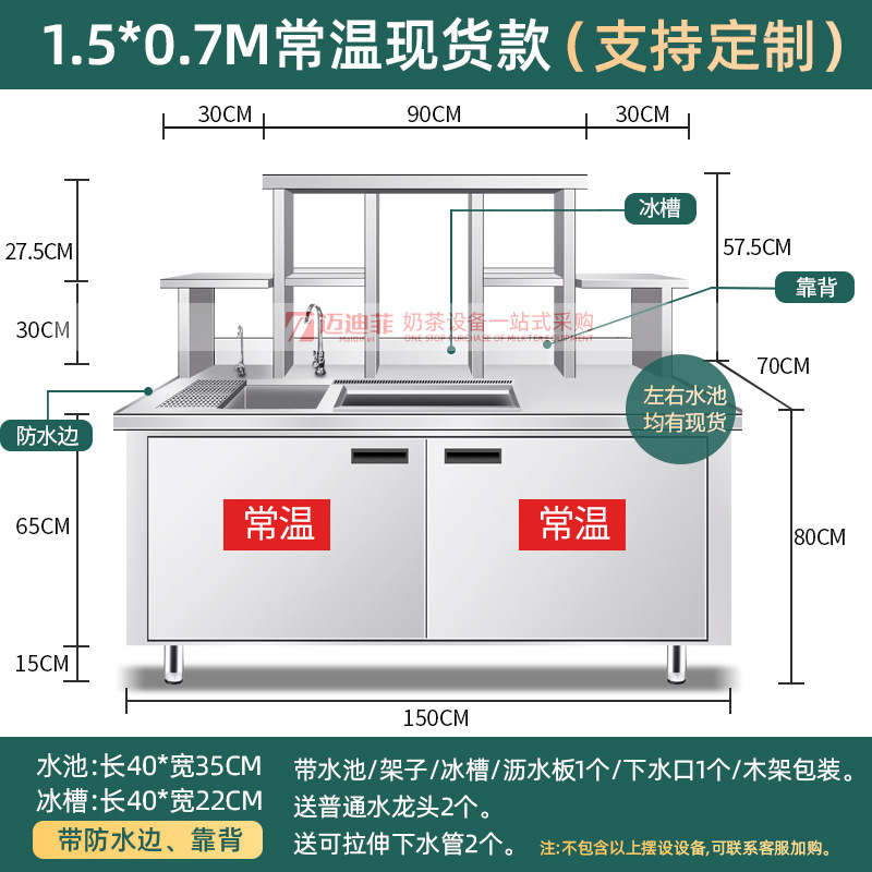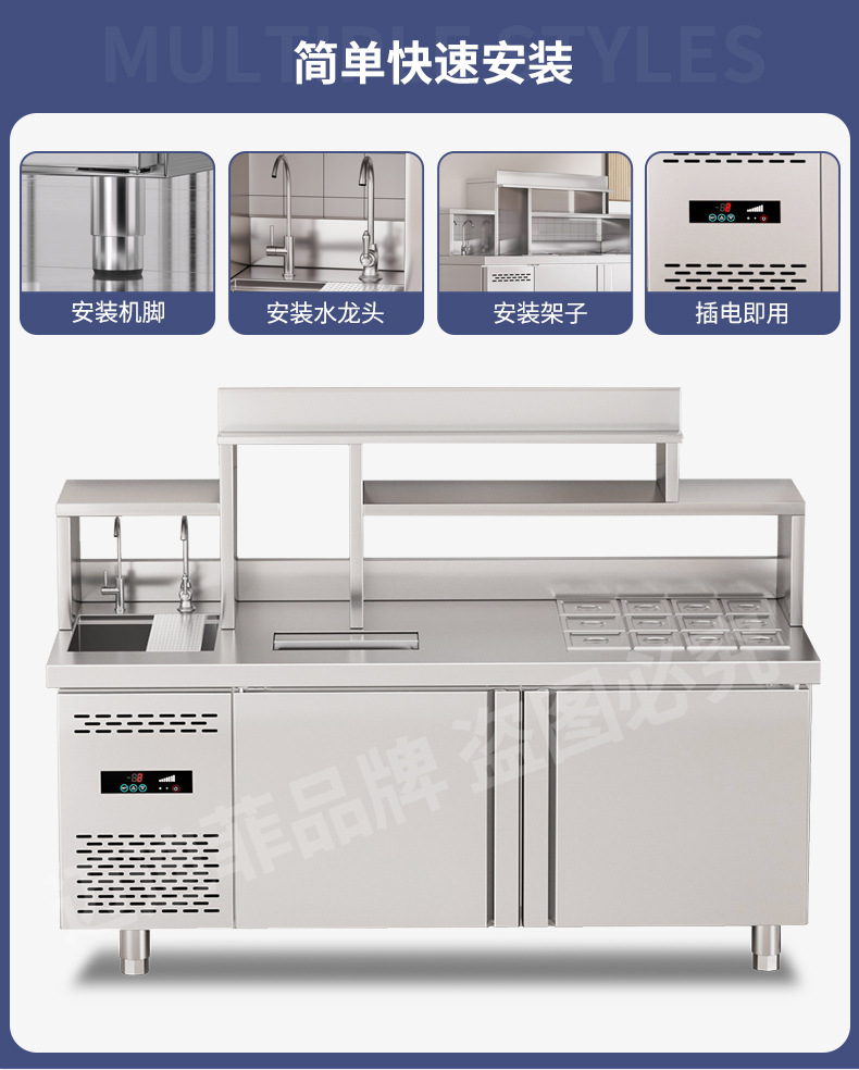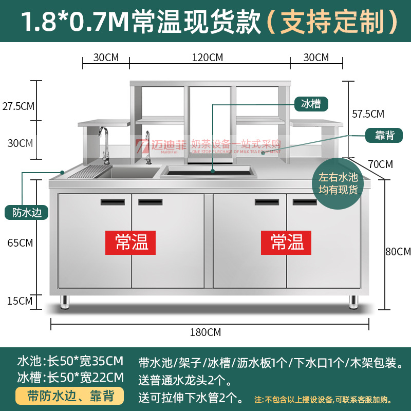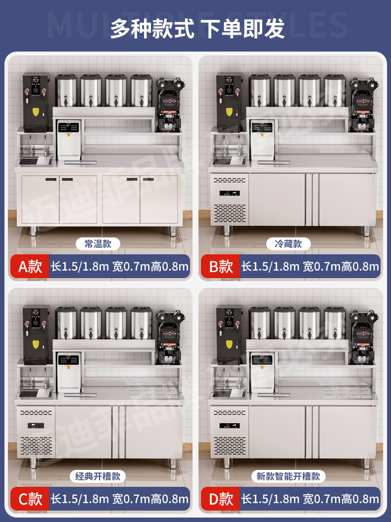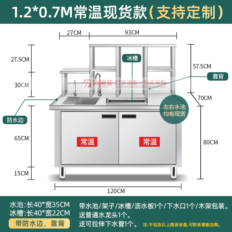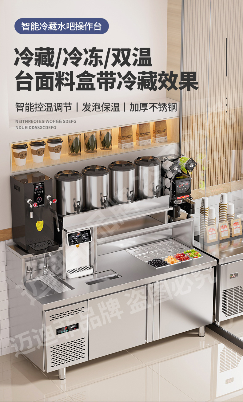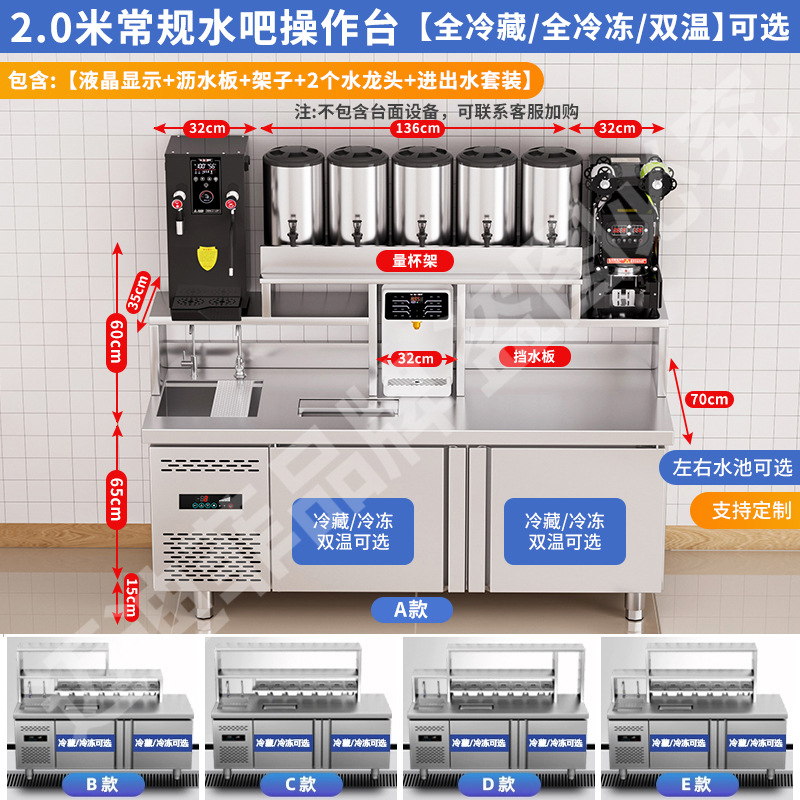 워터바 카운터 밀크티 가게 장비 세트 상업용 냉장 워터바 카운터 작업대 스테인리스 슬롯형 샐러드 작업대스토어 가기