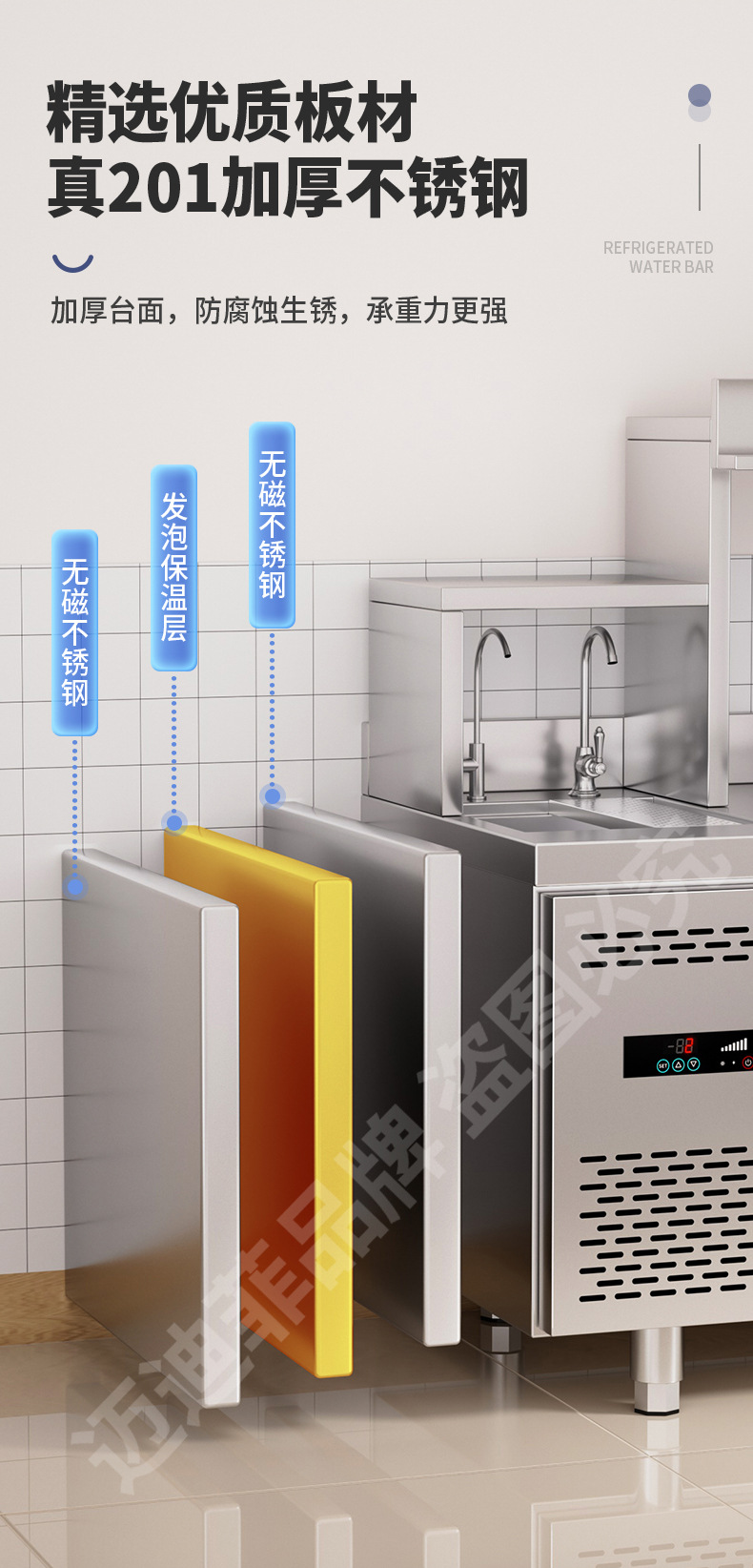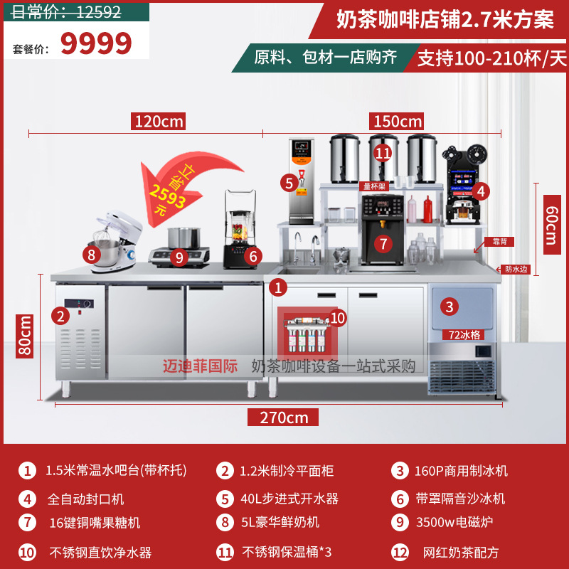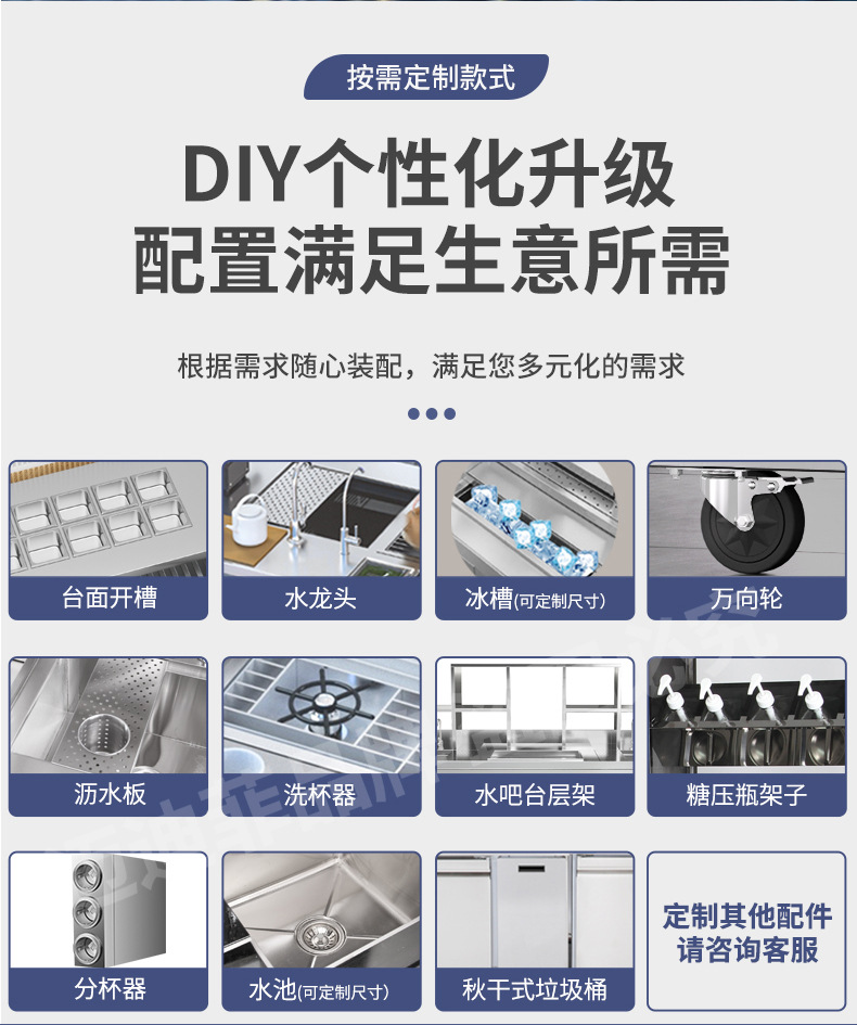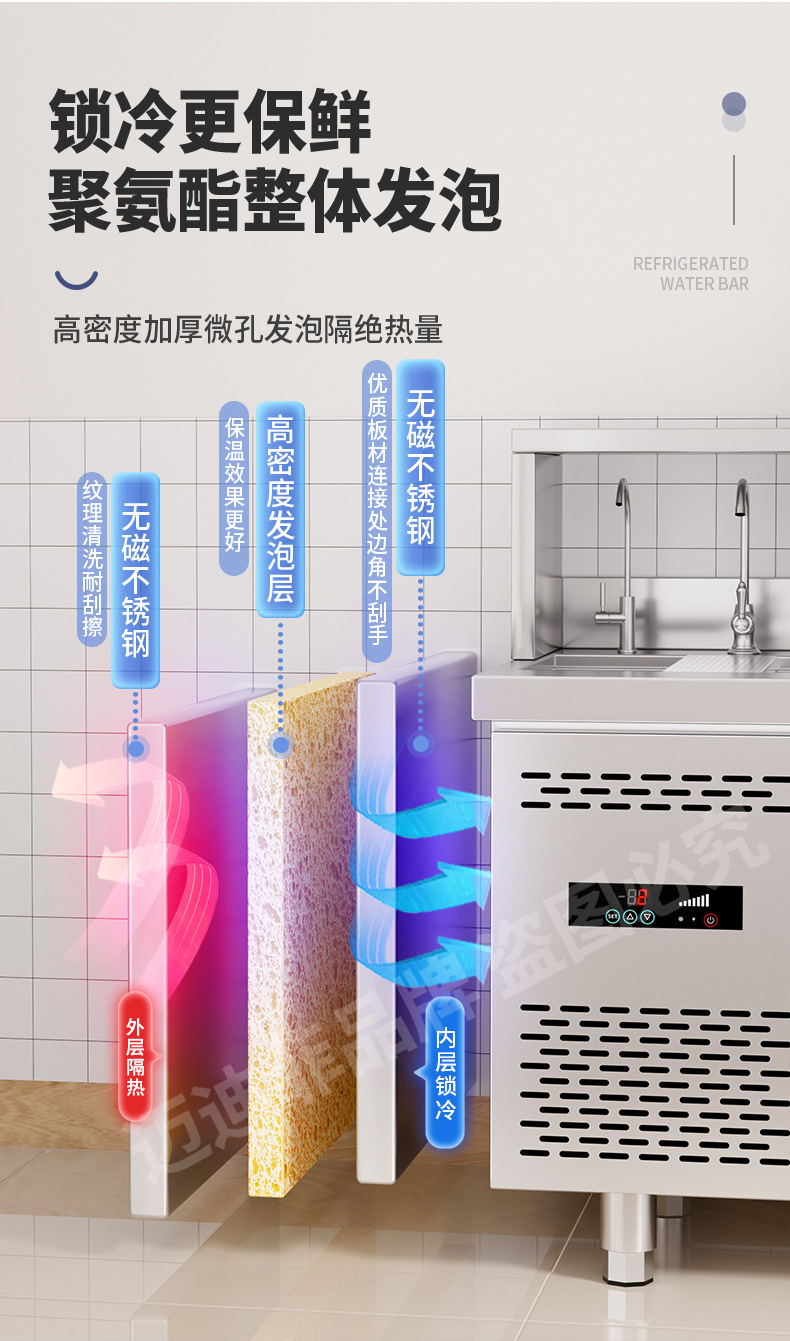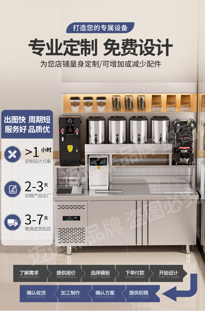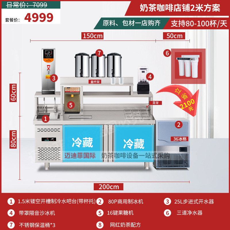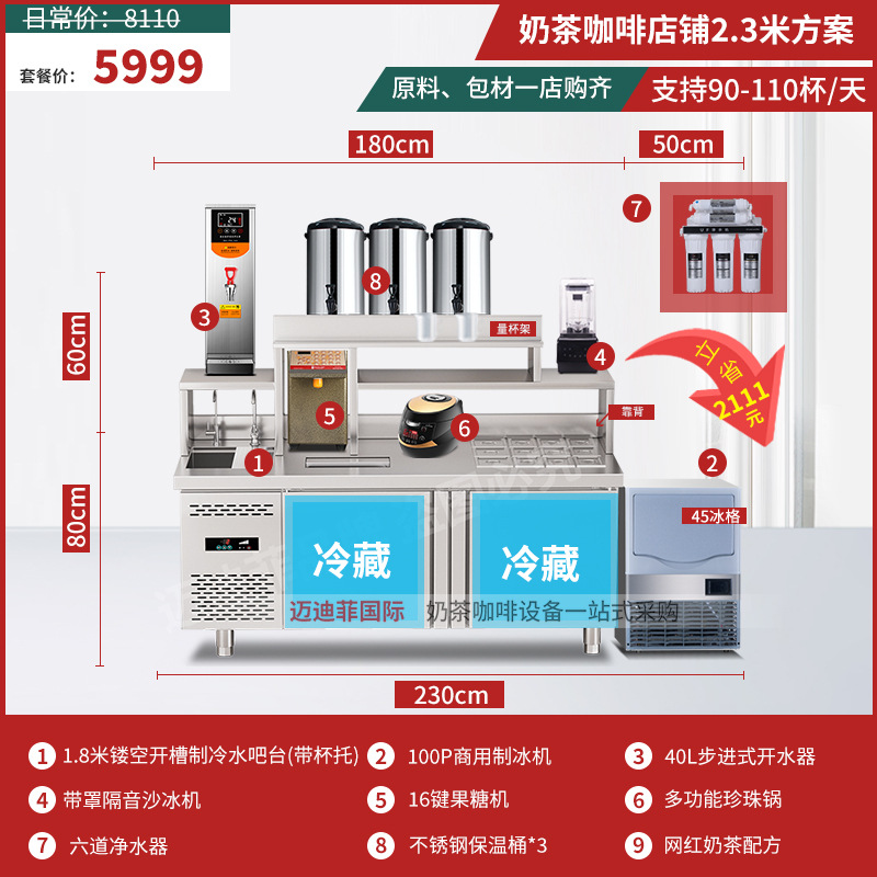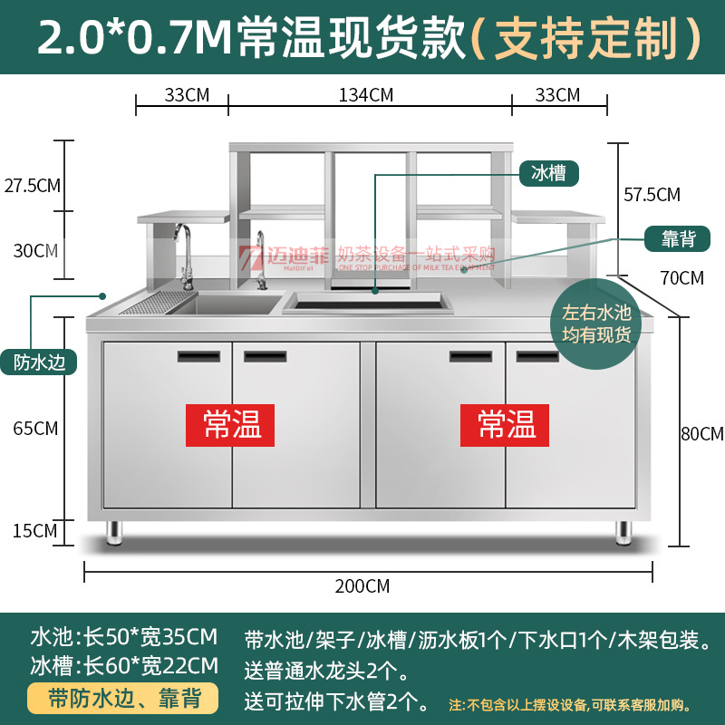 워터바 카운터 밀크티 가게 장비 세트 상업용 냉장 워터바 카운터 작업대 스테인리스 슬롯형 샐러드 작업대스토어 가기