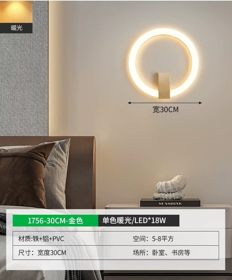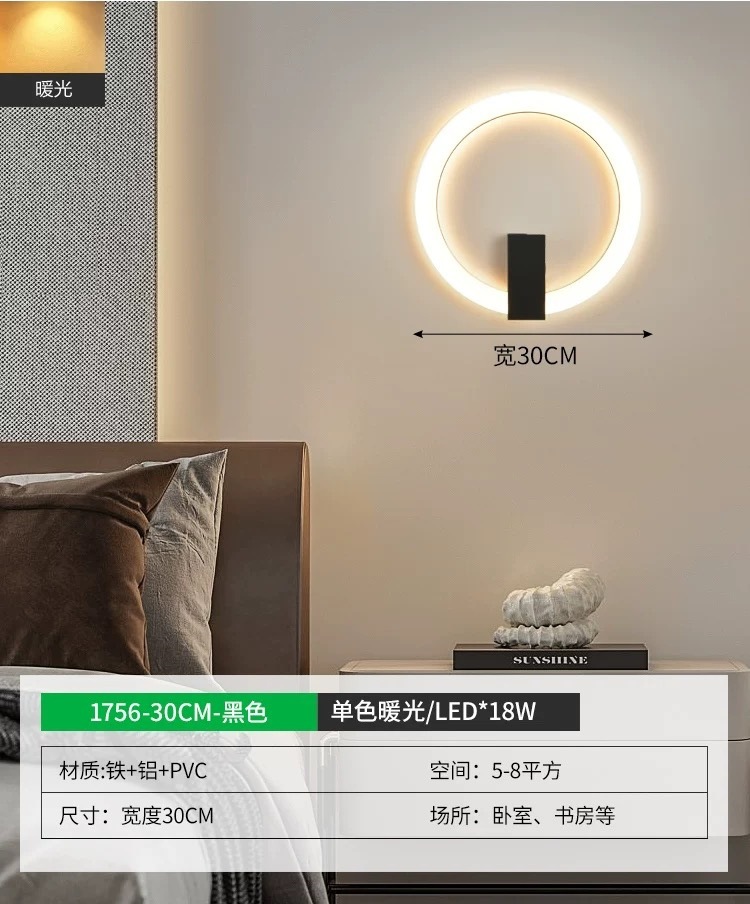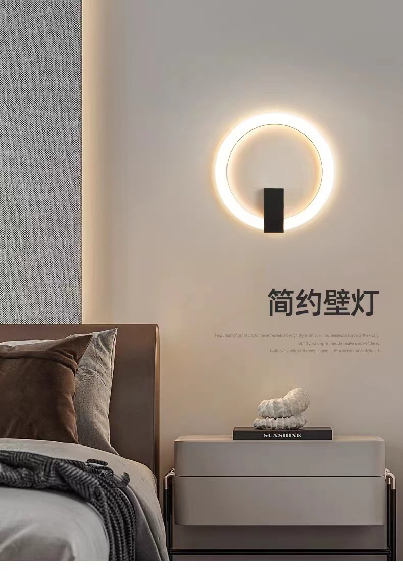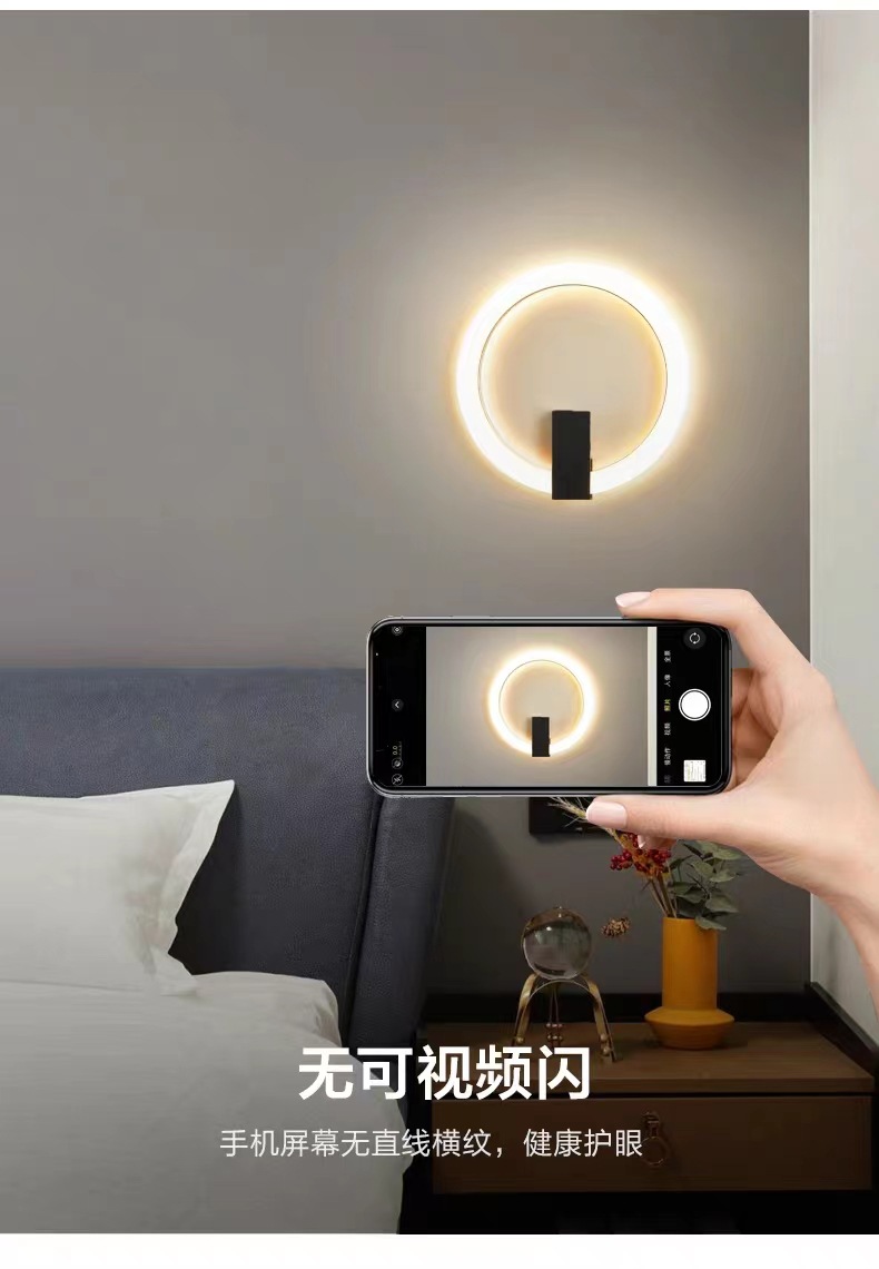 침대 옆 벽 램프 미니멀리스트 크리에이티브 링 침실 방 벽 램프 현대 조명 럭셔리 통로 TV 배경 벽 램프스토어 가기