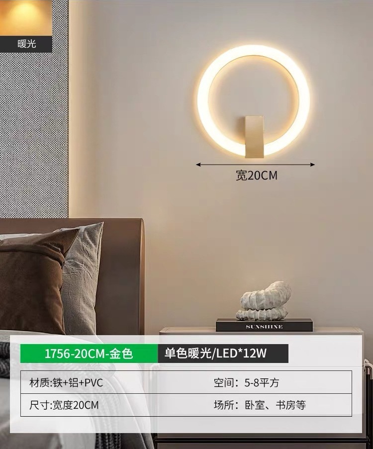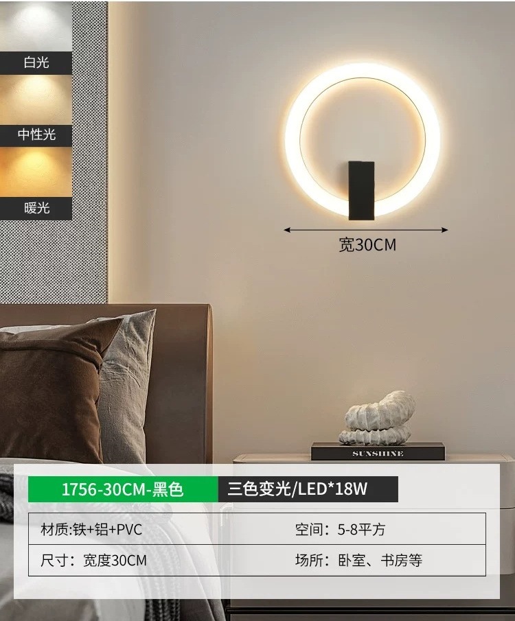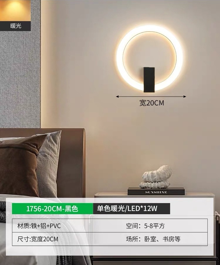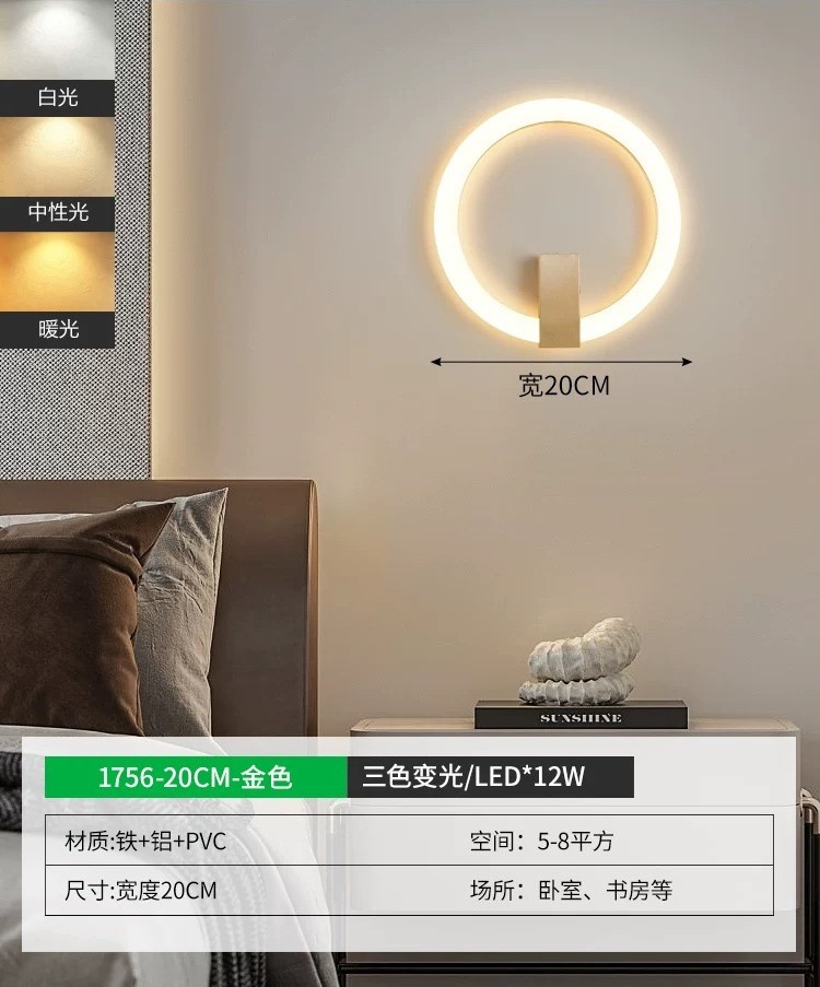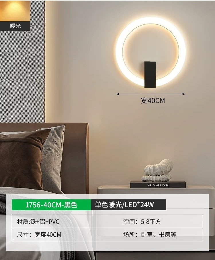 침대 옆 벽 램프 미니멀리스트 크리에이티브 링 침실 방 벽 램프 현대 조명 럭셔리 통로 TV 배경 벽 램프스토어 가기