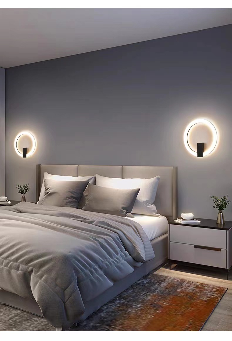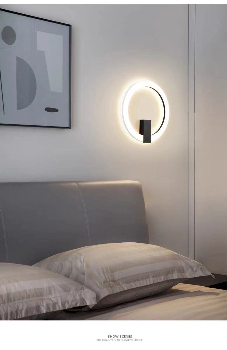 침대 옆 벽 램프 미니멀리스트 크리에이티브 링 침실 방 벽 램프 현대 조명 럭셔리 통로 TV 배경 벽 램프