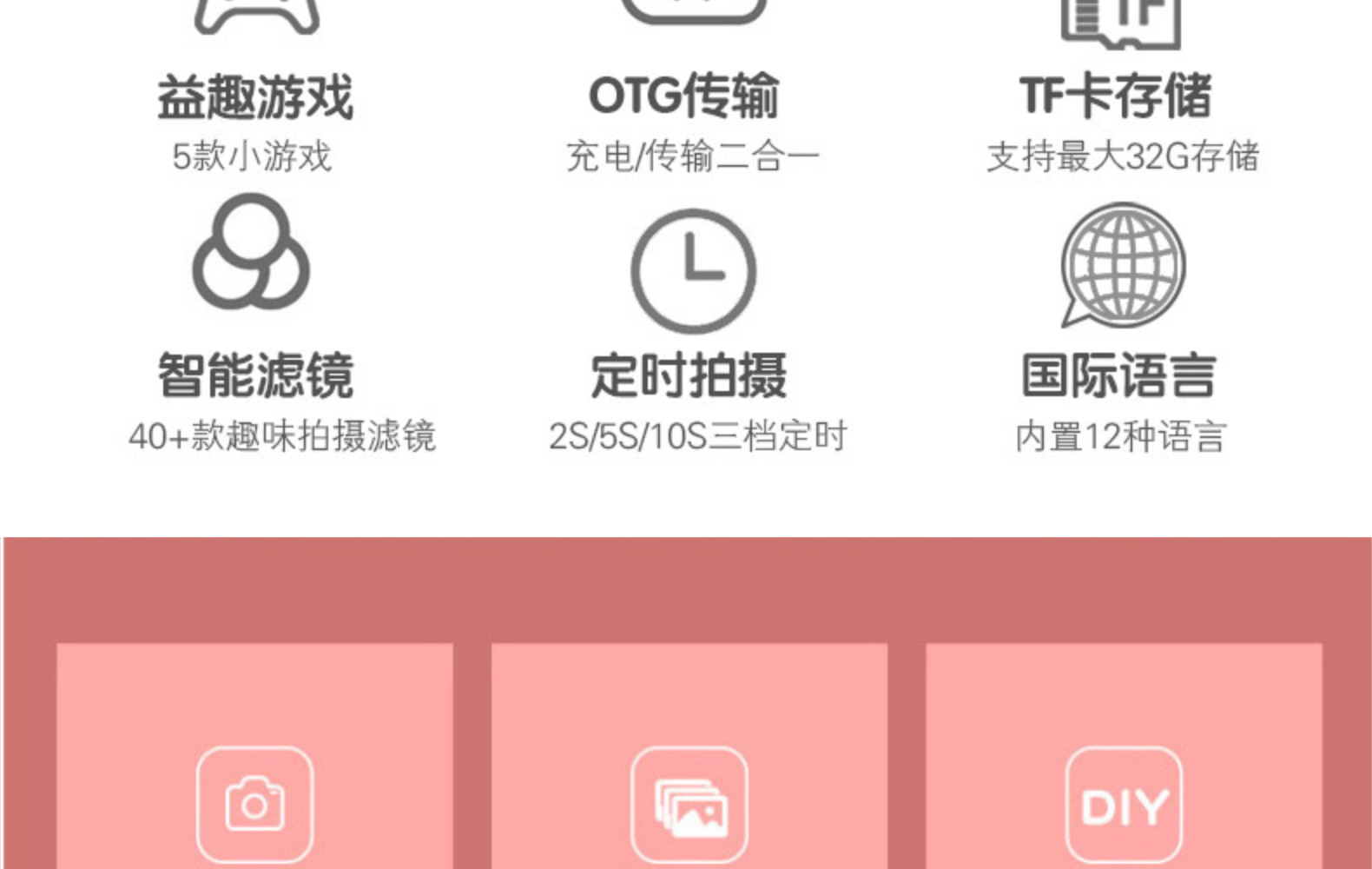 고화소 전후면 듀얼 카메라를 갖춘 어린이용 디지털 카메라로 셀카 및 비디오 녹화가 가능하며 고화질 픽셀을 사용자 정의할 수 있습니다.스토어 가기