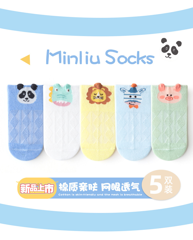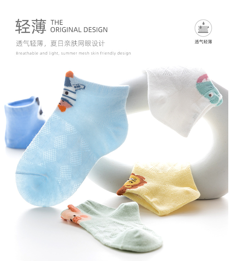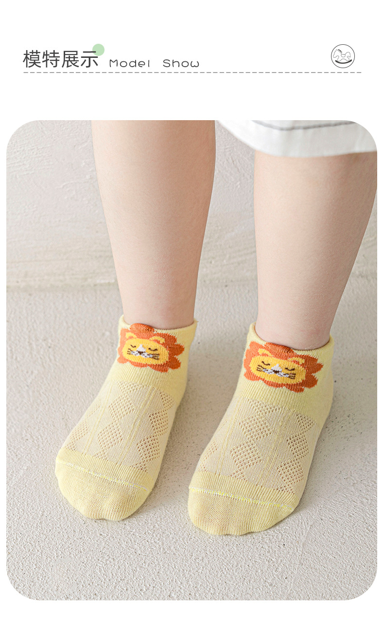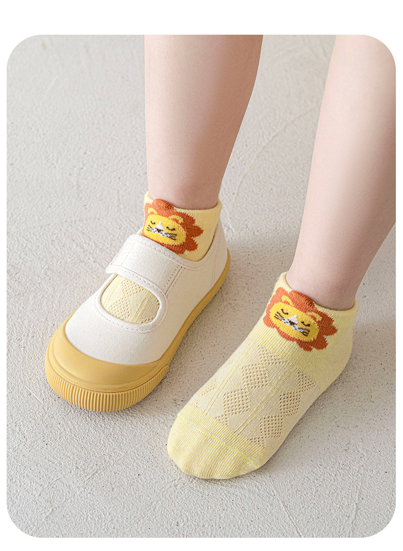 새로운 두리안 양말 단색 만화 사자 봄과 여름 메쉬 보트 양말 통기성 땀 흡수 소년 면화 양말 도매스토어 가기