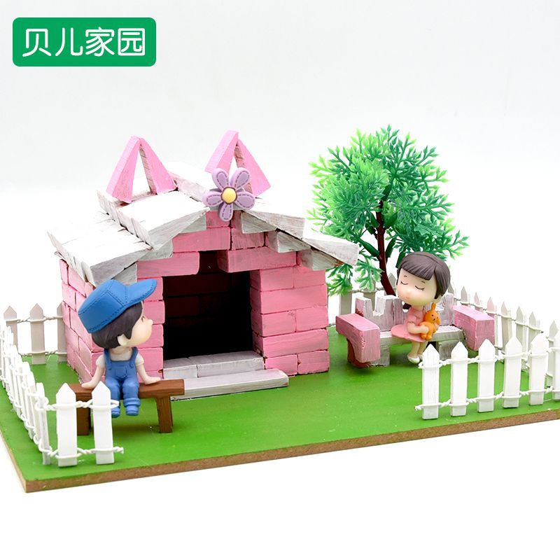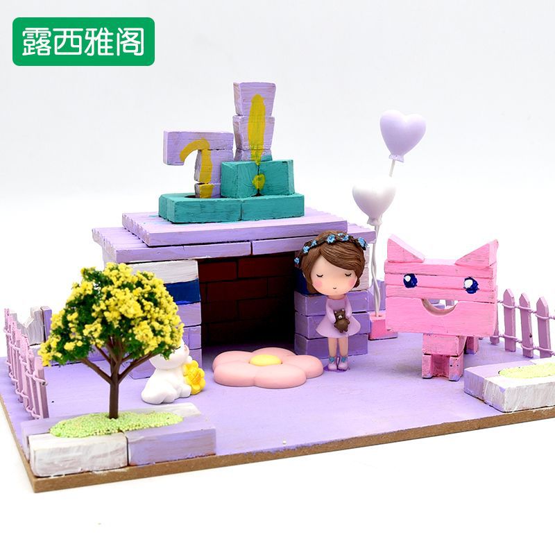 작은 벽돌공 DIY 오두막 시뮬레이션 미니 벽돌 건축 별장 집 어린이 교육용 수제 장난감