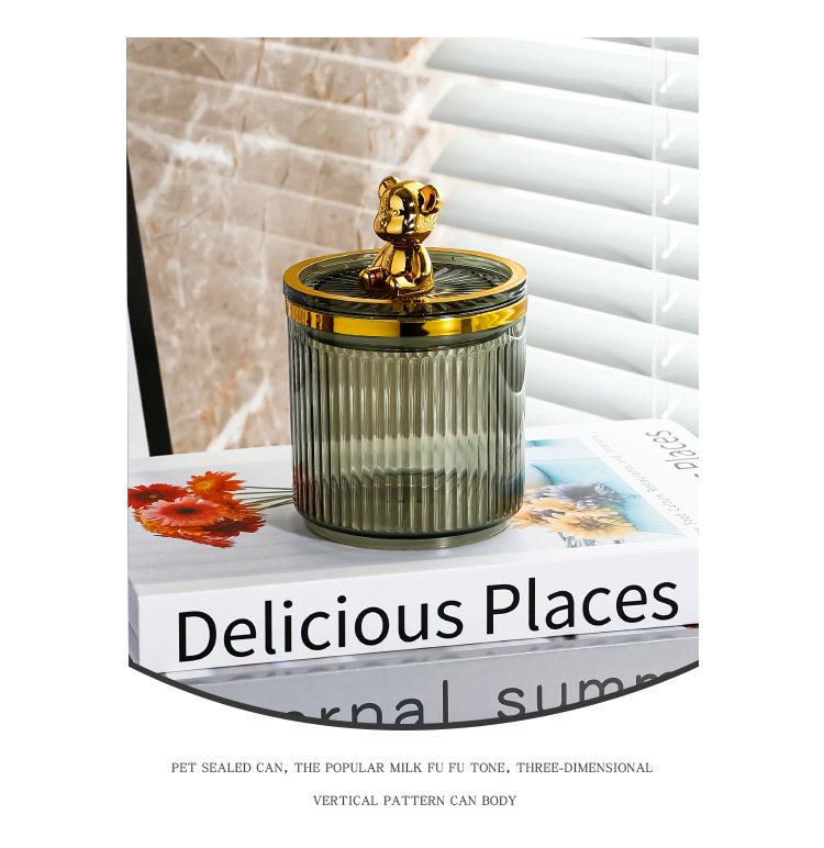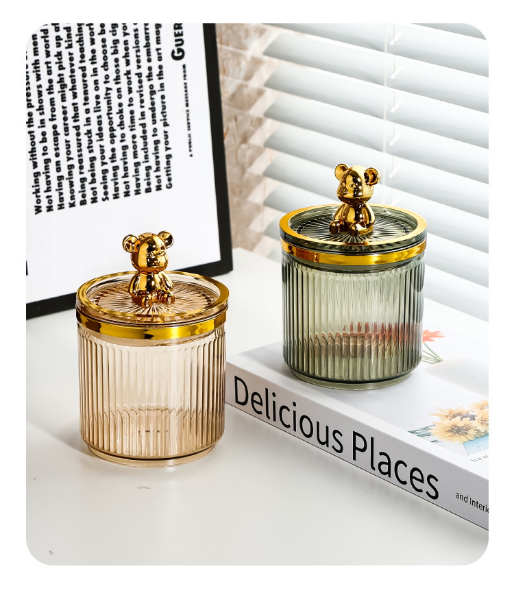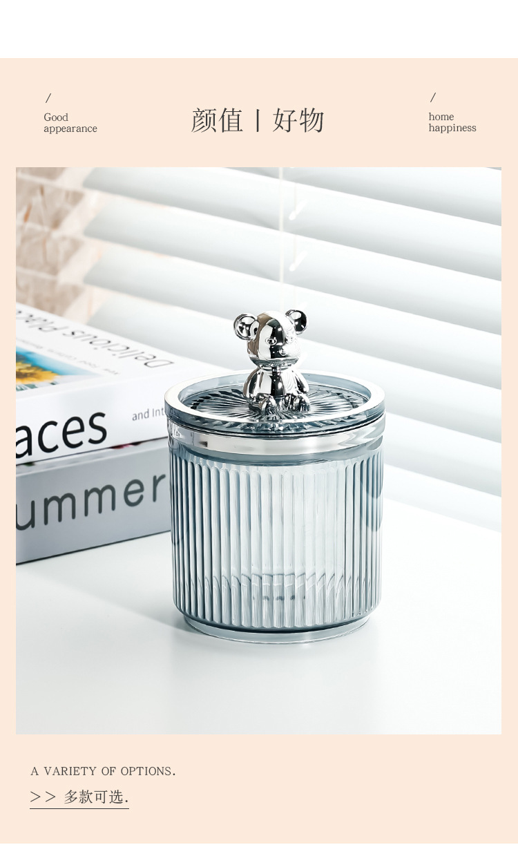 작은 곰 모양 수납함 데스크탑 화장대 투명 아크릴 플라스틱 휴대용 뚜껑 방진 보관 휴대용 모델스토어 가기