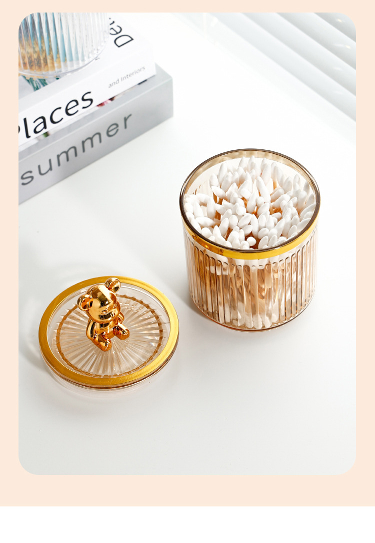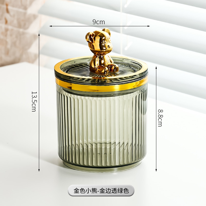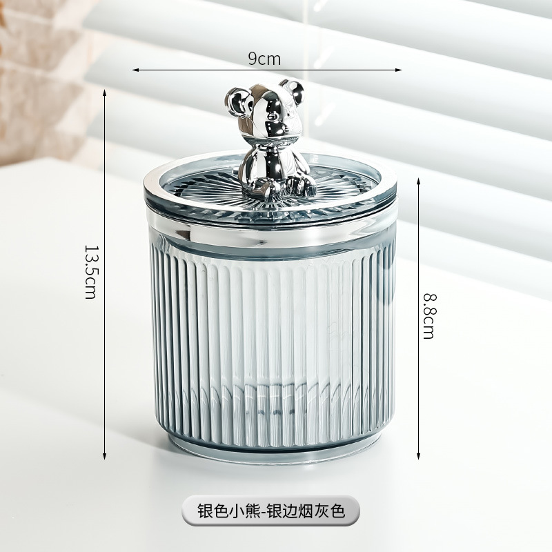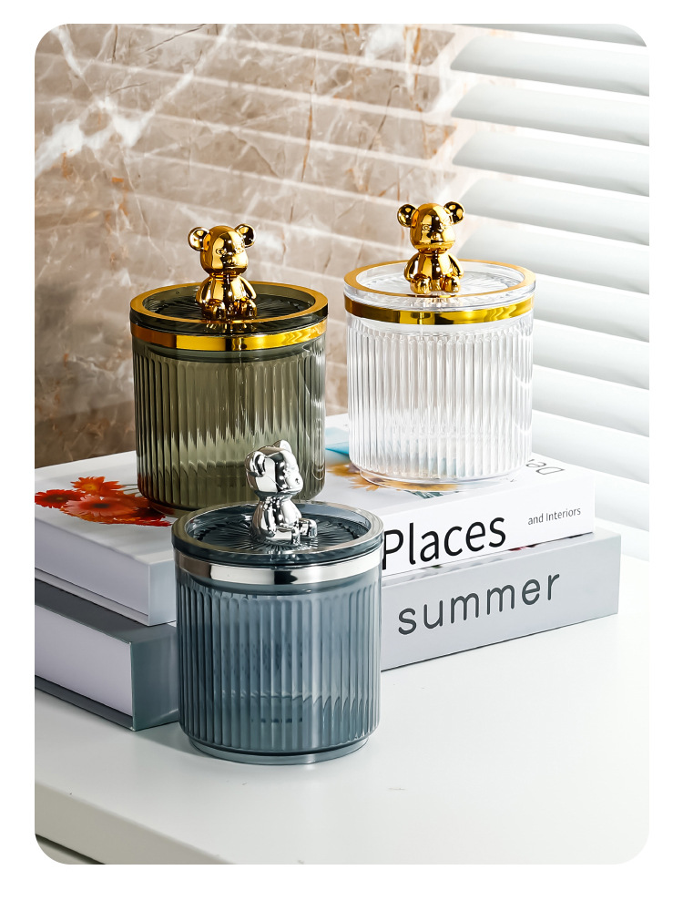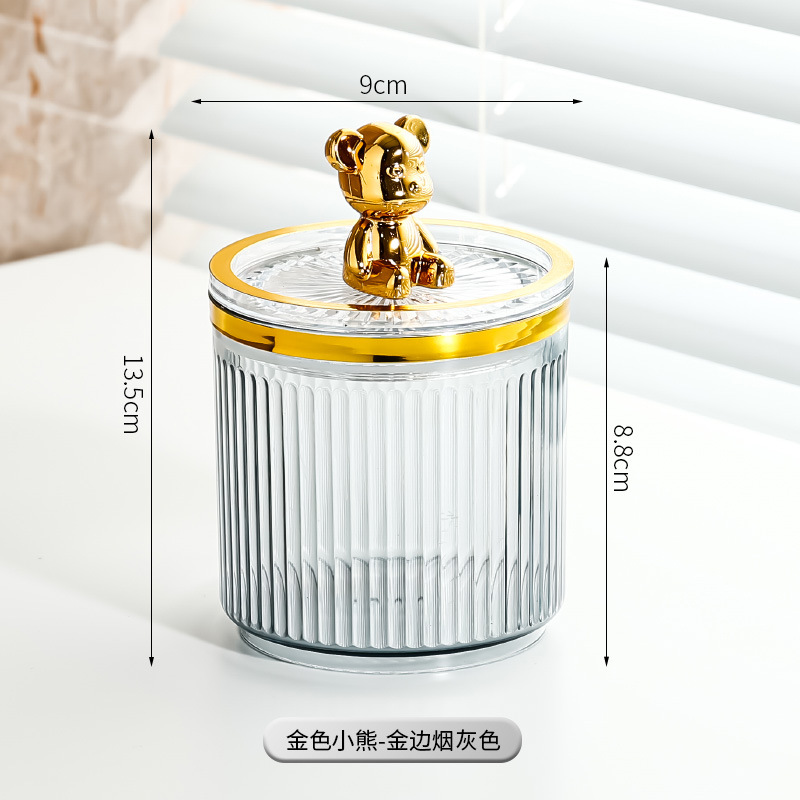 작은 곰 모양 수납함 데스크탑 화장대 투명 아크릴 플라스틱 휴대용 뚜껑 방진 보관 휴대용 모델