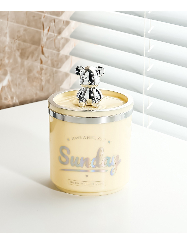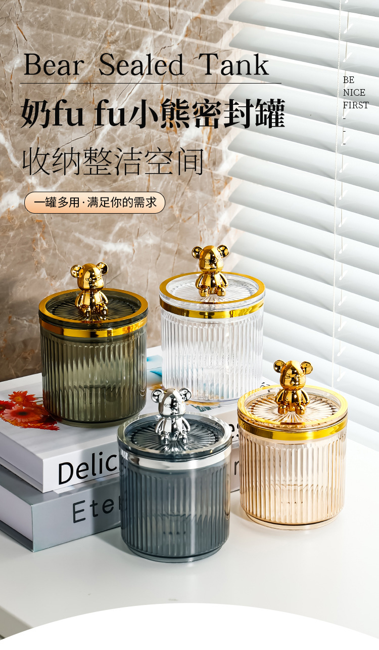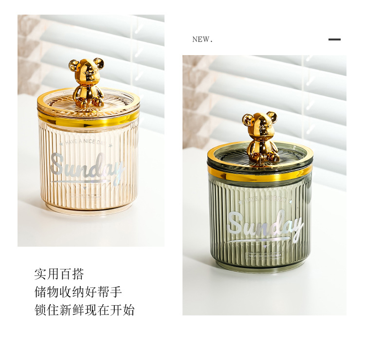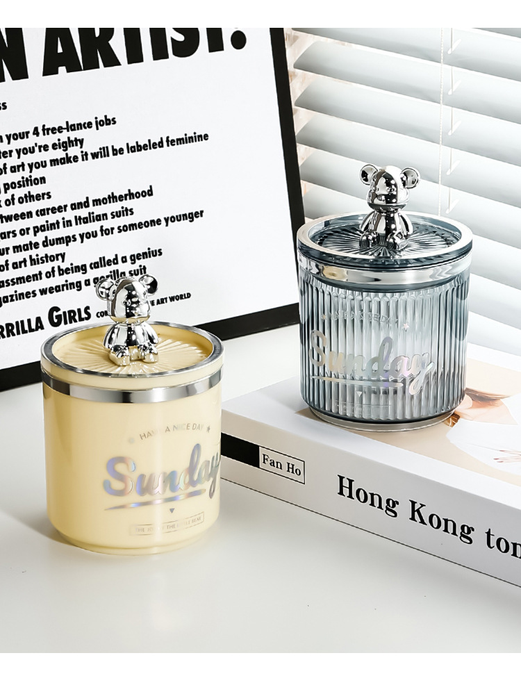 작은 곰 모양 수납함 데스크탑 화장대 투명 아크릴 플라스틱 휴대용 뚜껑 방진 보관 휴대용 모델