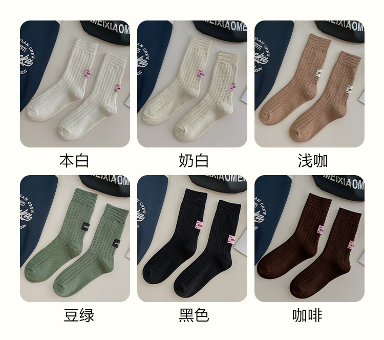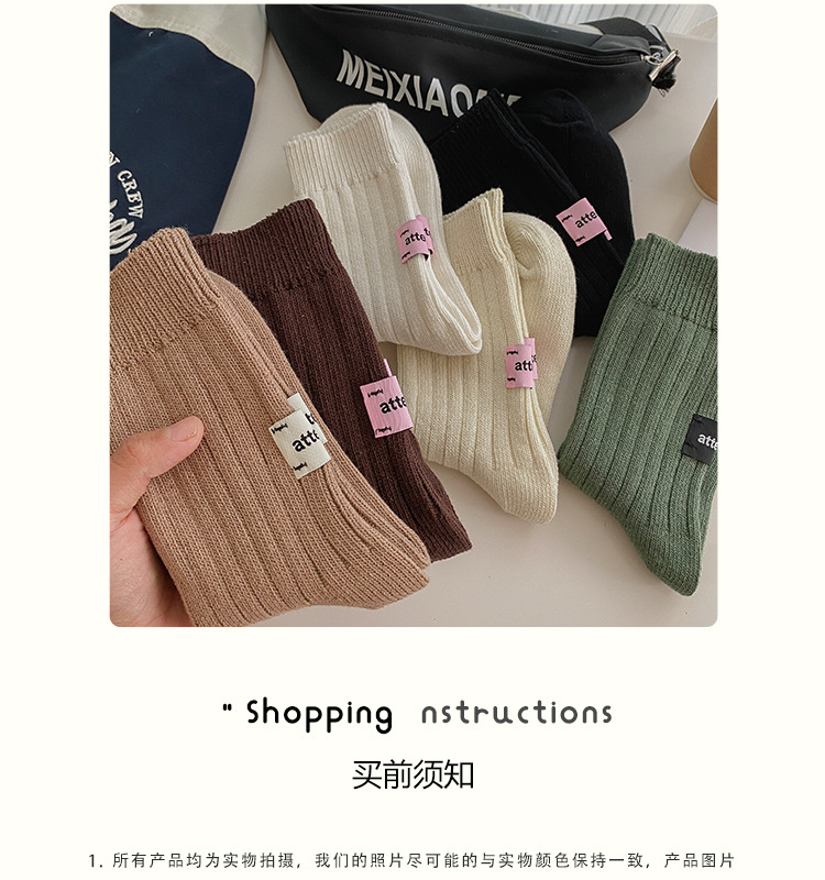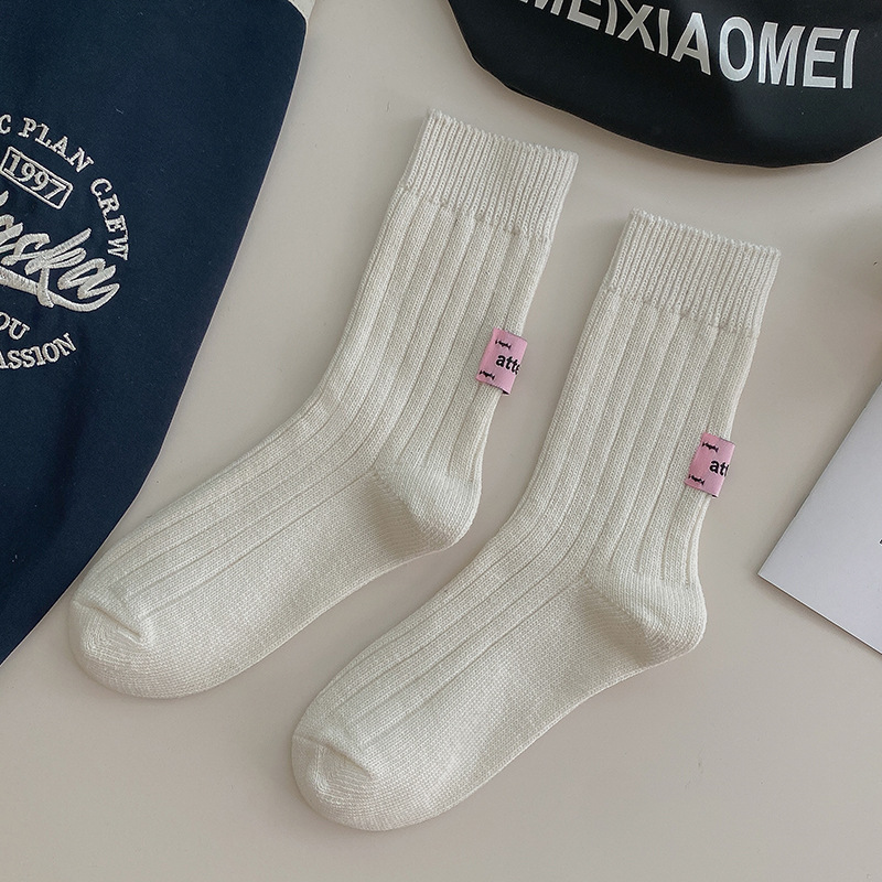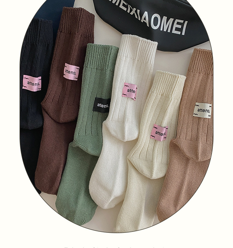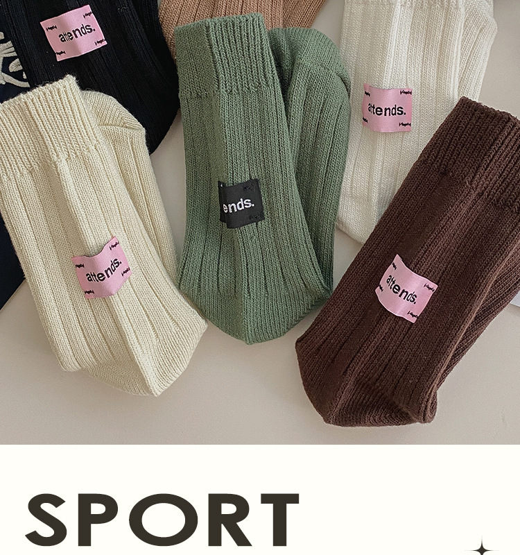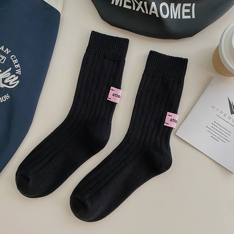 개인화 된 뒤꿈치 천 라벨 양말 유행 면 양말 봄, 여름, 가을, 겨울 사이버 연예인 스포츠 겉옷 중간 길이 양말 여성 스타킹
