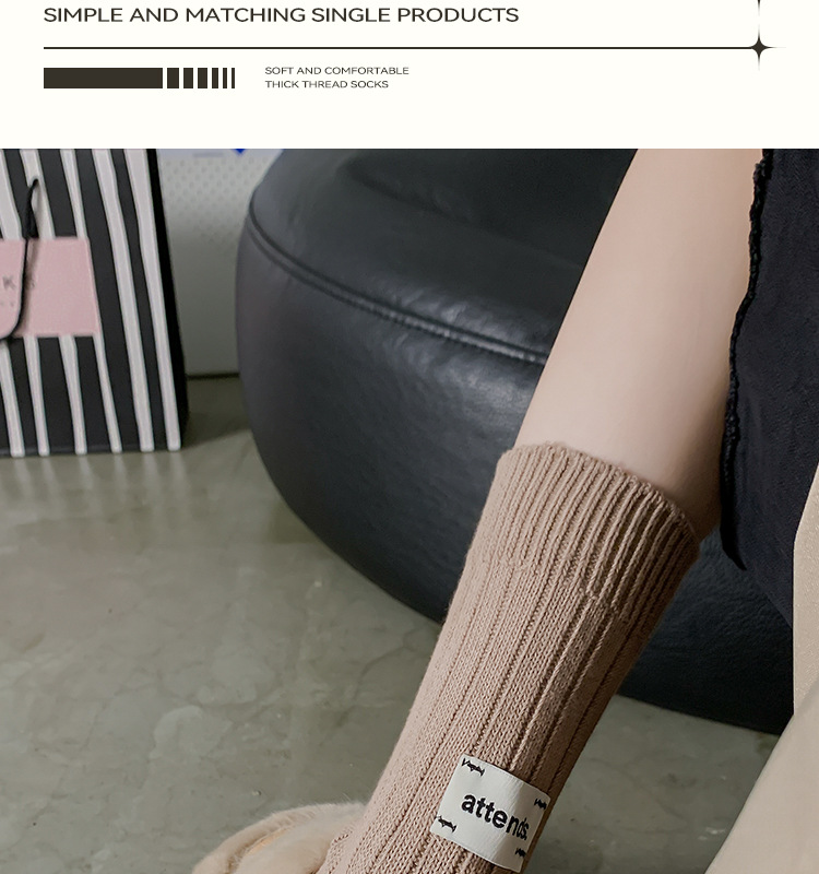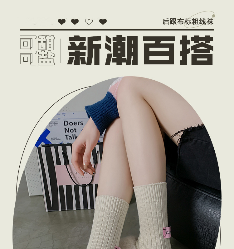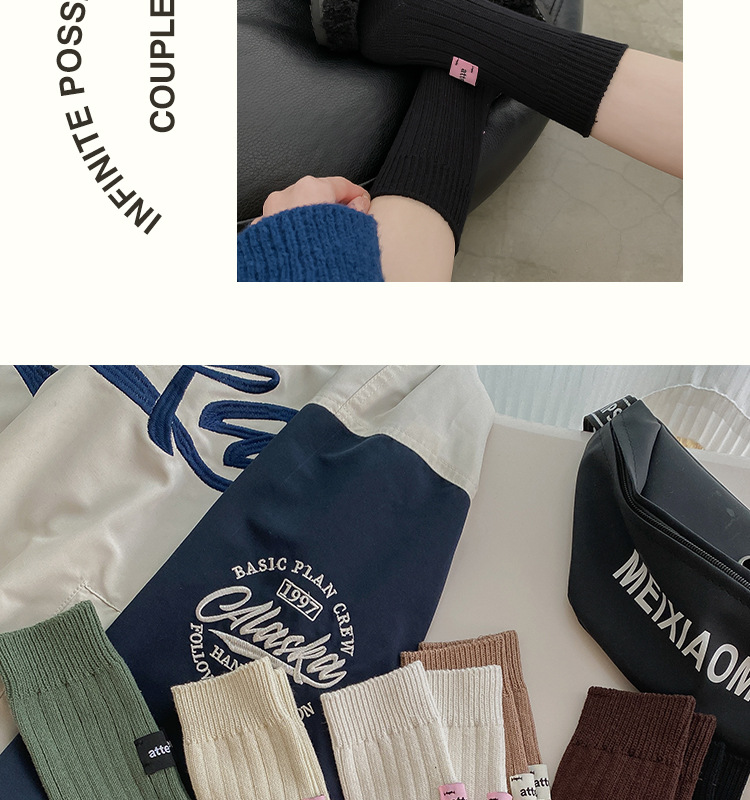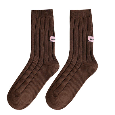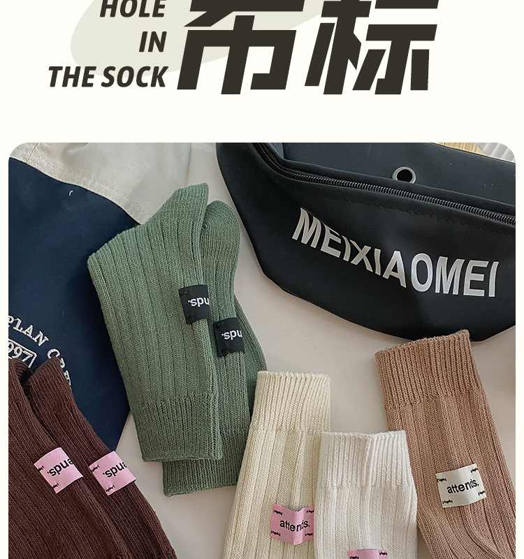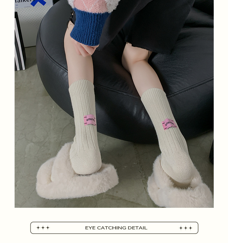 개인화 된 뒤꿈치 천 라벨 양말 유행 면 양말 봄, 여름, 가을, 겨울 사이버 연예인 스포츠 겉옷 중간 길이 양말 여성 스타킹