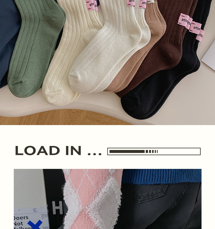 개인화 된 뒤꿈치 천 라벨 양말 유행 면 양말 봄, 여름, 가을, 겨울 사이버 연예인 스포츠 겉옷 중간 길이 양말 여성 스타킹스토어 가기