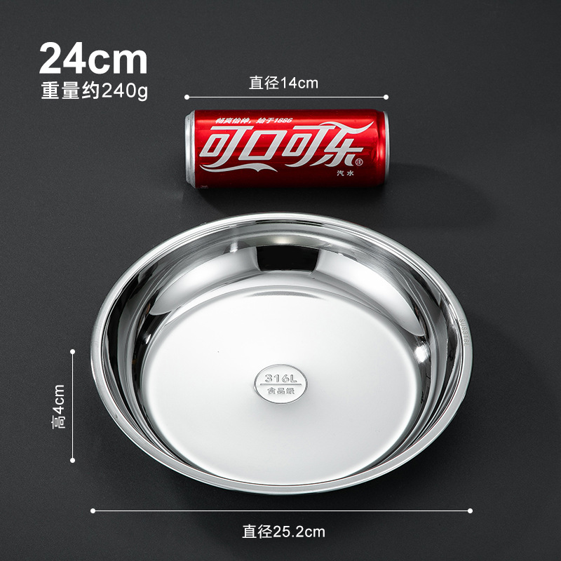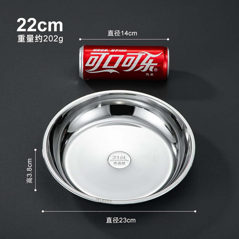 크로스보더 두꺼운 316 스테인레스 스틸 접시, 식품 등급 원형 접시, 가정용 접시, 작은 디저트 접시, 수프 접시, 파스타 접시