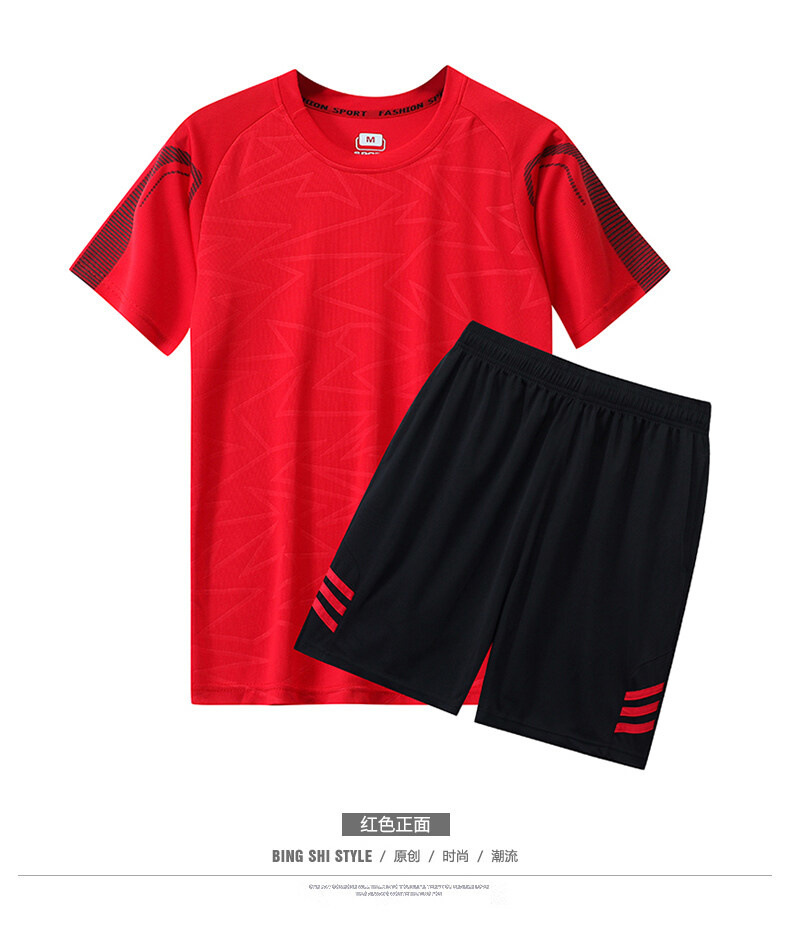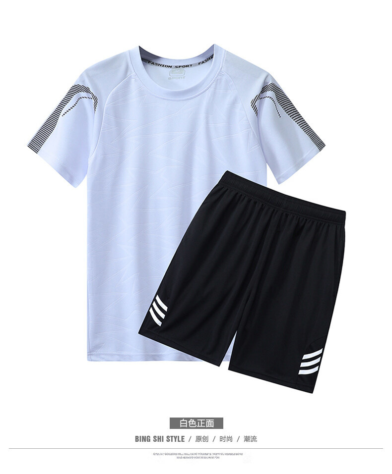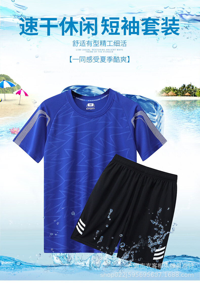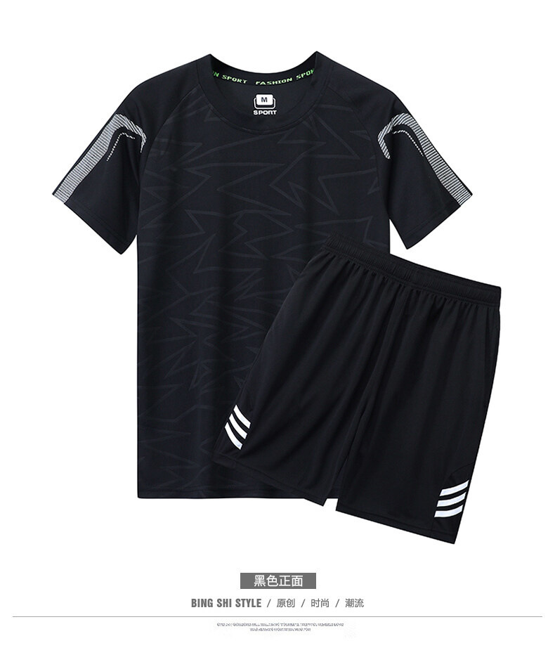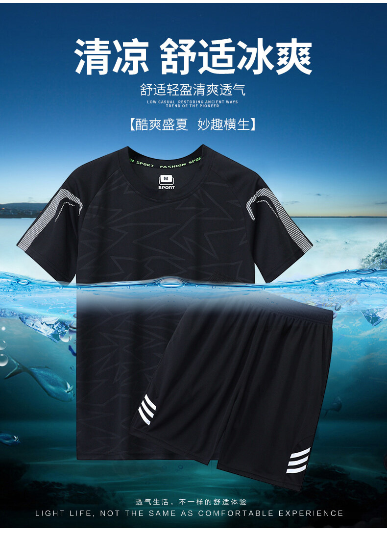 스포츠 세트 남자의 여름 새로운 한국 티셔츠 반팔 남자의 투피스 스포츠웨어 러닝 캐주얼 세트
