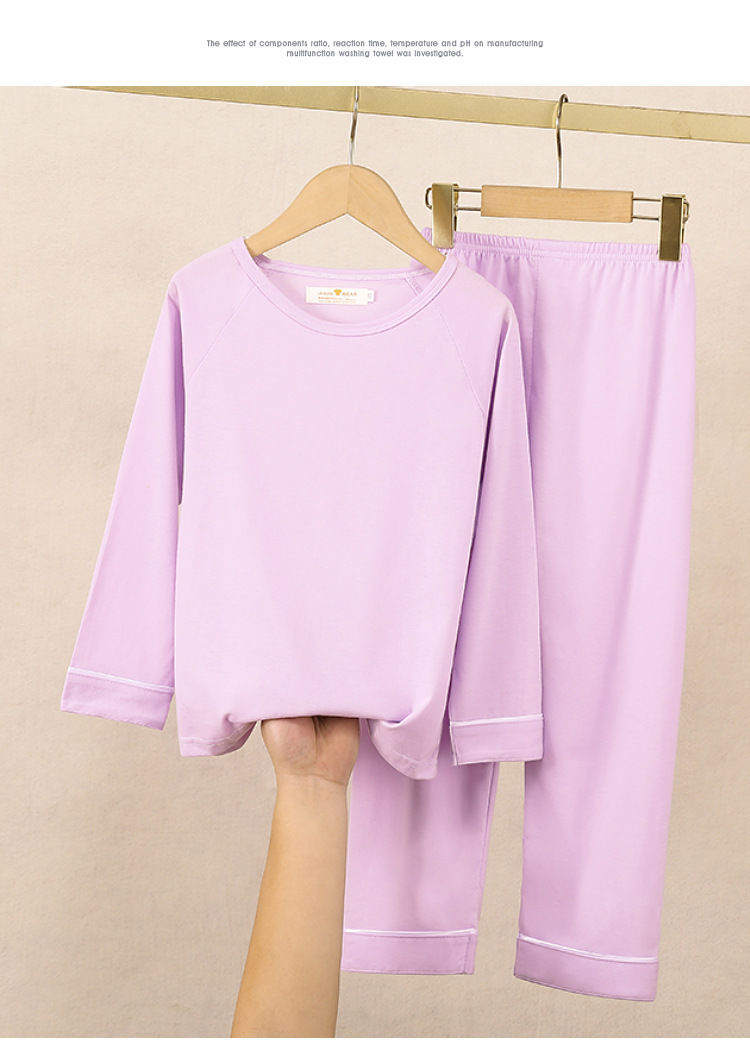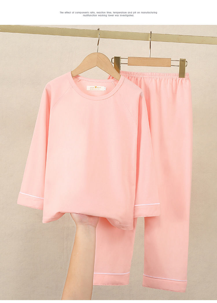 어린이 잠옷 긴팔 봄 가을 단색 면 한국 스타일 캐주얼 세트 중대형 어린이 남아 여아 홈웨어