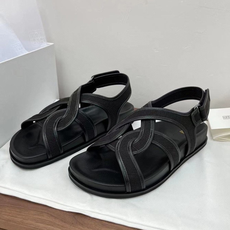 2023 새로운 토템 틈새 수제 캔버스 짠 샌들 여성 여름 오픈 발가락 플랫폼 플랫 비치 로마 신발