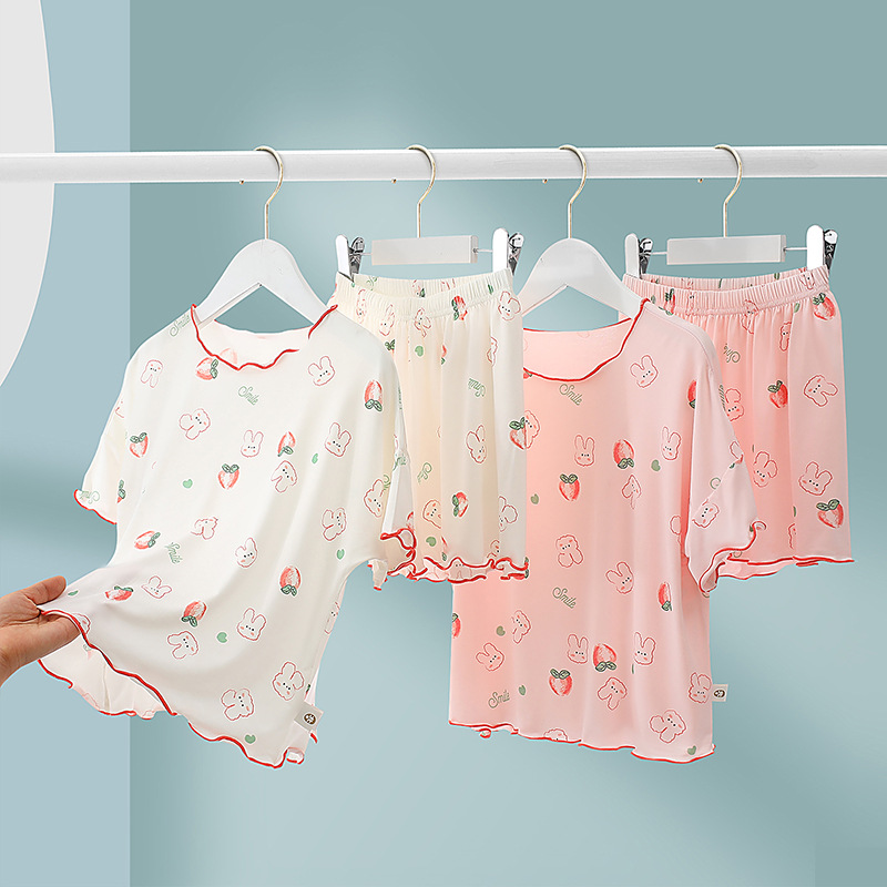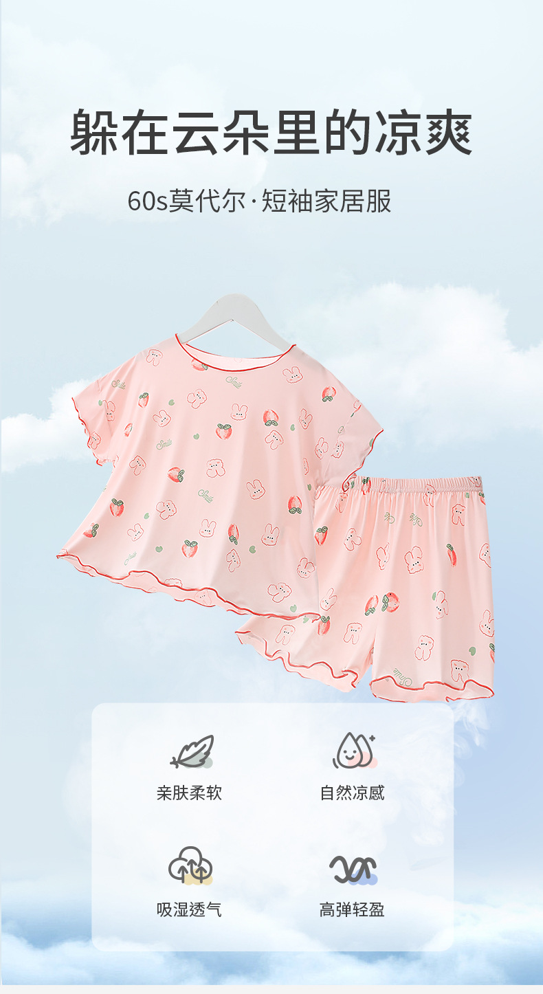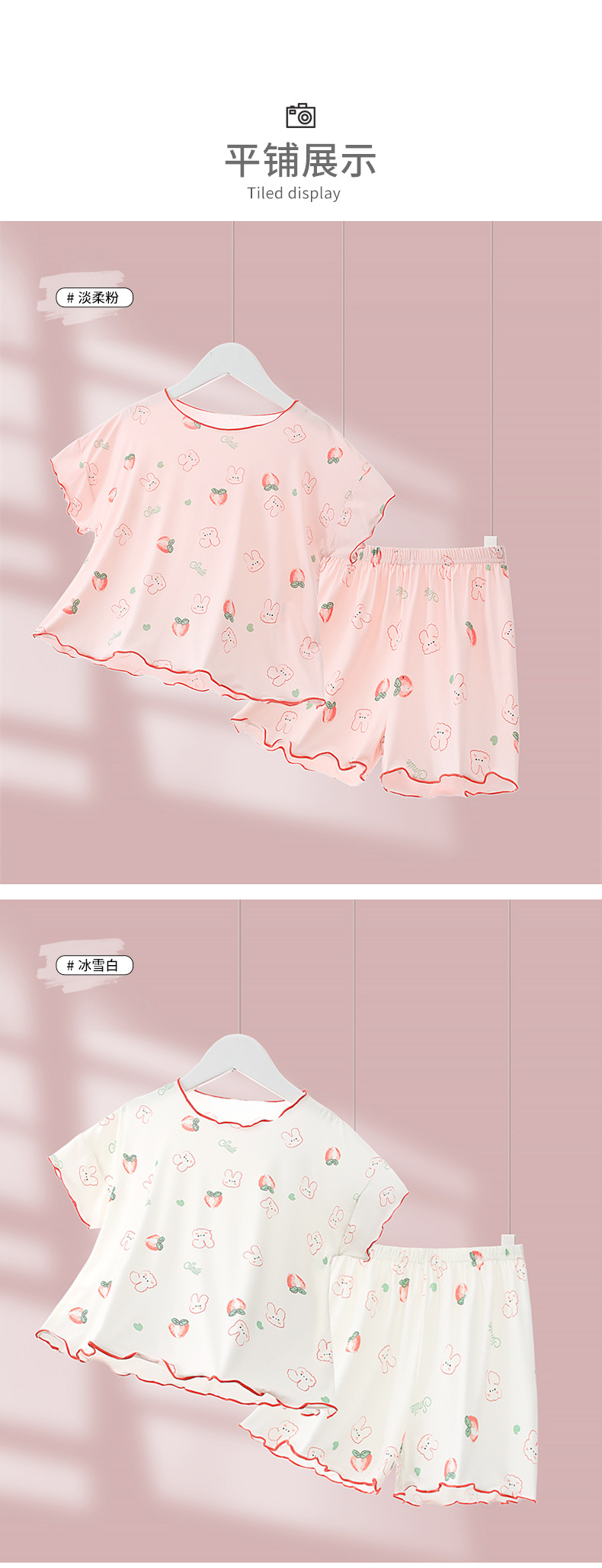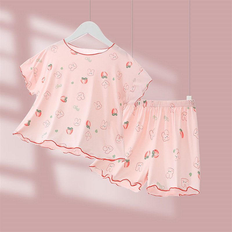 봄과 여름 얇은 어린이 가정복 여자 라운드 넥 반소매 반바지 공주 에어컨 세트 모달 투피스 잠옷