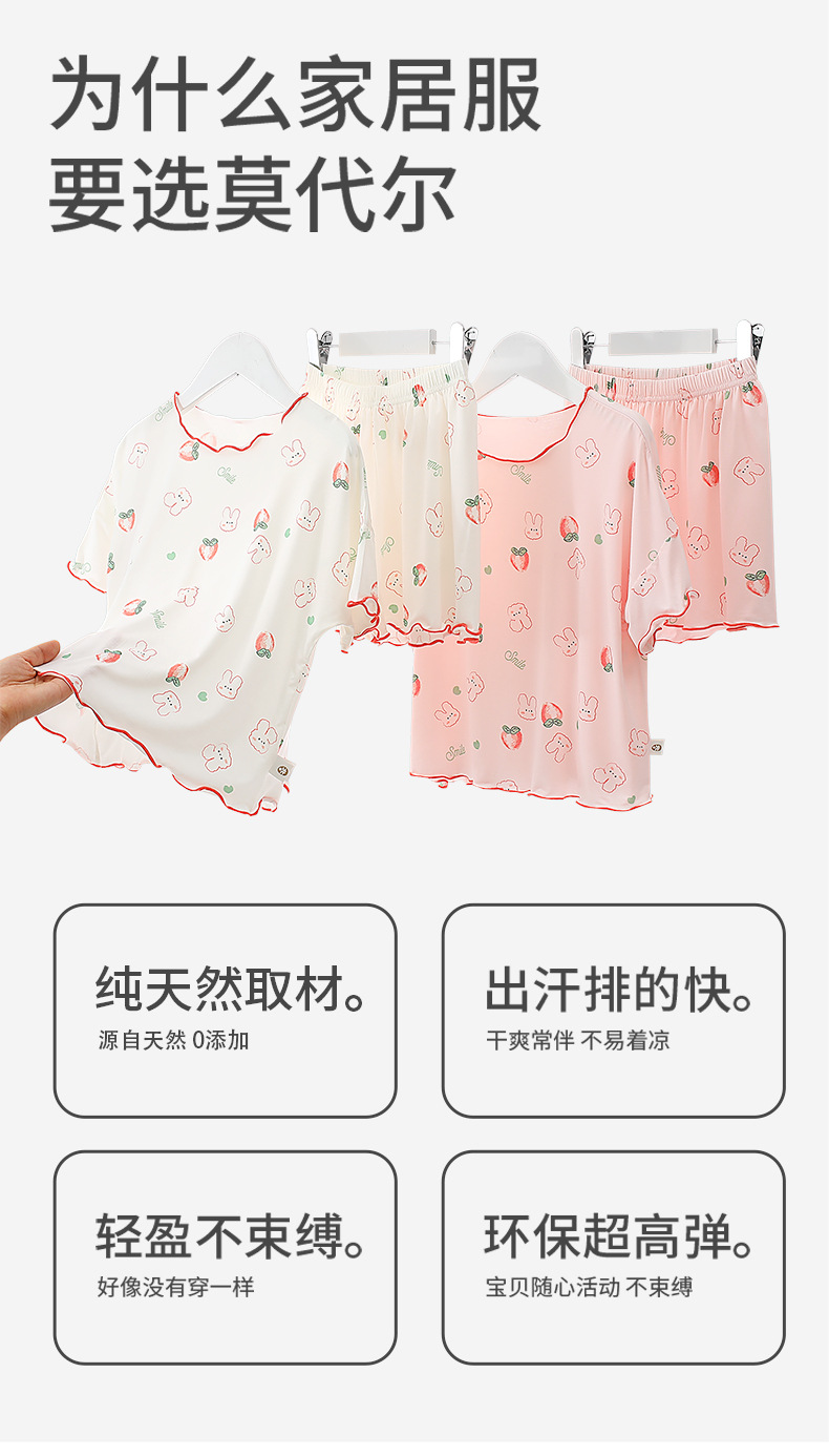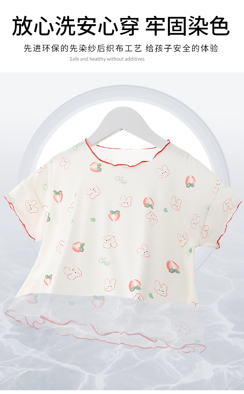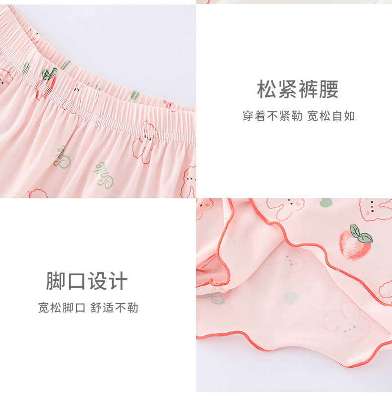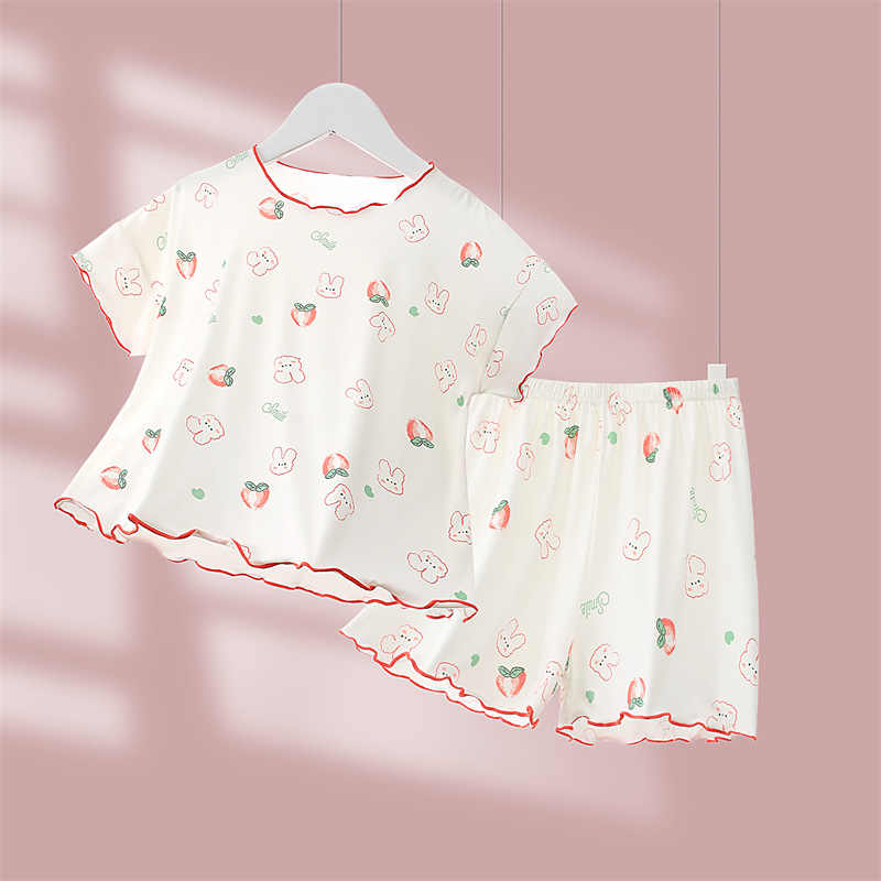 봄과 여름 얇은 어린이 가정복 여자 라운드 넥 반소매 반바지 공주 에어컨 세트 모달 투피스 잠옷