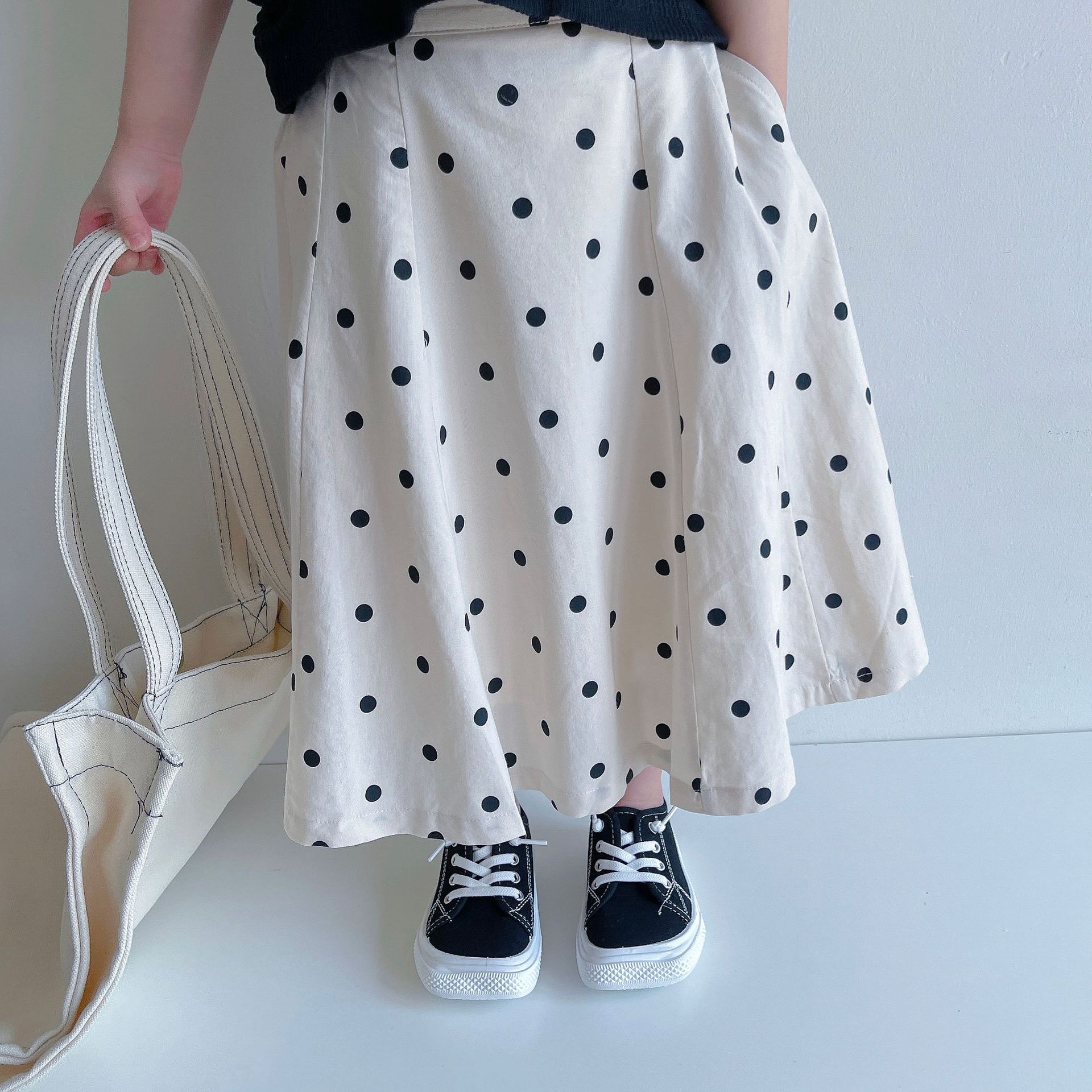 BOBOKIDS 봄/여름 2023 새로운 아동복 일본 소녀의 웨이브 도트 롱 스커트 부모-아동복스토어 가기