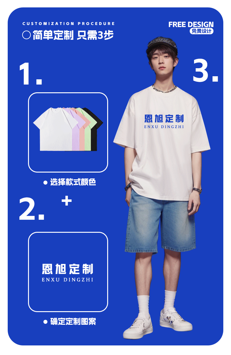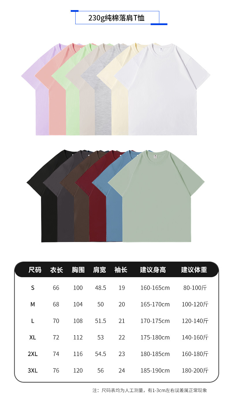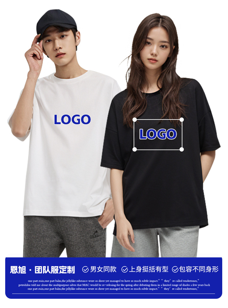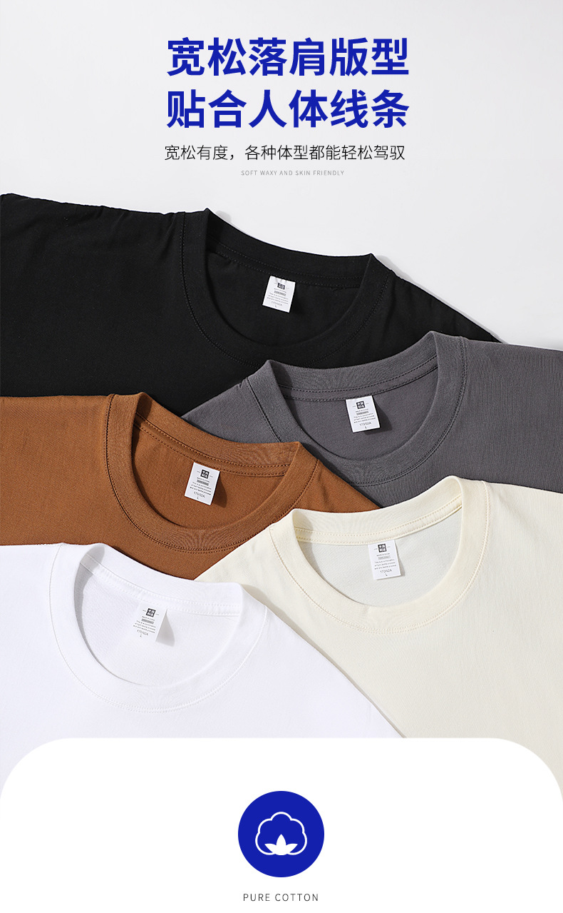 반팔 남성 티셔츠 헤비급 230g 편안한 느슨한 어깨 애호가 조수 브랜드 인쇄 로고 단색 사용자 정의스토어 가기