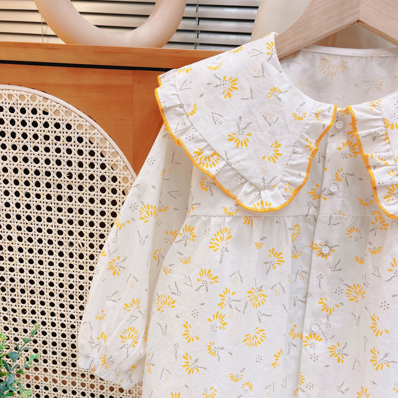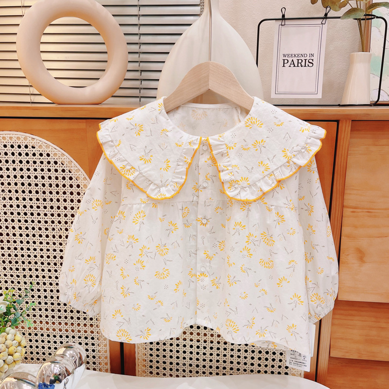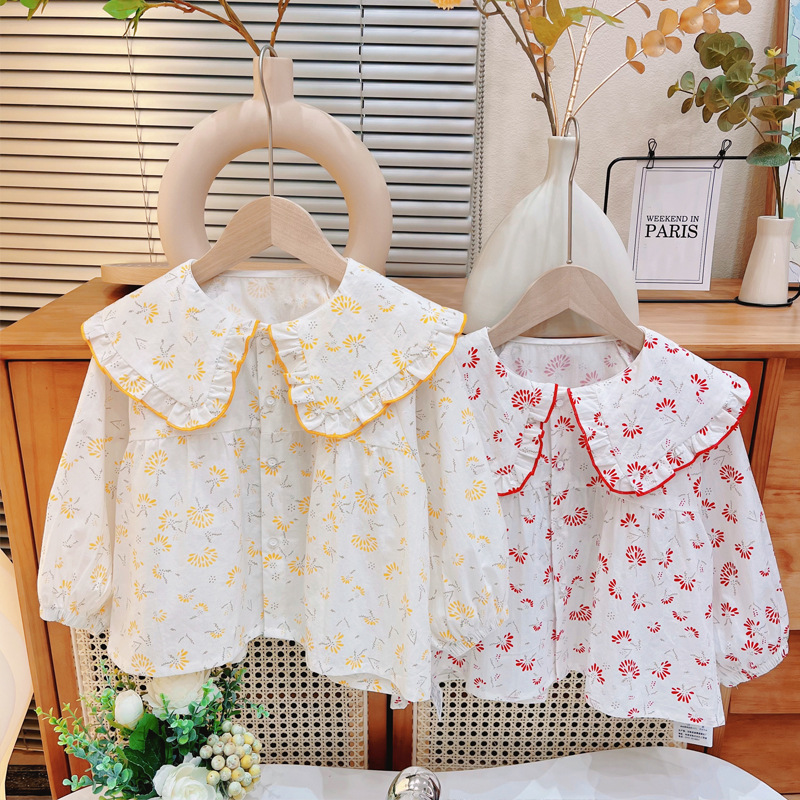 여자 셔츠 아기 긴 소매 2025 봄 어린이 꽃 셔츠 여자 탑 아기 새 공주 셔츠