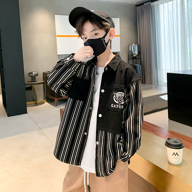 아동복 소년 봄 셔츠 2025 새로운 중대형 어린이 가을 거리 잘 생긴 거리 잘 생긴 소년 셔츠스토어 가기