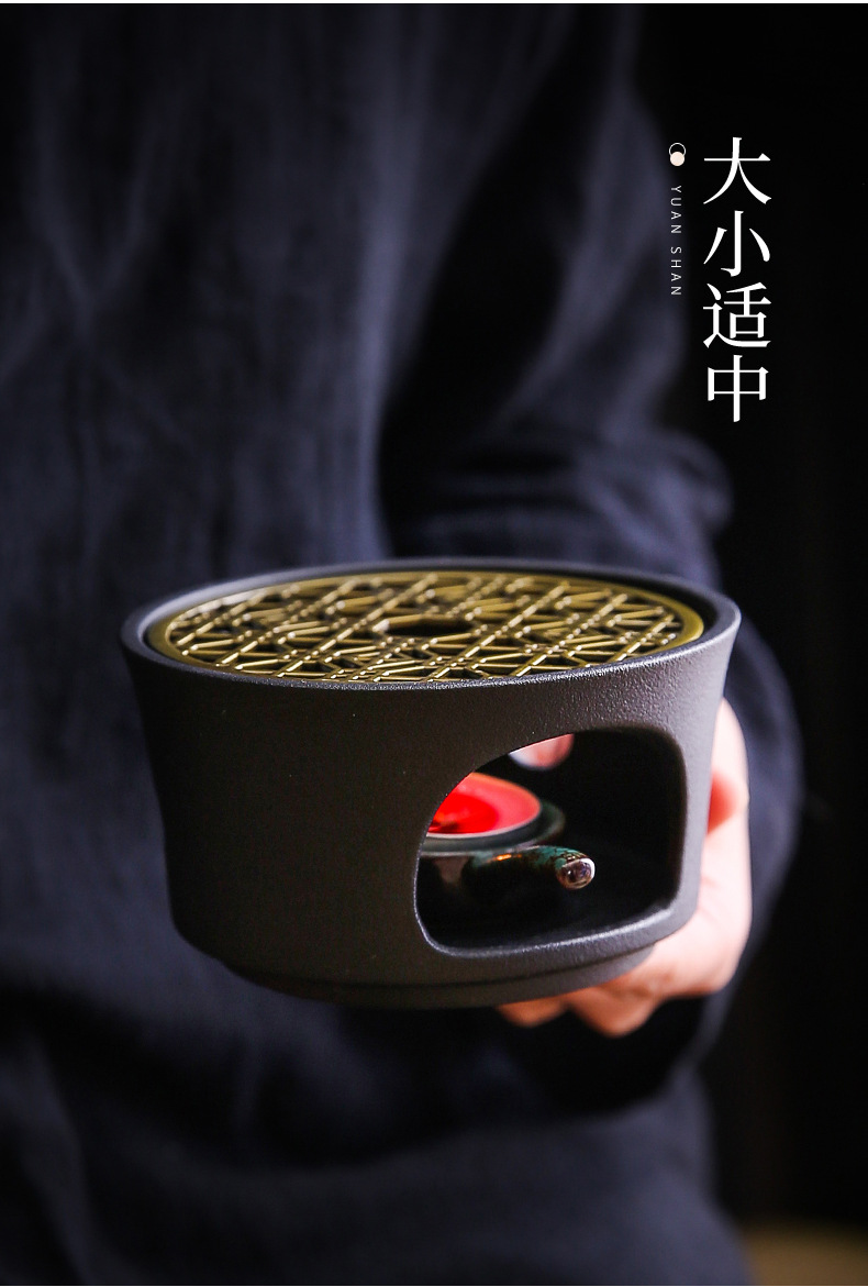 블랙 도자기 Yuanshan 찻 주전자 따뜻한 차 스토브 세트 따뜻한 차 도자기 용광로 가정용 따뜻한 차 스토브 양초 난방 열 보존 차 세트스토어 가기