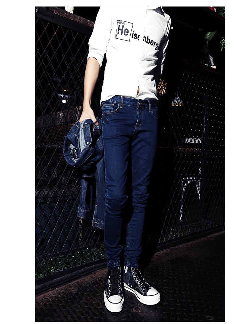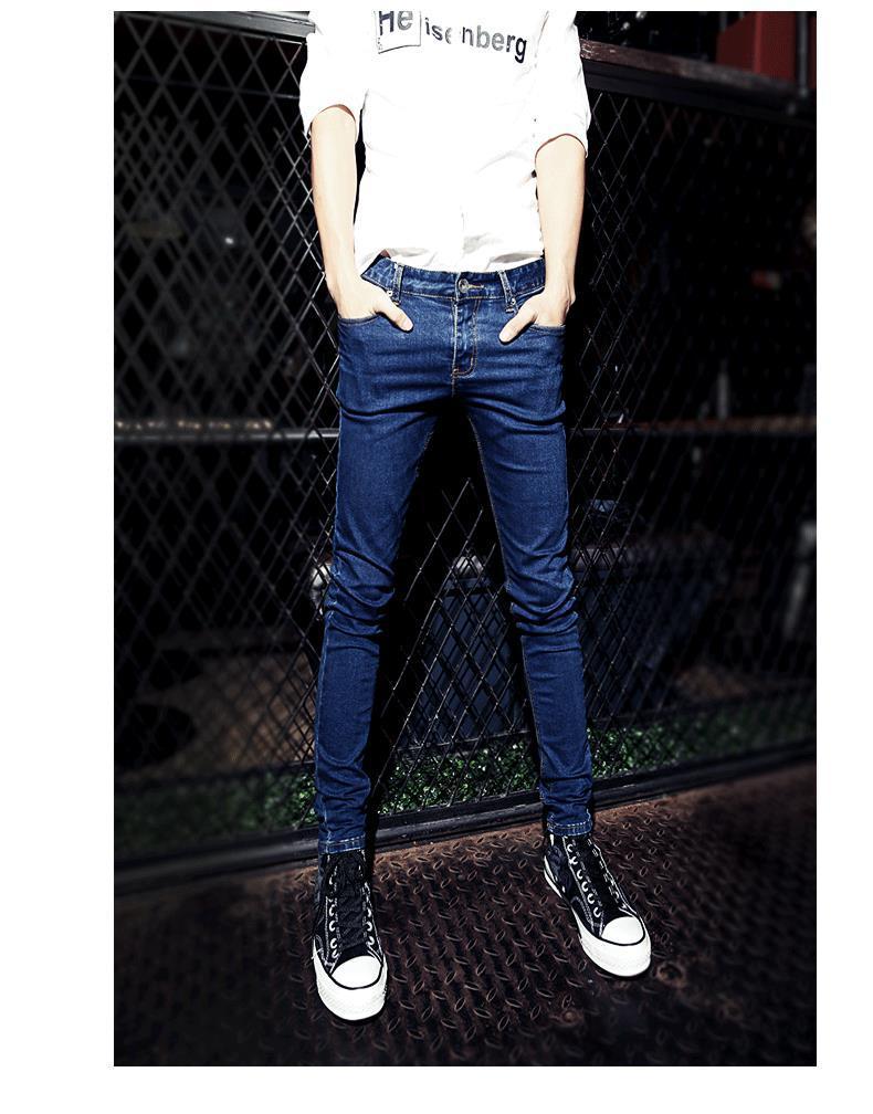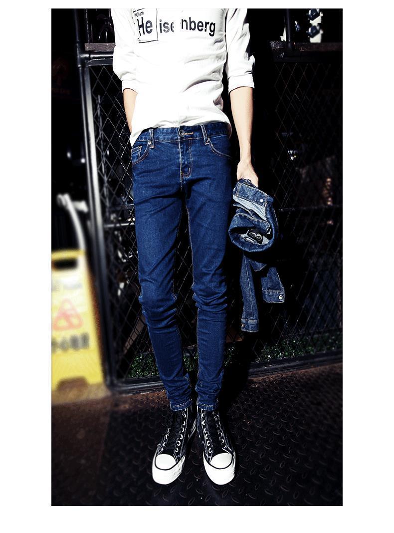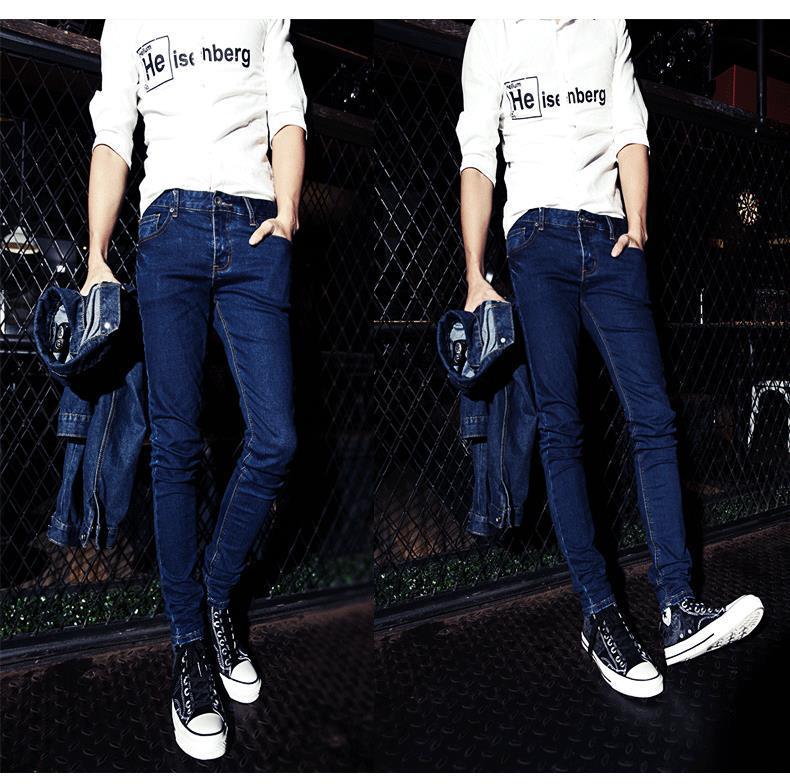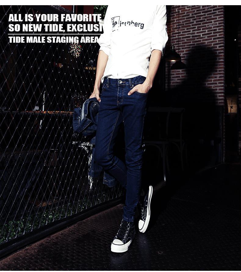 가을 바지 남성용 한국 스타일 트렌디 트렌디 한 바지 트렌디 캐주얼 청바지 남성 학생용 타이트 스키니 팬츠