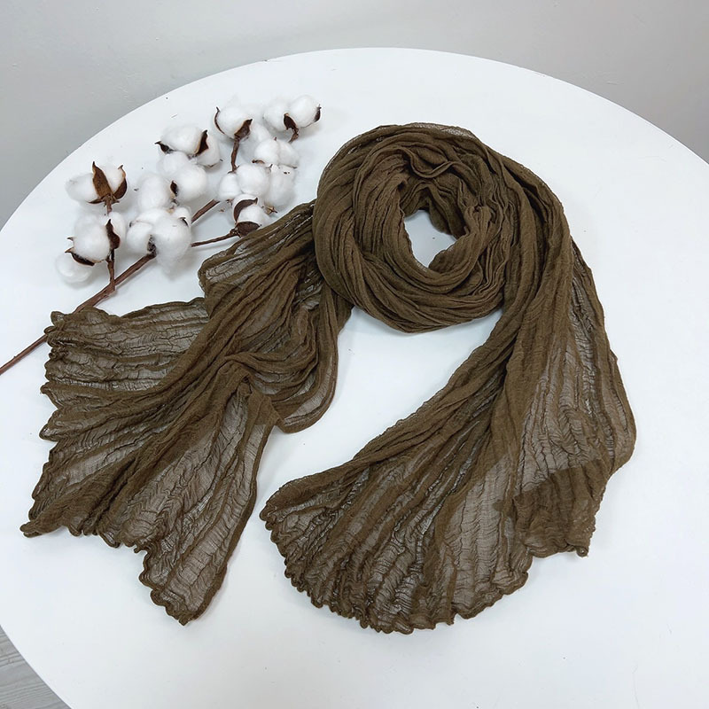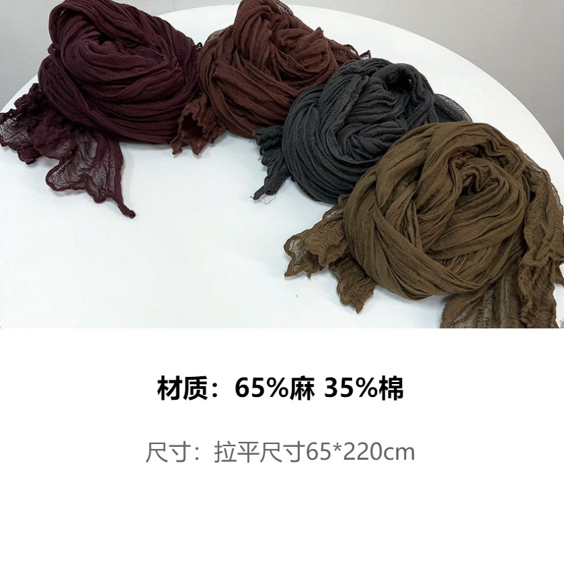 봄과 여름 새로운 스타일 얇은면과 린넨 스카프 날씬한 좁은 숄 자연 질감 주름 실크 스카프 다목적 빈티지 멀티 컬러스토어 가기
