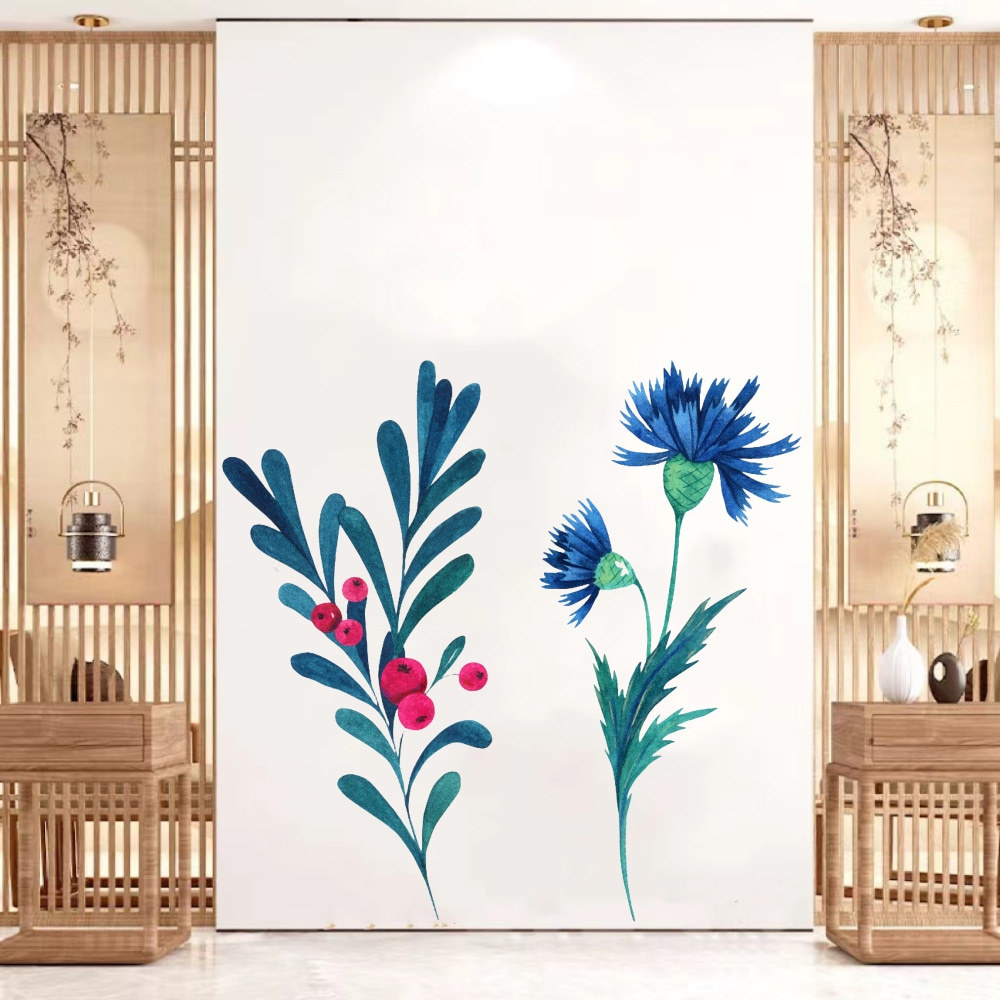 Yiyao 신선한 정원 꽃과 식물 벽 스티커 베란다 침실 따뜻한 녹색 식물 배경 벽 장식 방습 자체 접착 스티커스토어 가기
